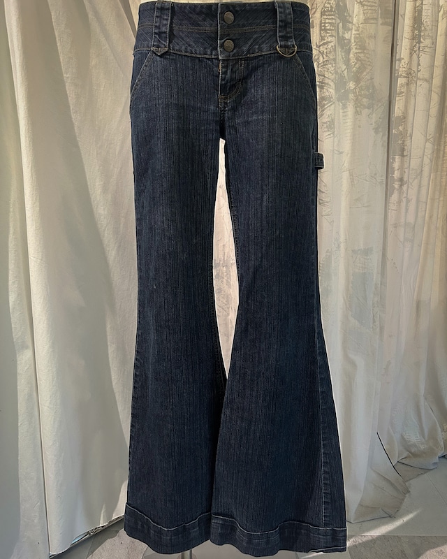 size : M color : dark blue 股上 : 20.5cm 股下 : 79cm ウエスト : 36cm わたり : 25cm 裾幅 : 29cm (※こちらのサイズ表記は平置き採寸のサイズです。)