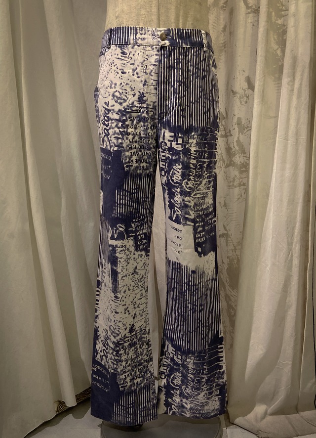 size : S color : Blue × White 股上 : 27cm 股下 : 78cm ウエスト : 33cm わたり : 25cm 裾幅 : 21cm (※こちらのサイズ表記は平置き採寸のサイズです。)