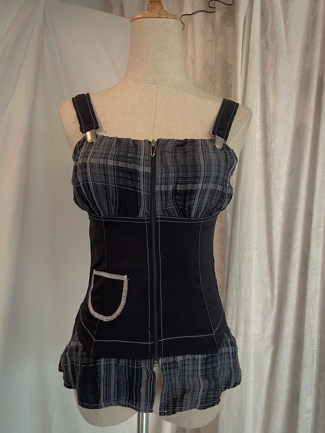 Denim&Lace Zip Corset Camisole