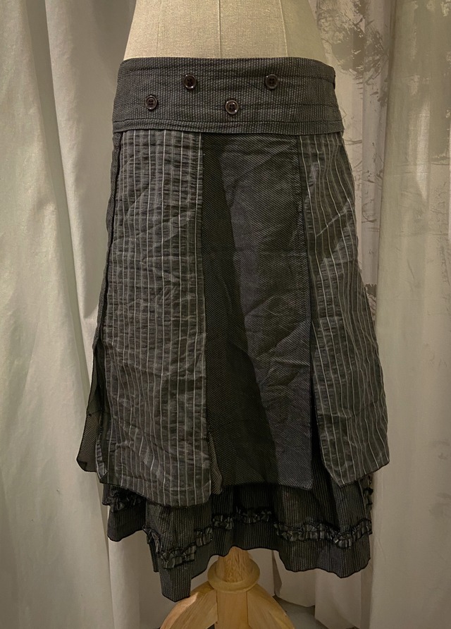 Chiffon Gray Ribbon Asymmetry Skirt [France]