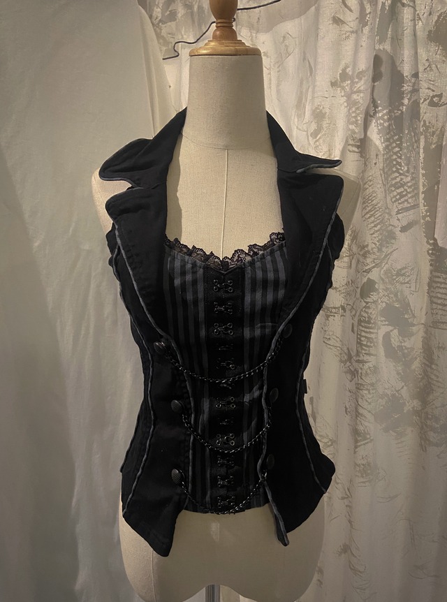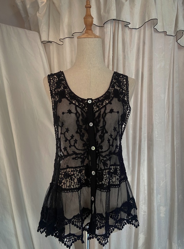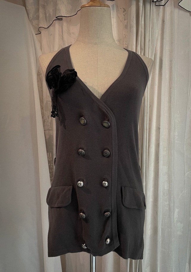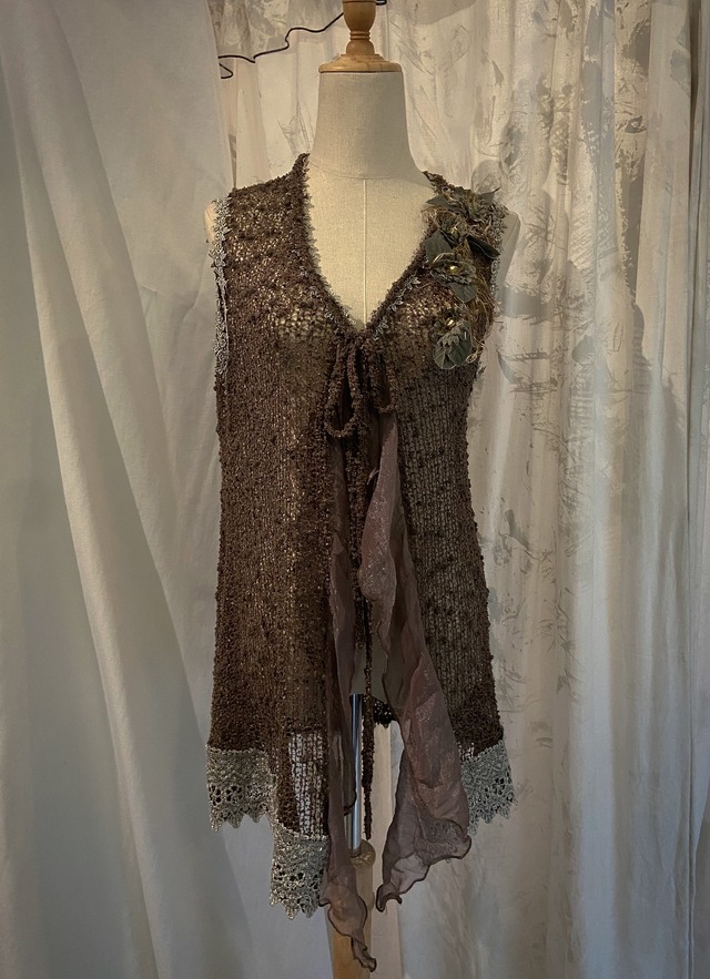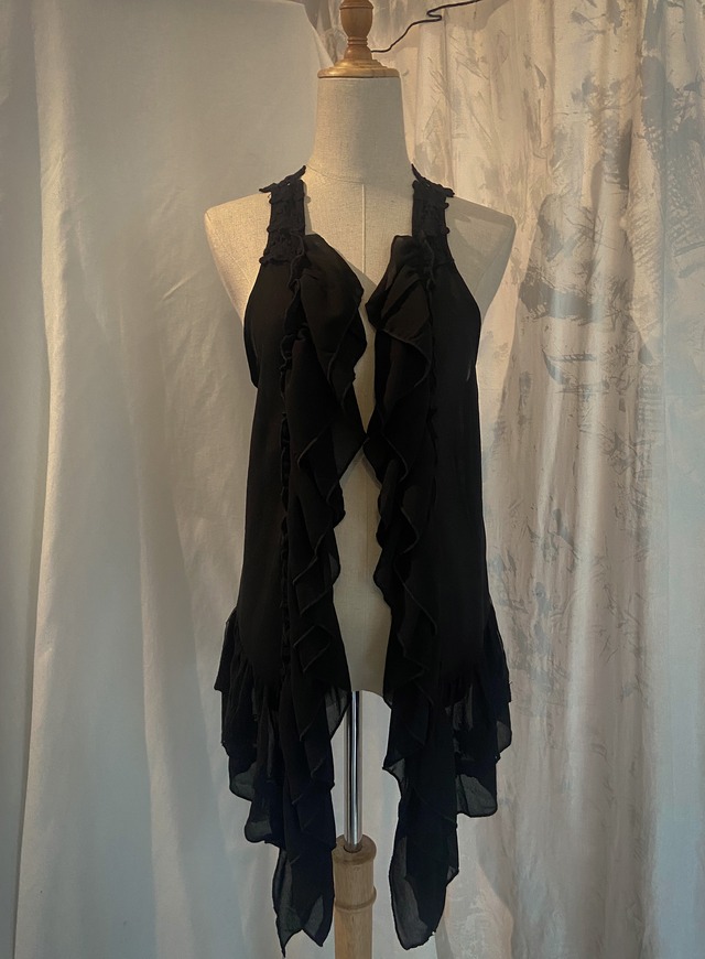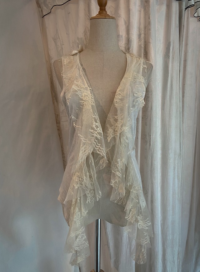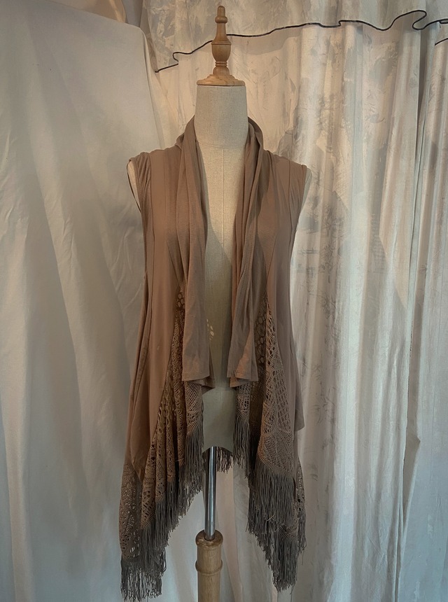 Long Gray Chiffon Lace Hem Vest [NYC]