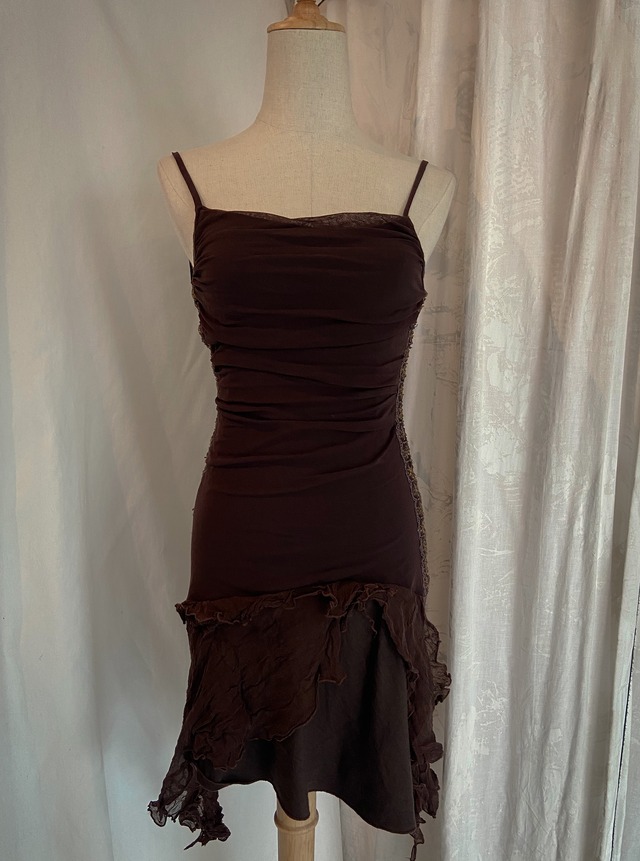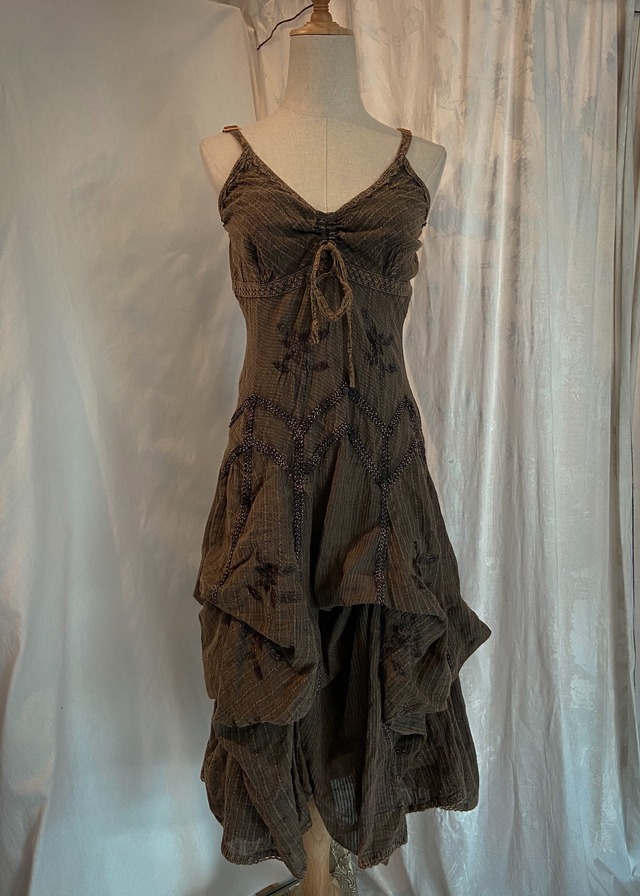 size : M color :brown 身幅 : 30cm 肩幅 : 27cm 総丈 : 96cm ウエスト : 27cm アーム幅 : 24cm (※こちらのサイズ表記は平置き採寸のサイズです。)