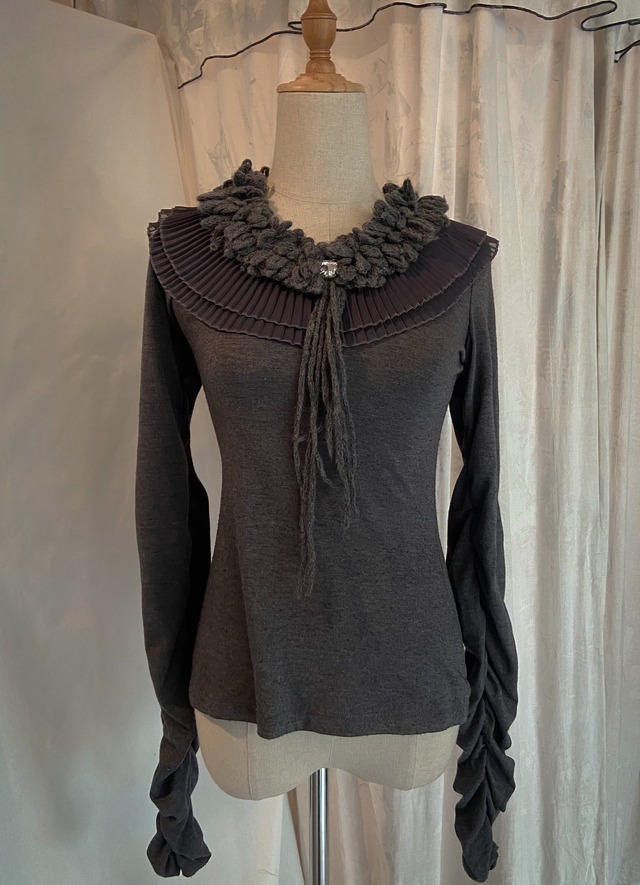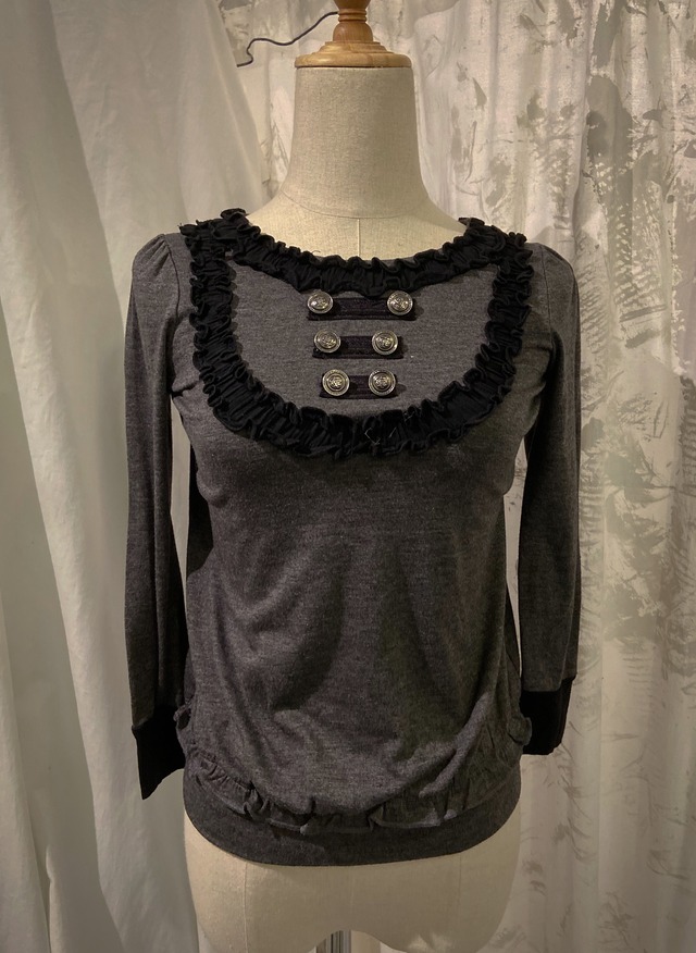 Gray Frill Tight Blouse