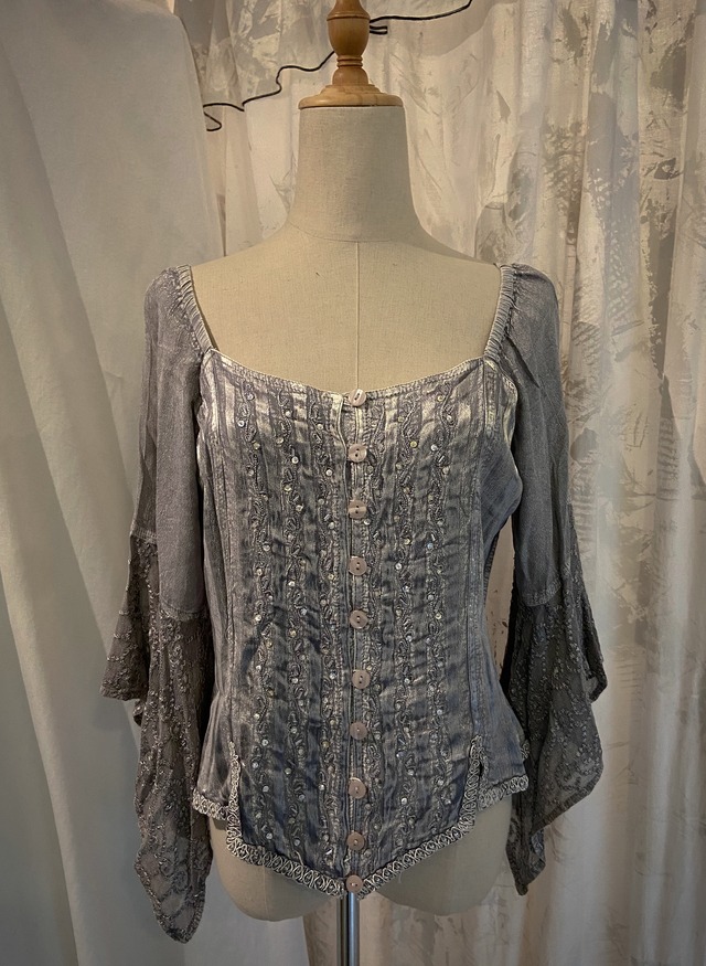 Gray Asymmetry Sleeve Blouse