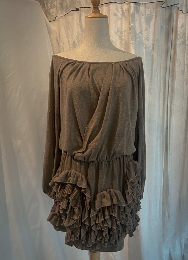 Scrunchy Knit Fringe Long Tee [Italy]