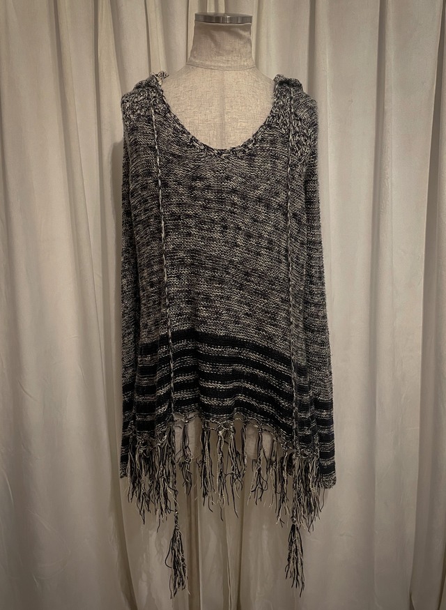 Fringed Hem Border Knit Hoodie