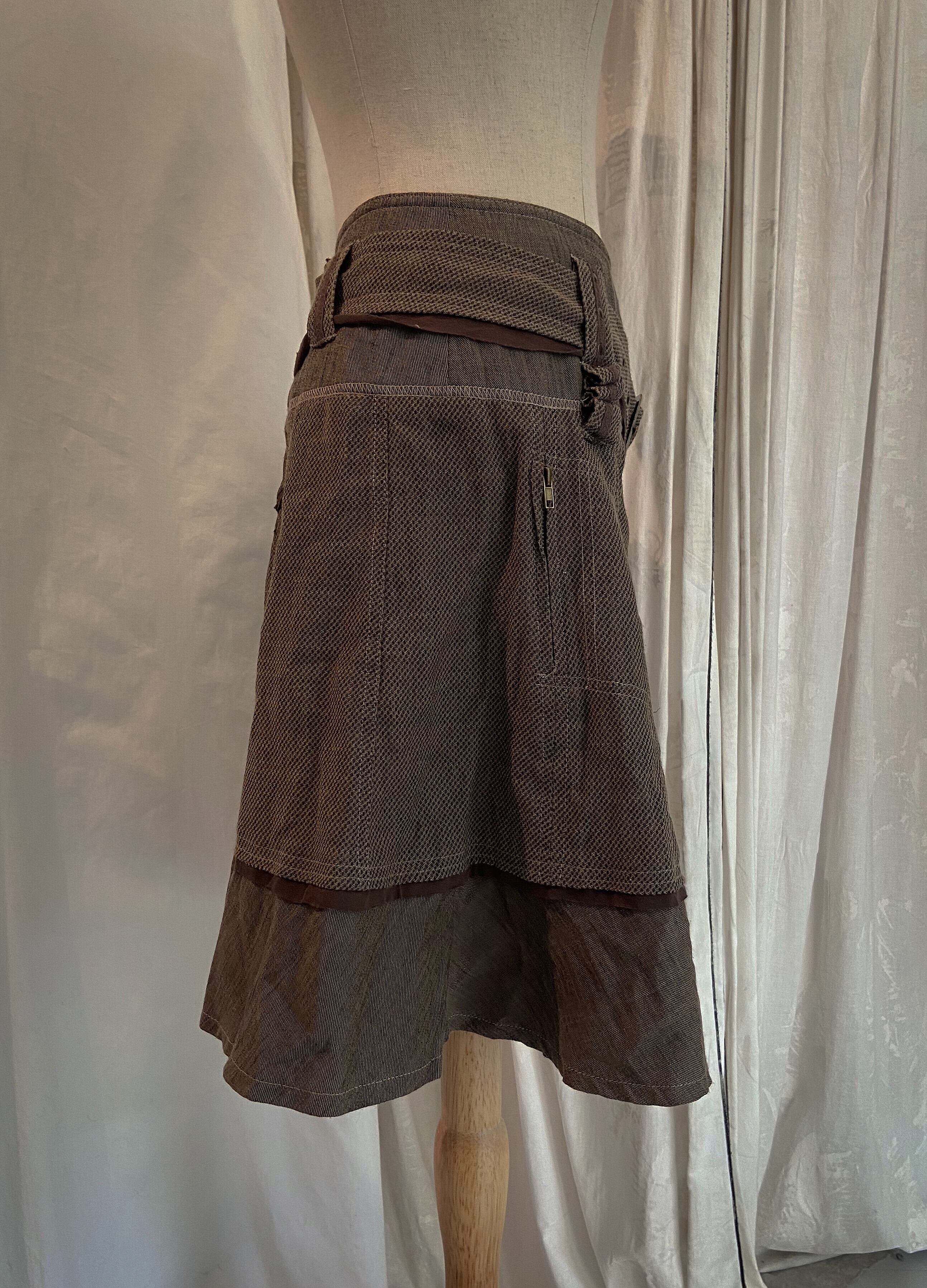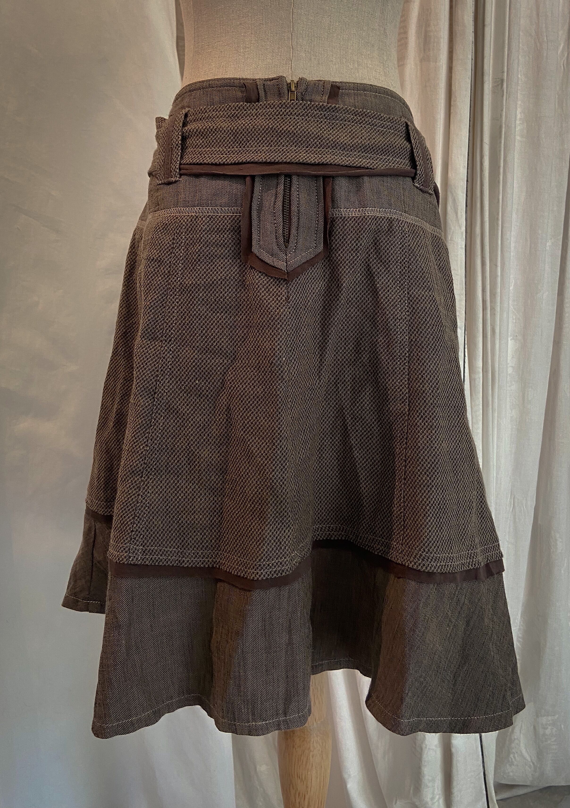 Belt Brown Midi Flare Skirt