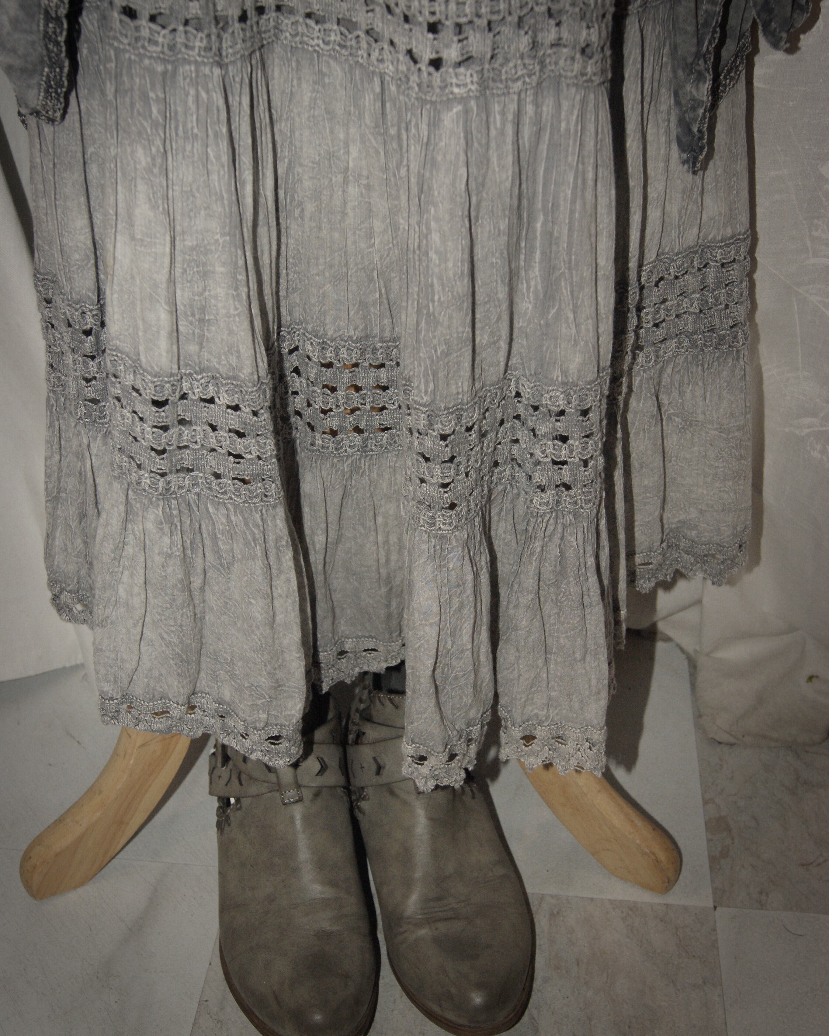 Gray Embroidered Line Long Skirt
