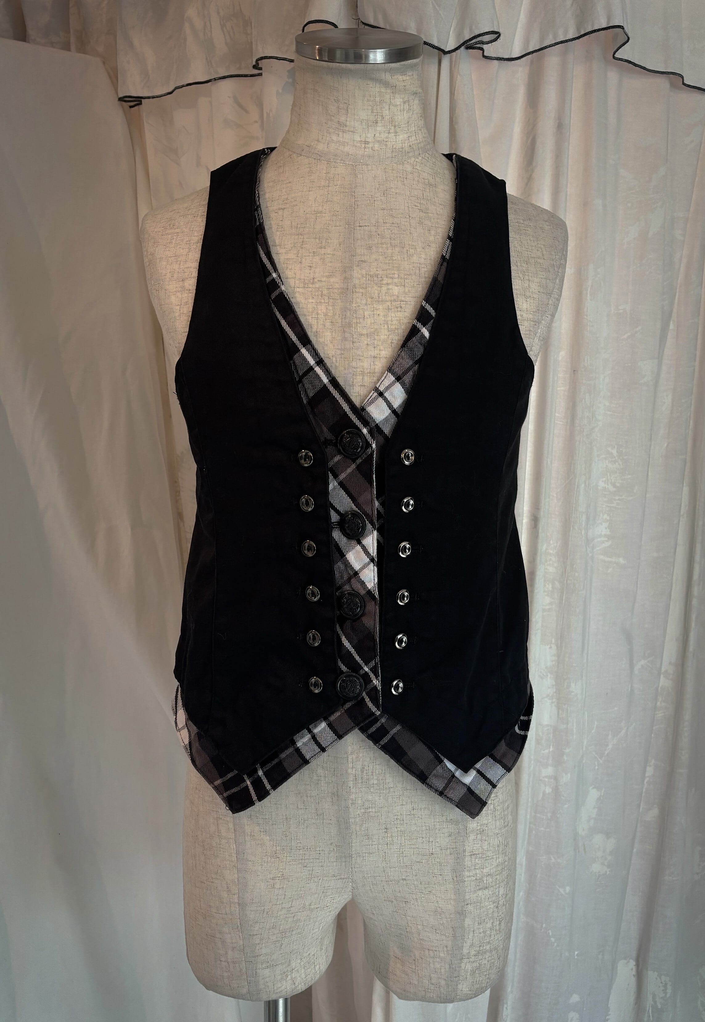 y2k Rock Black Check Vest
