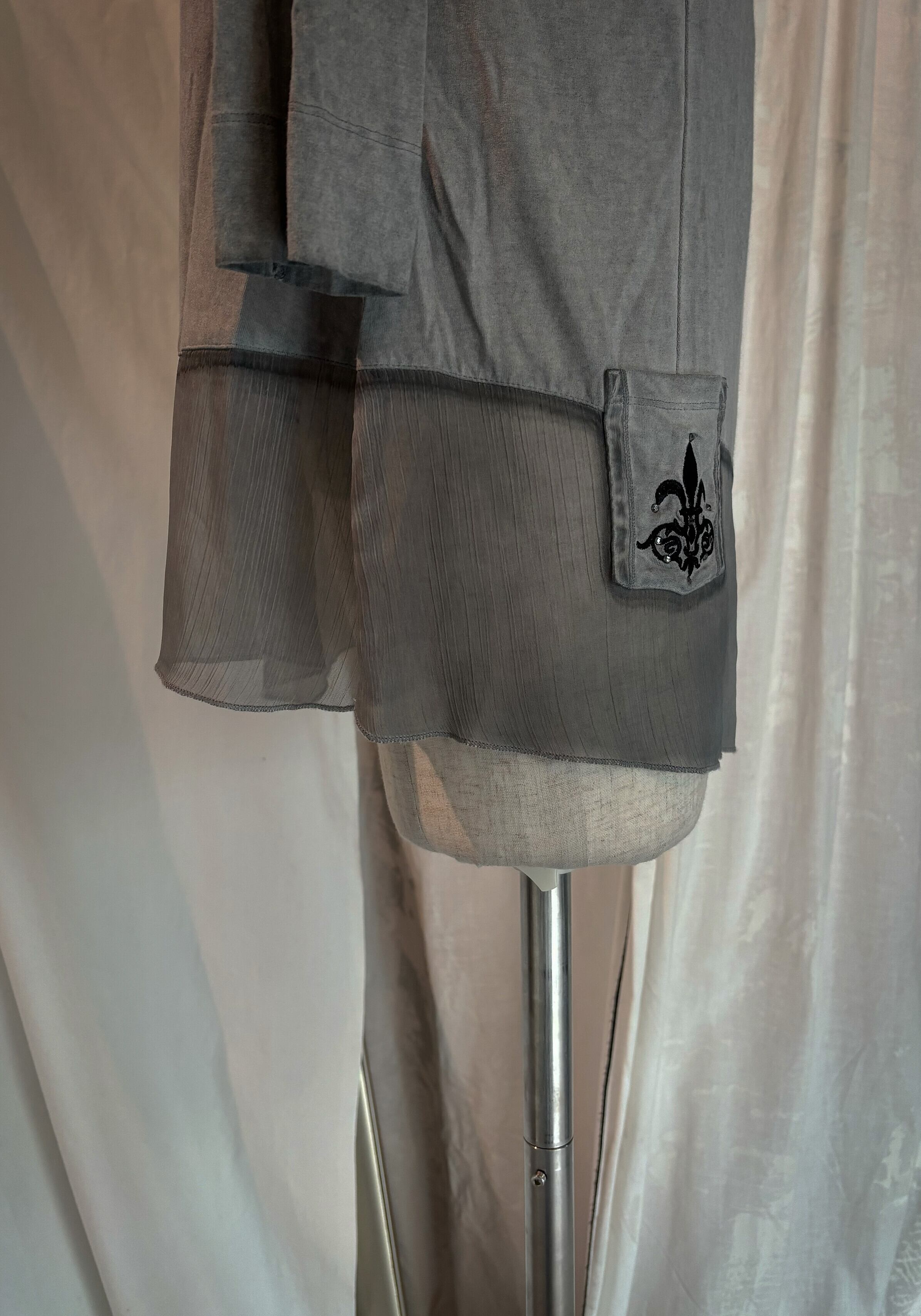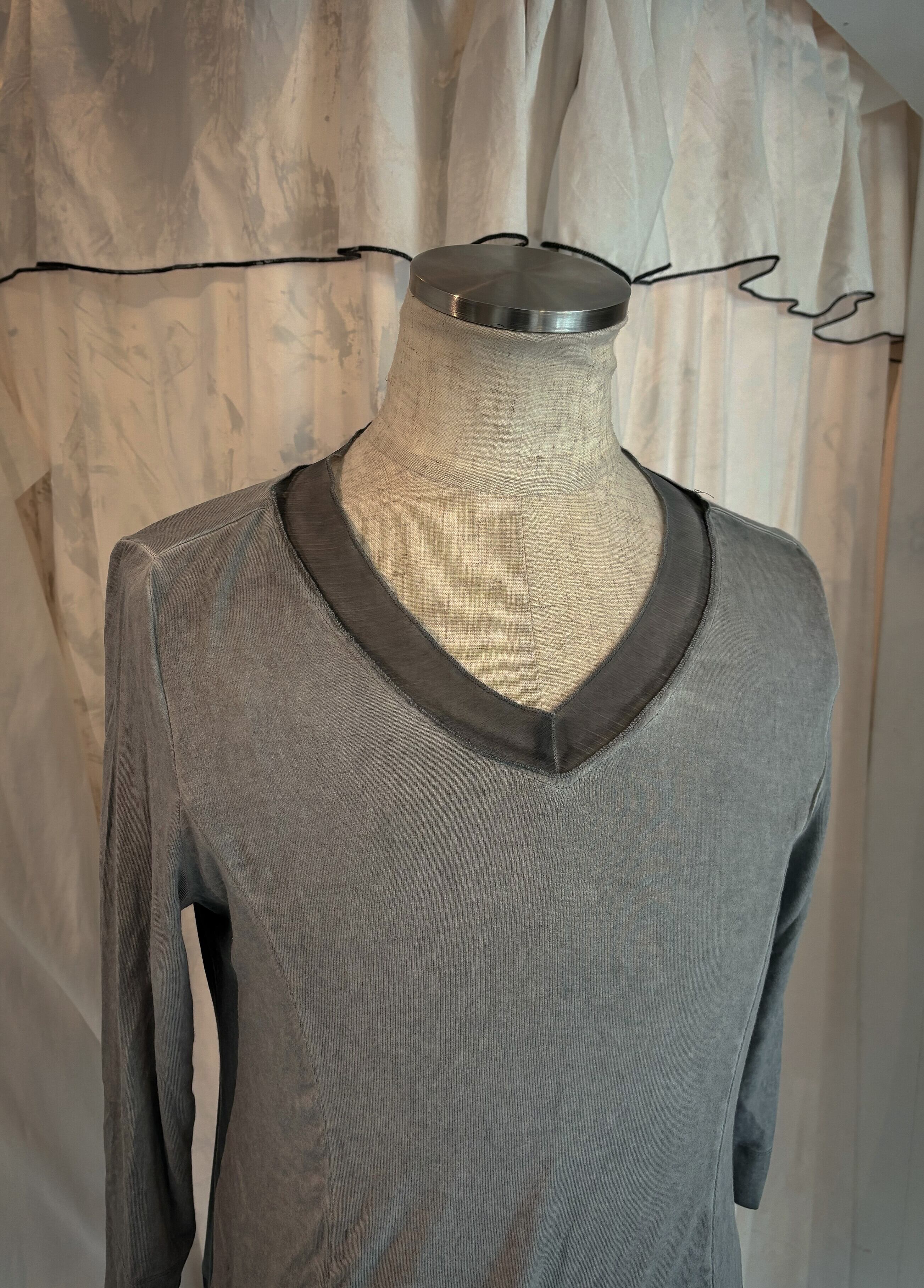 Gray Lace Hem Thin Long Tee