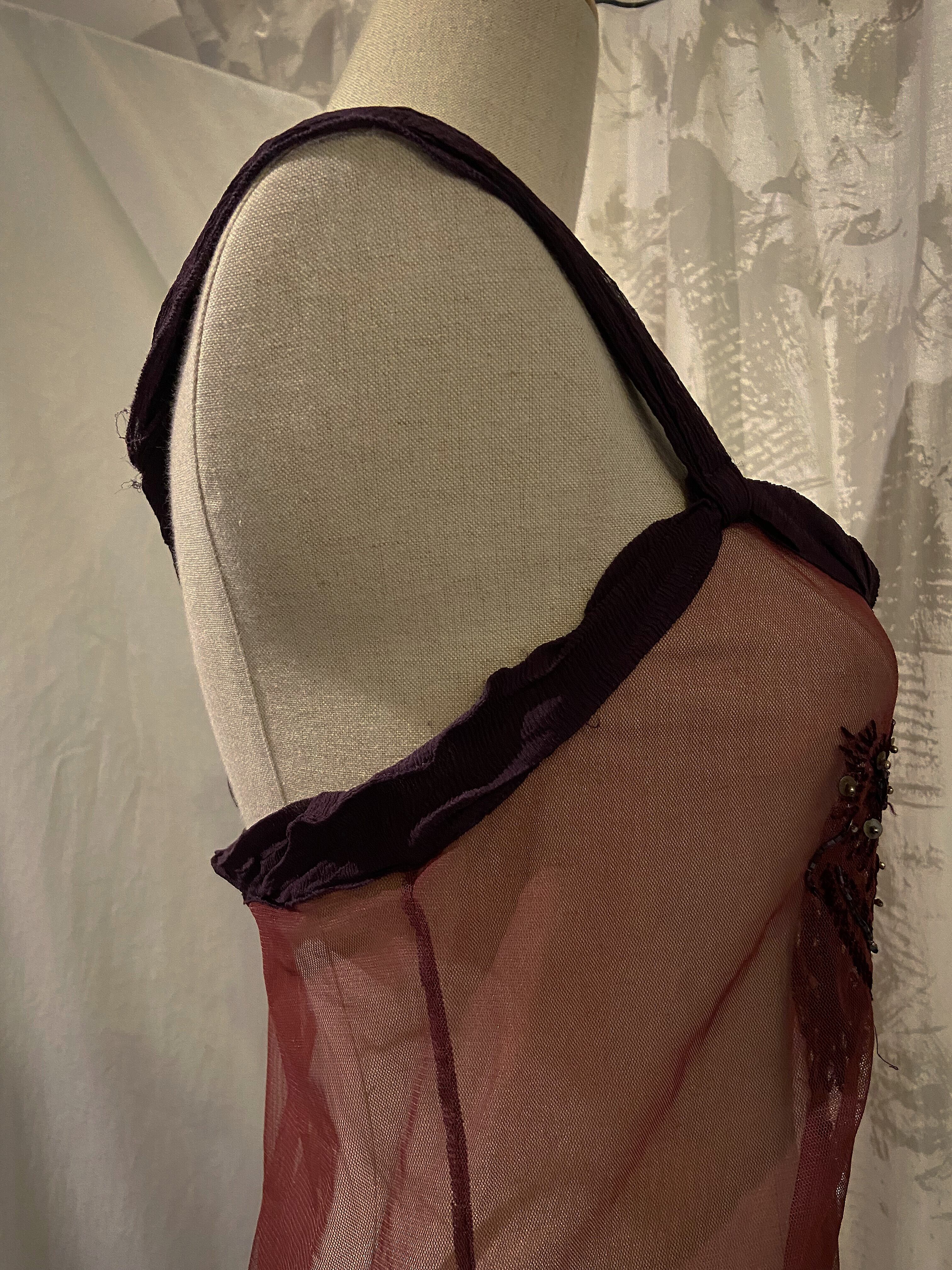Sheer Embroidered Red Camisole