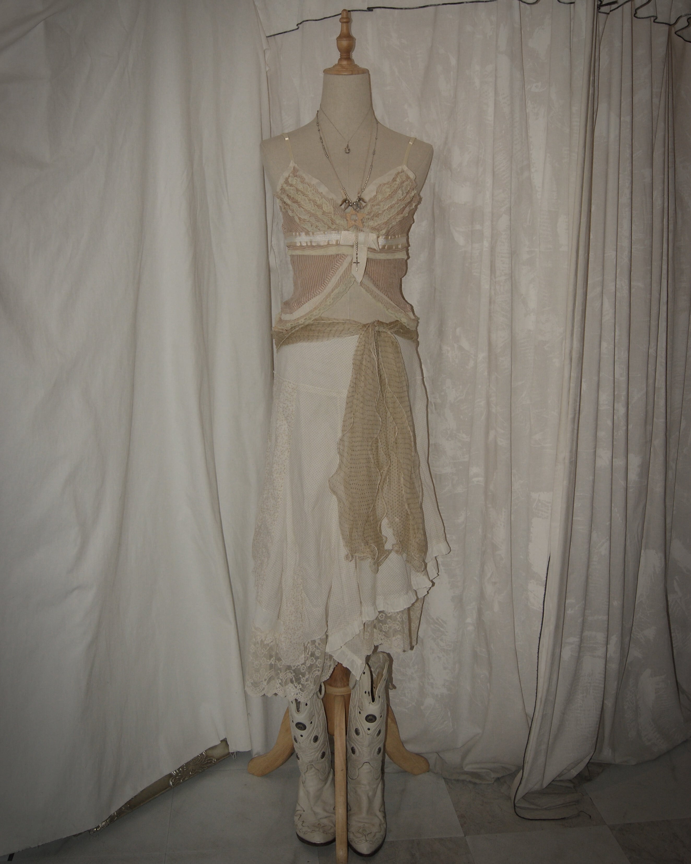 Cream Mini Dots Layered Scarf