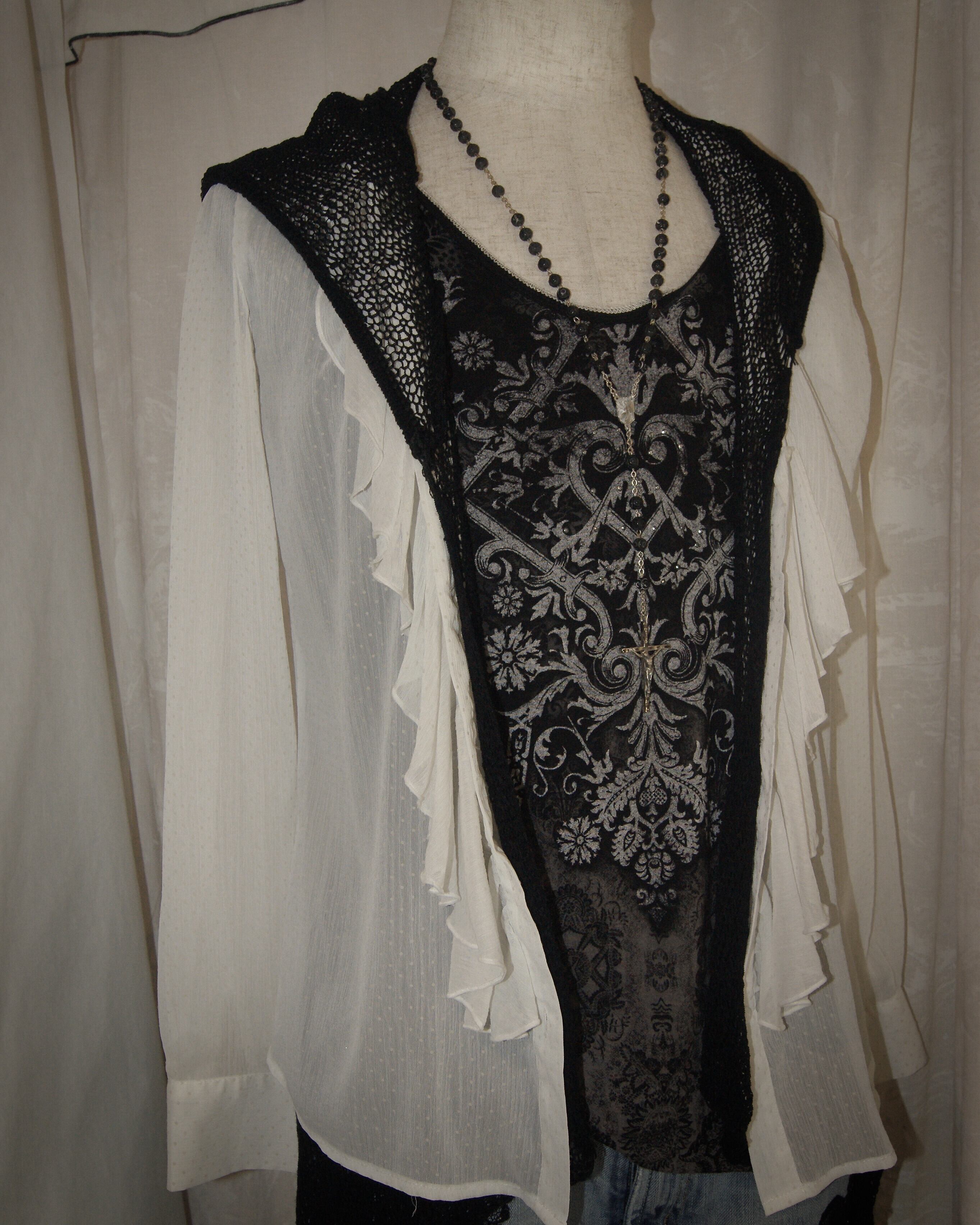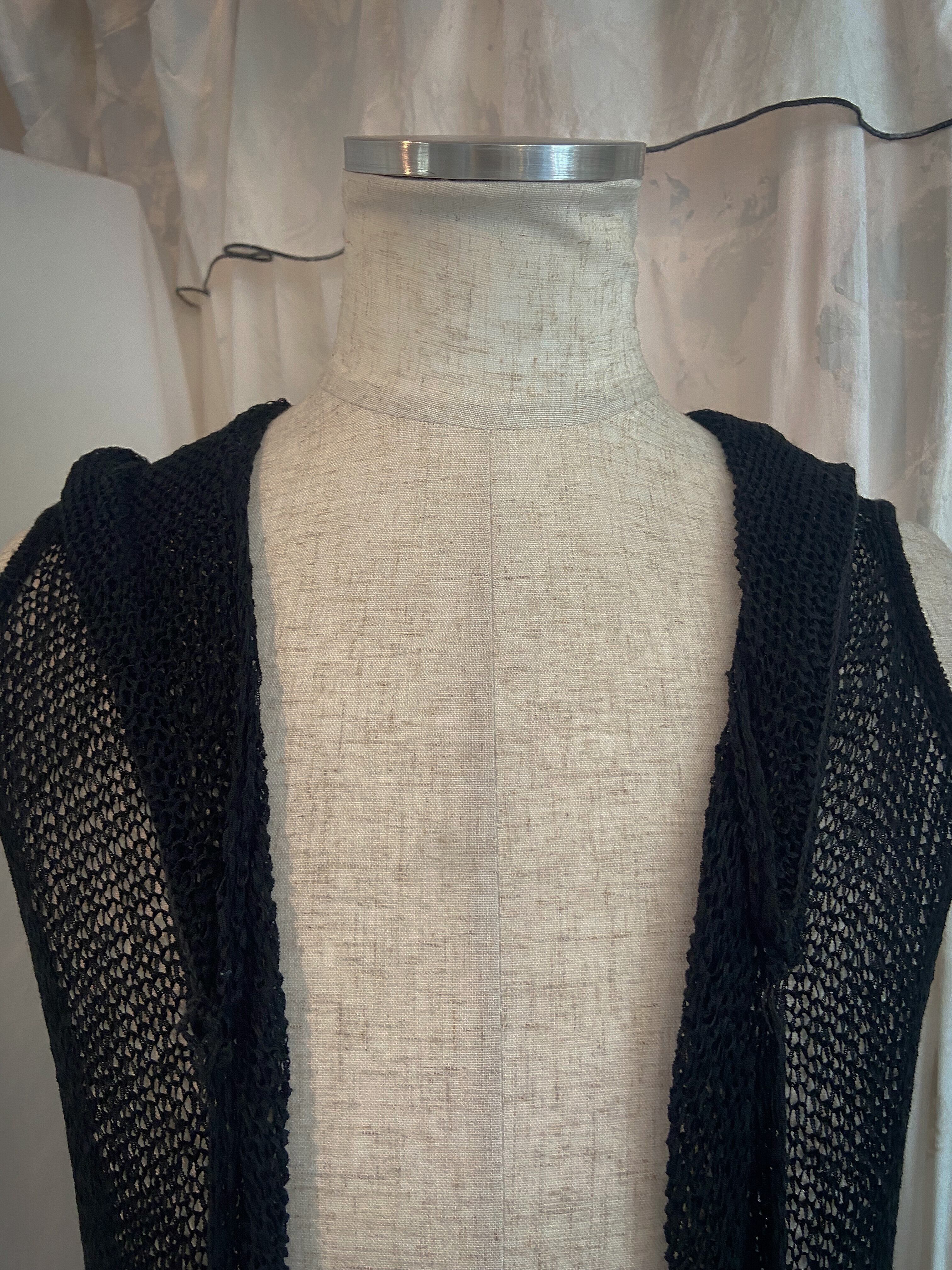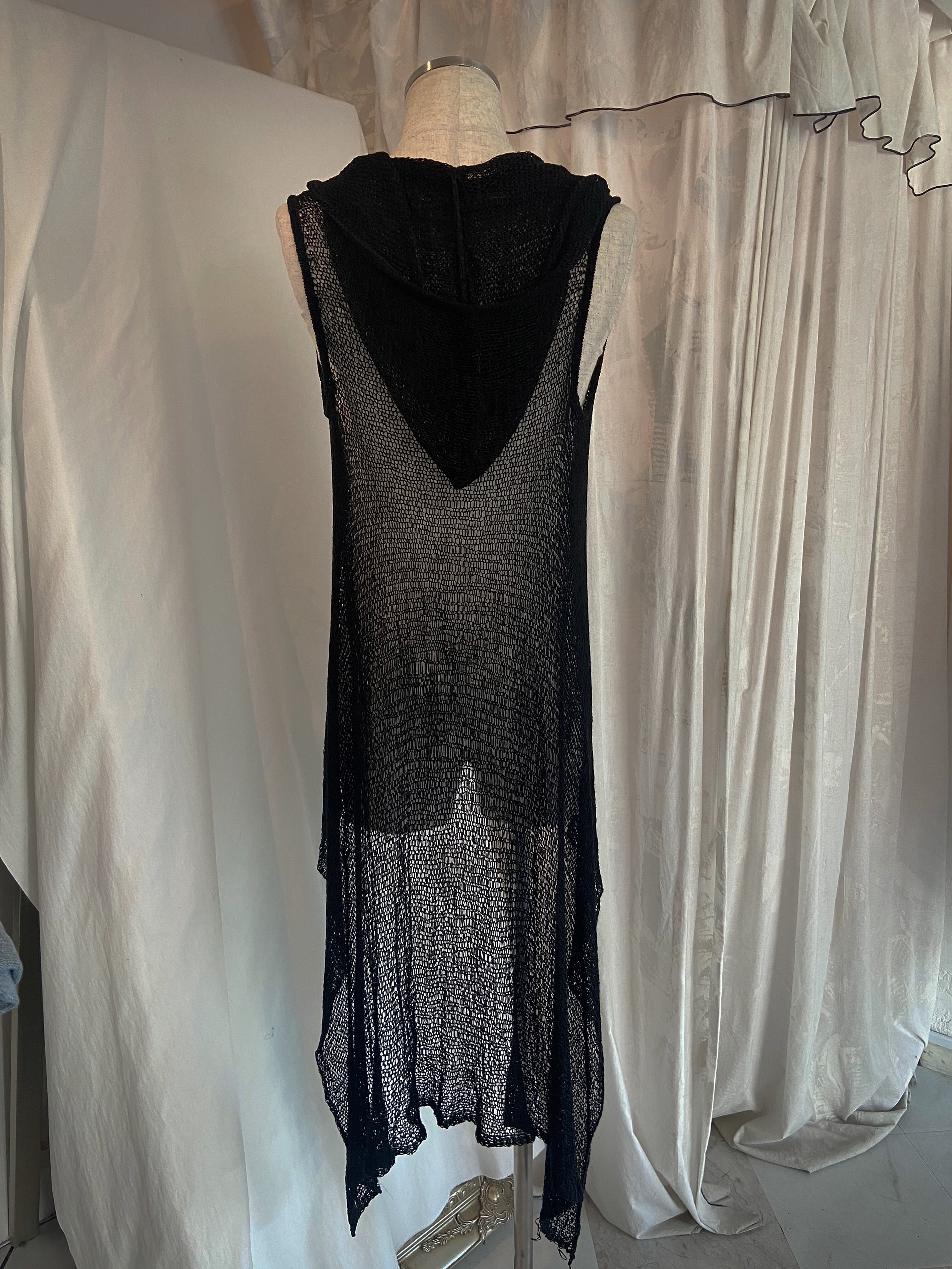 Knit Hood Black Super Long Vest