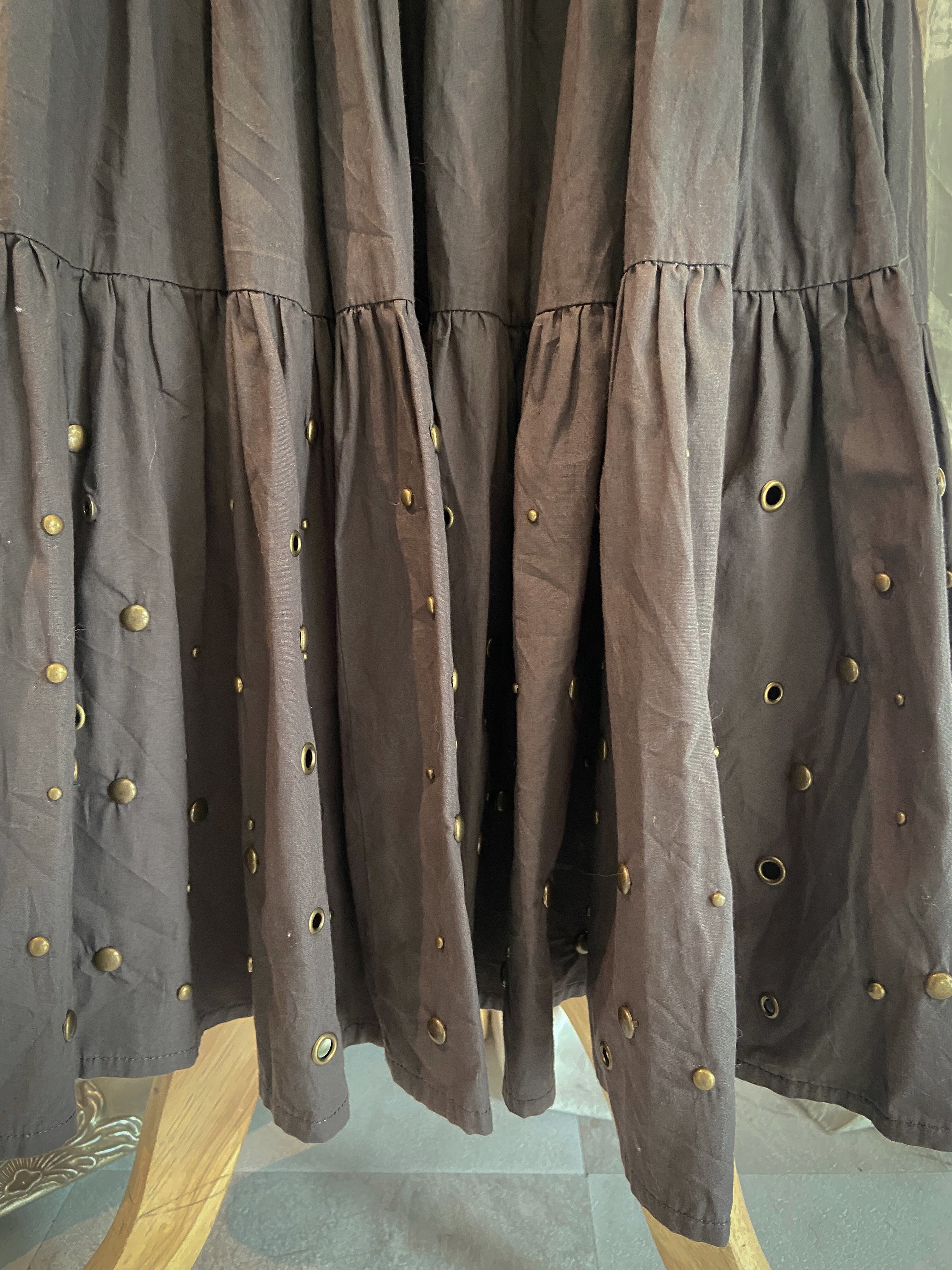 Studs Brown Long Flare Skirt