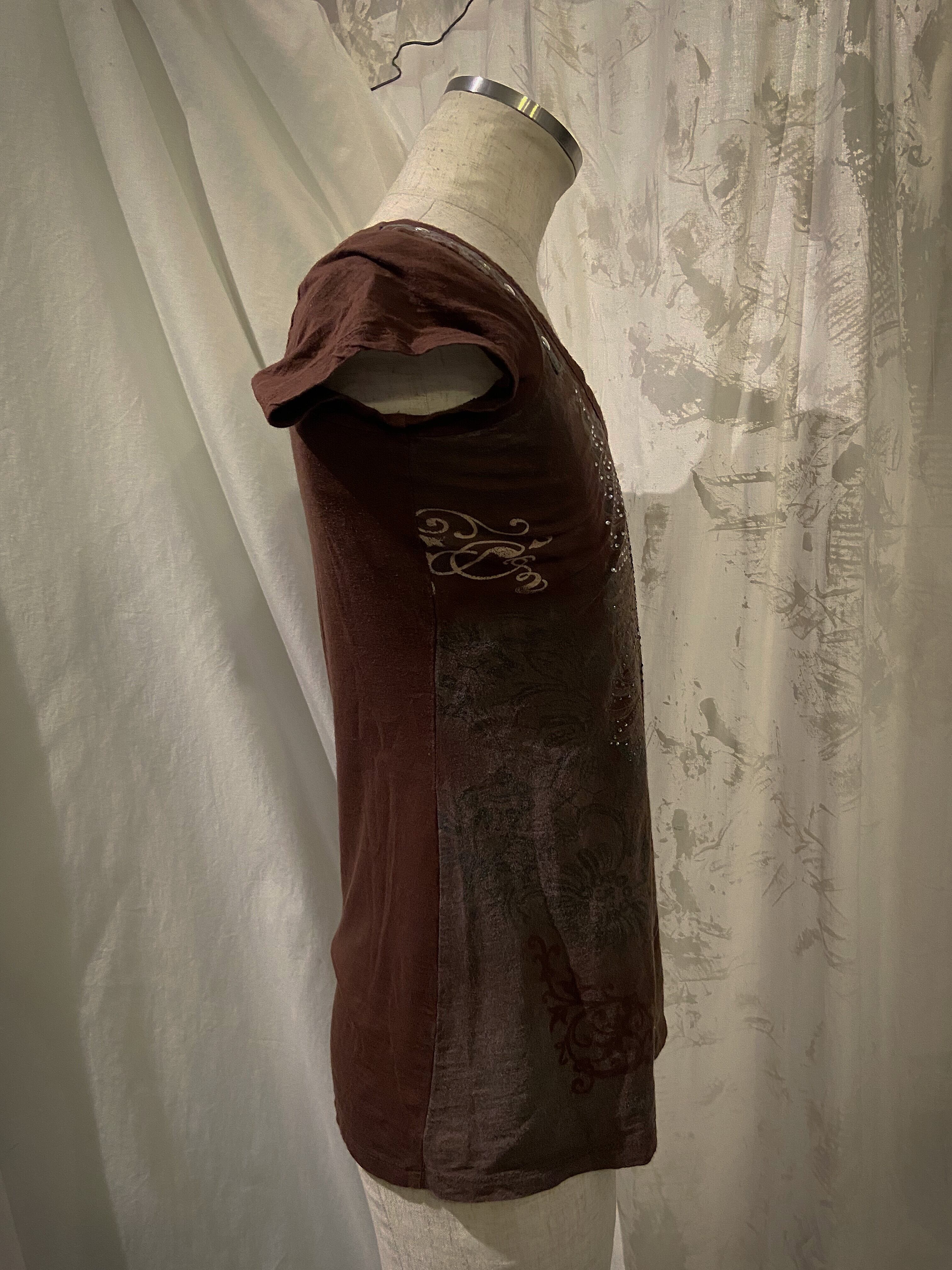 Grunge Tight Brown Beads Tee Shirt