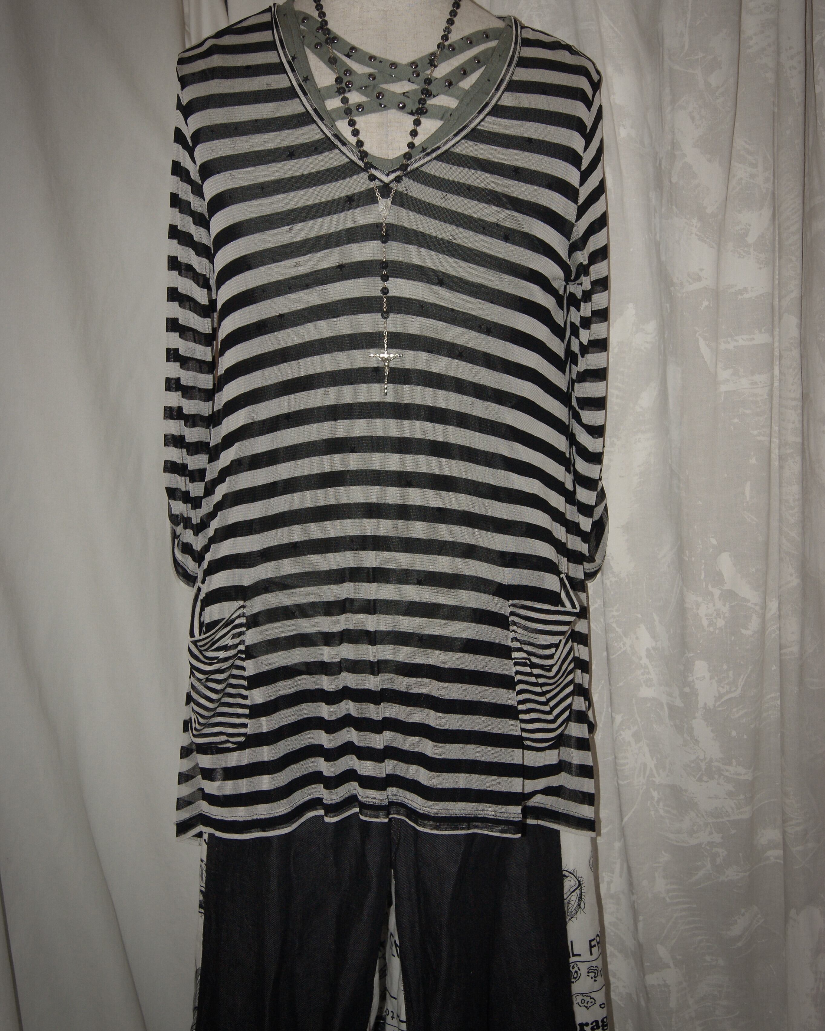 Sheer Border Two Pockets Long Tee
