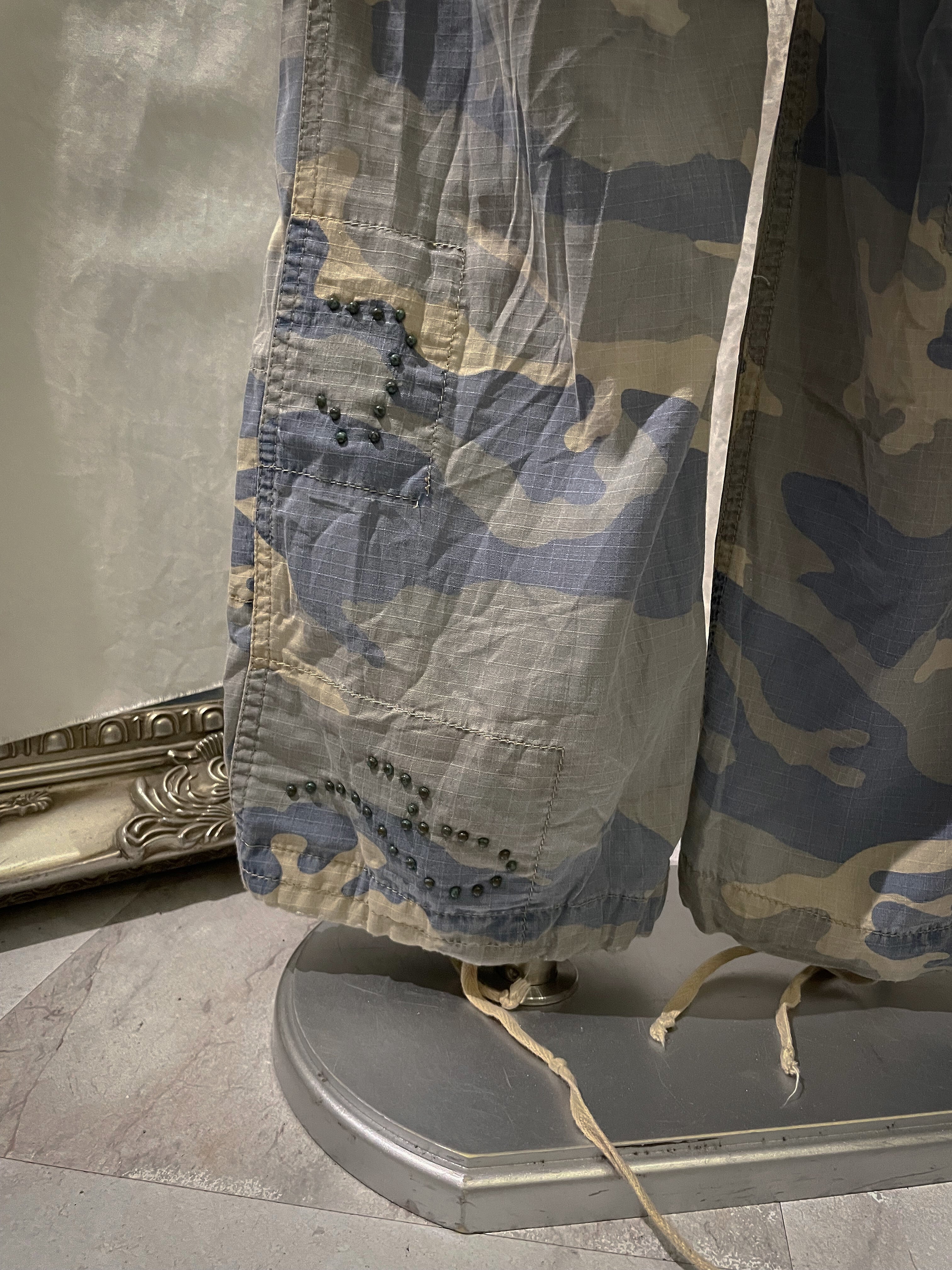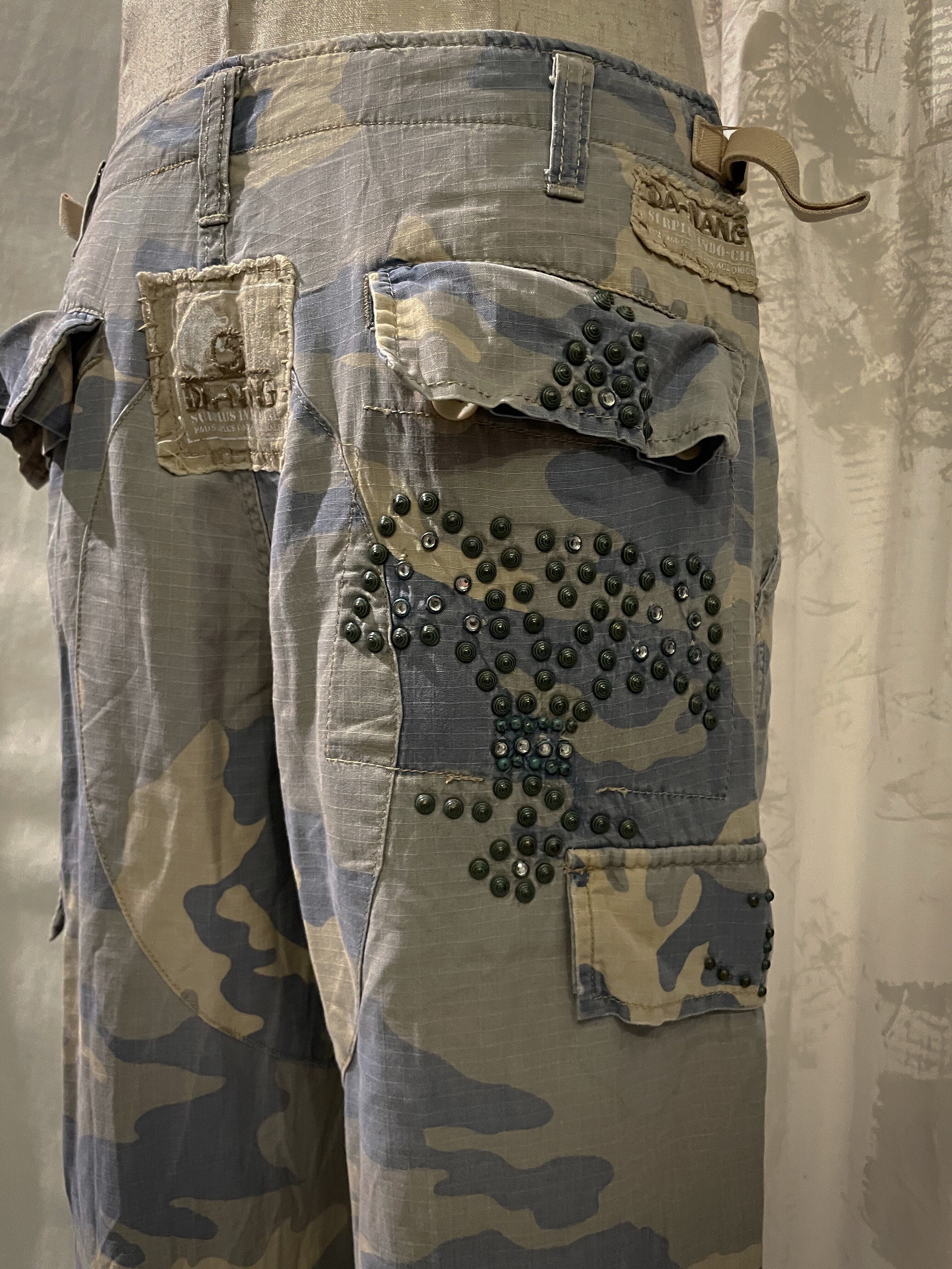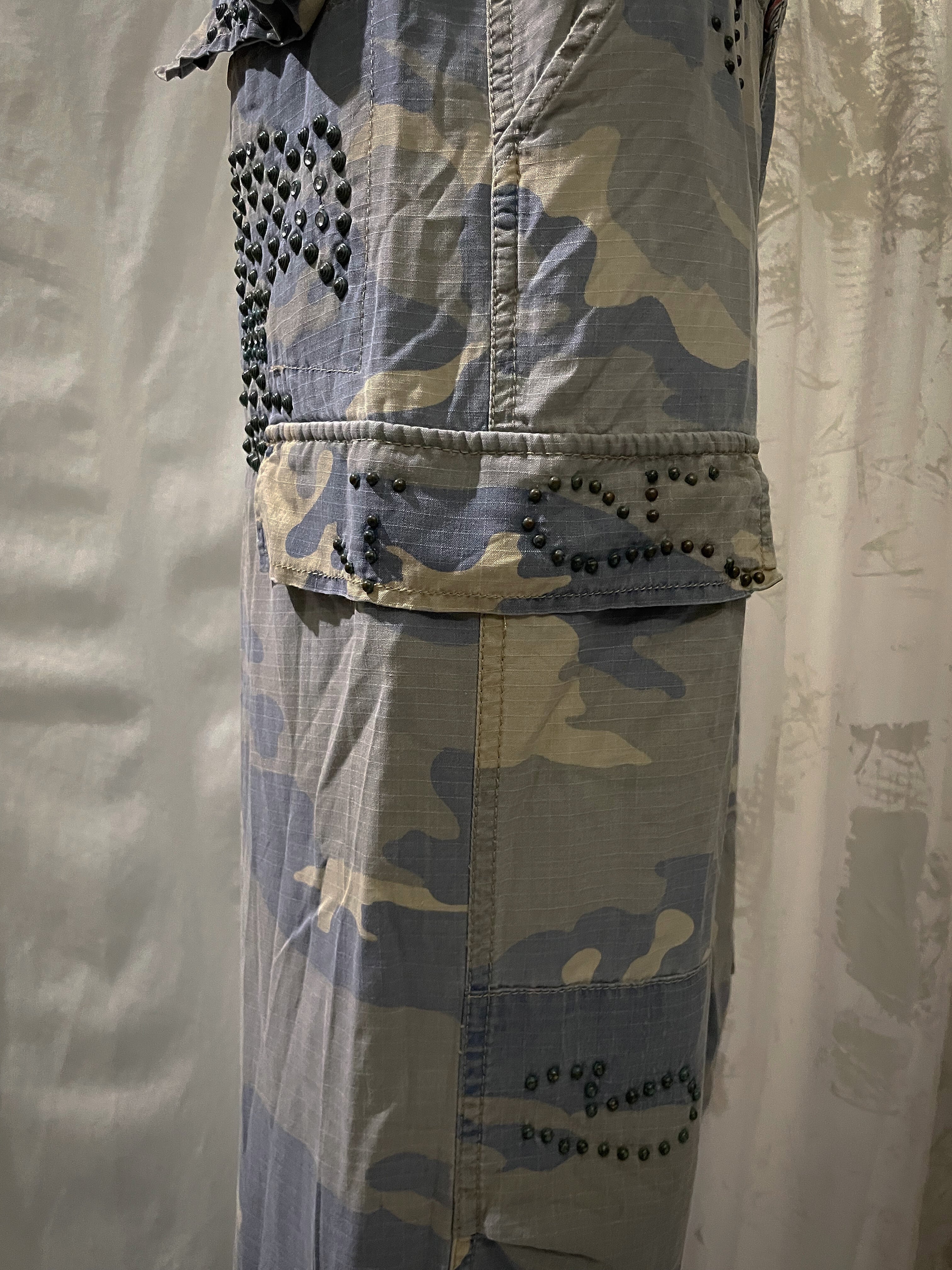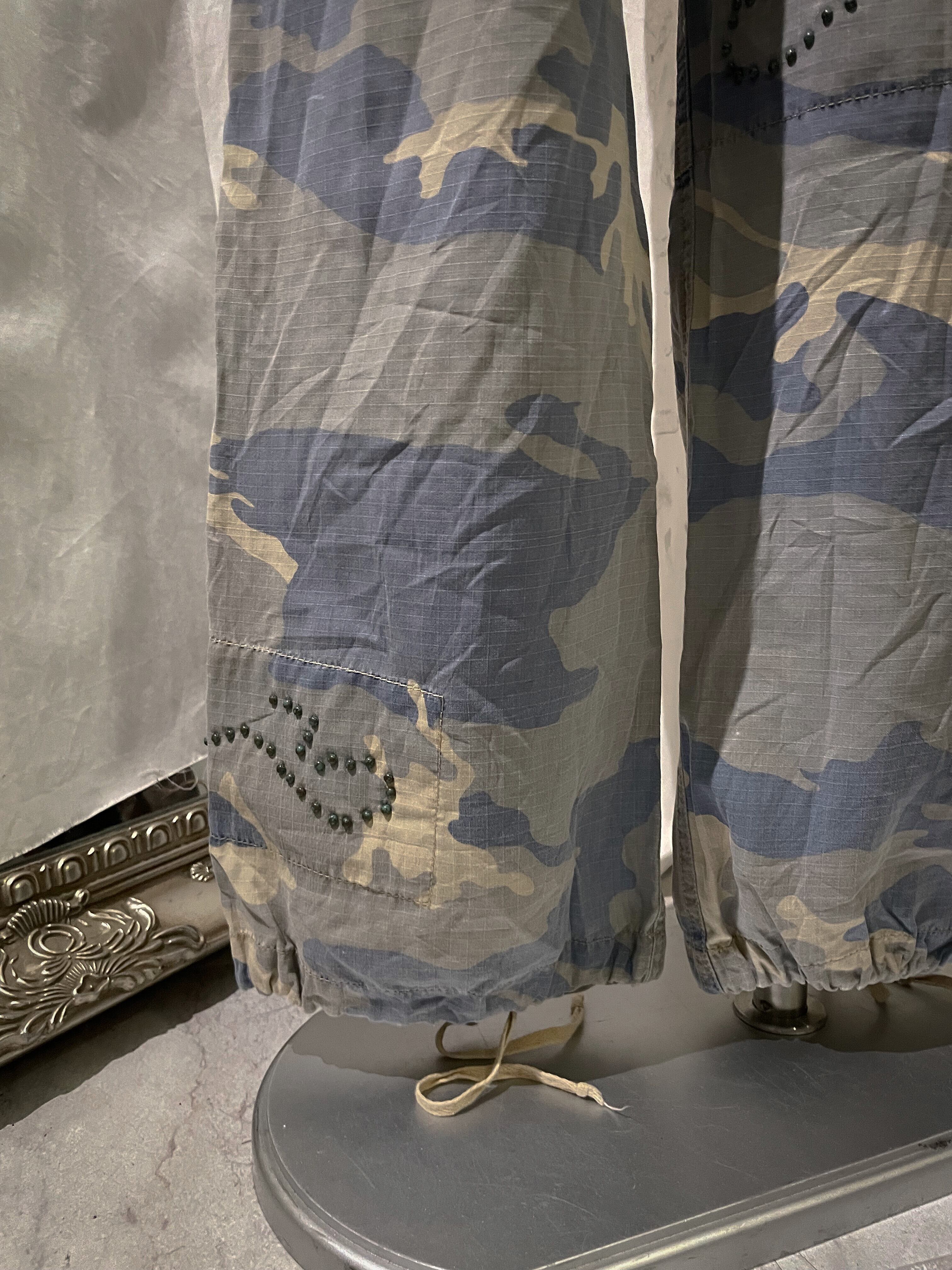 Camouflage Blue With Beads Cargo Pants