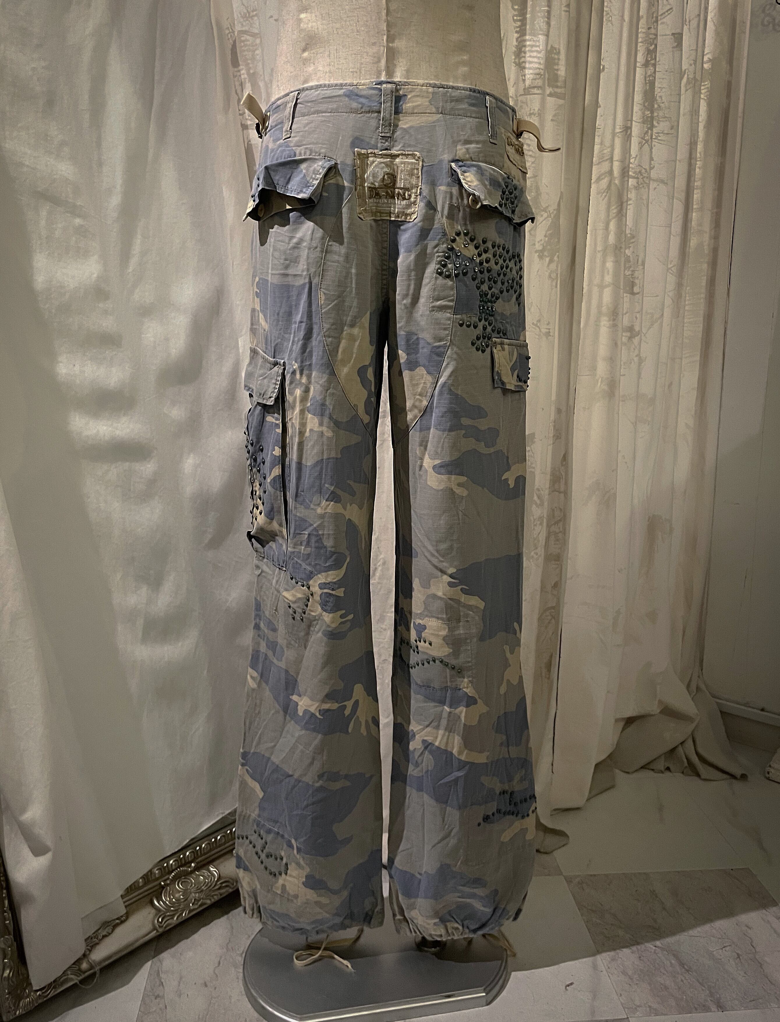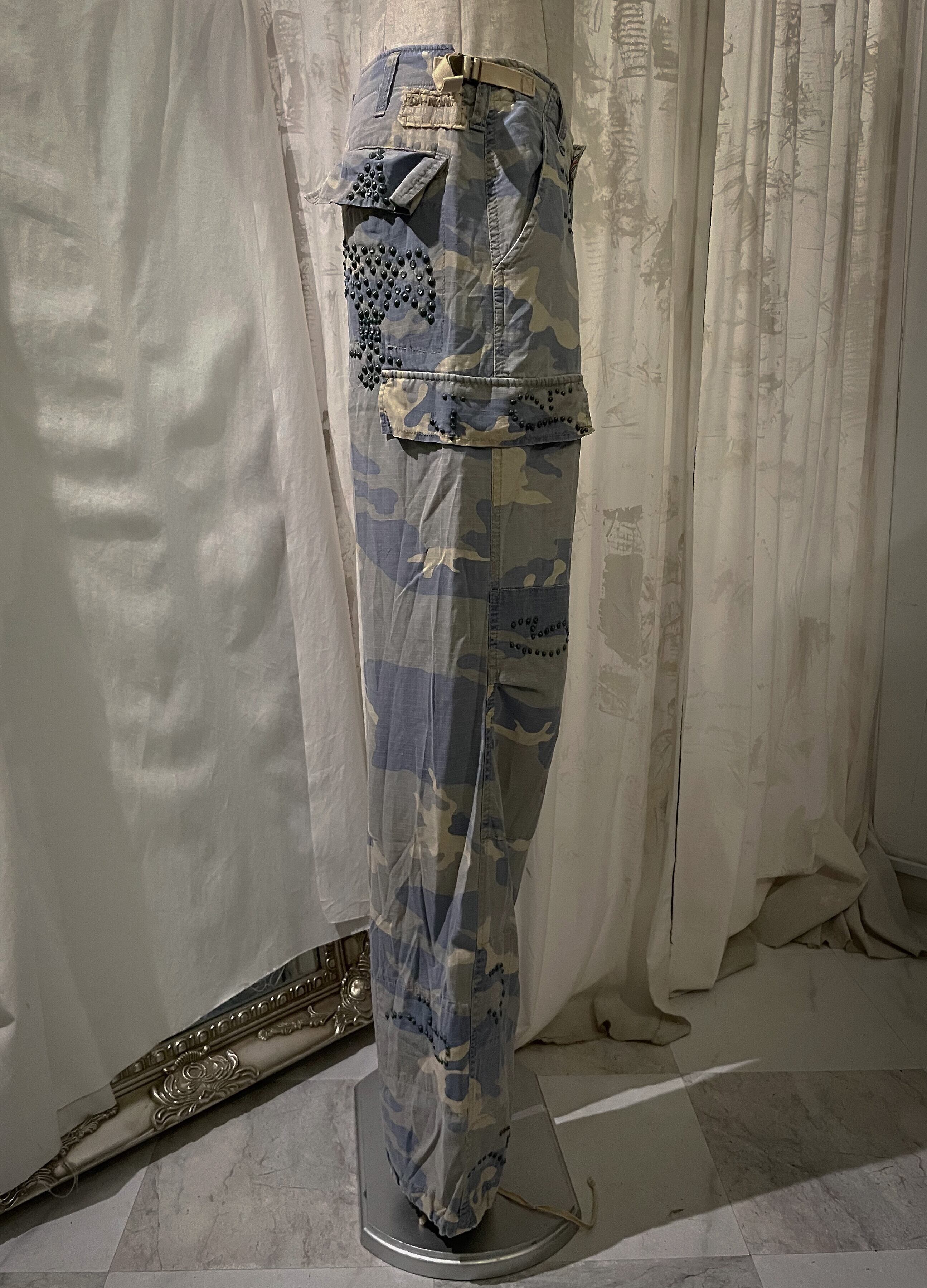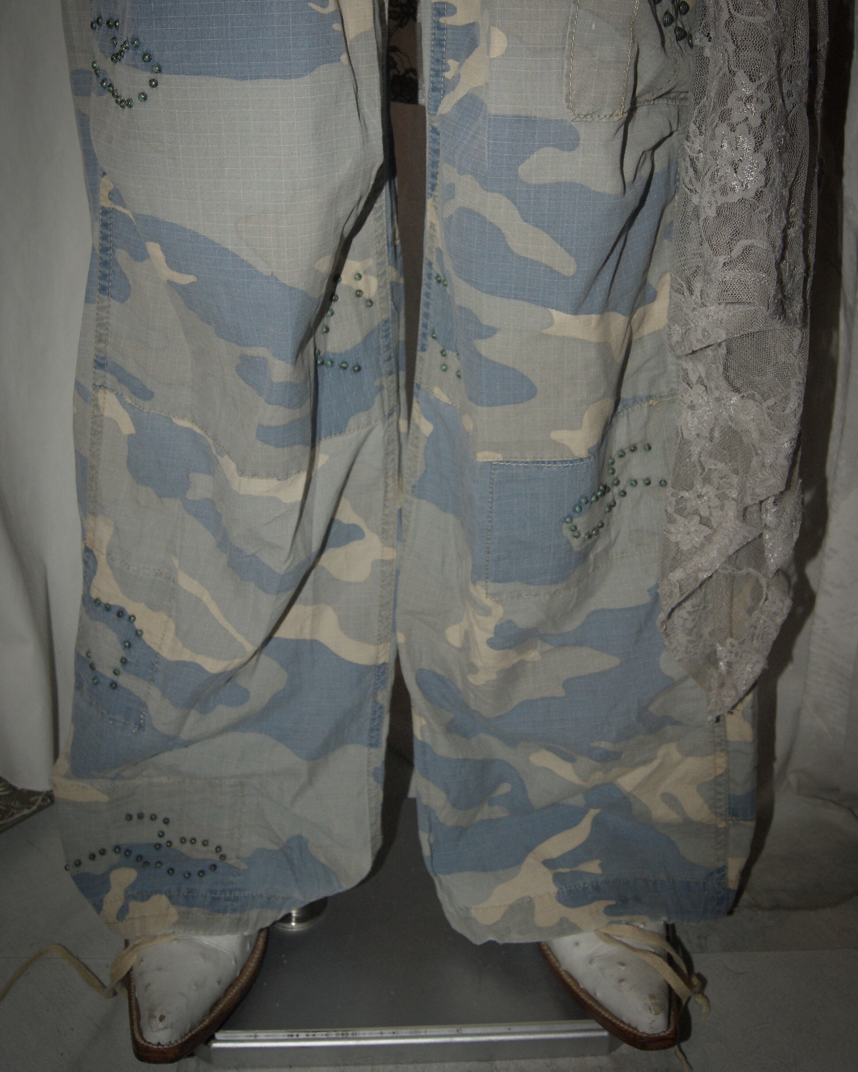 Camouflage Blue With Beads Cargo Pants
