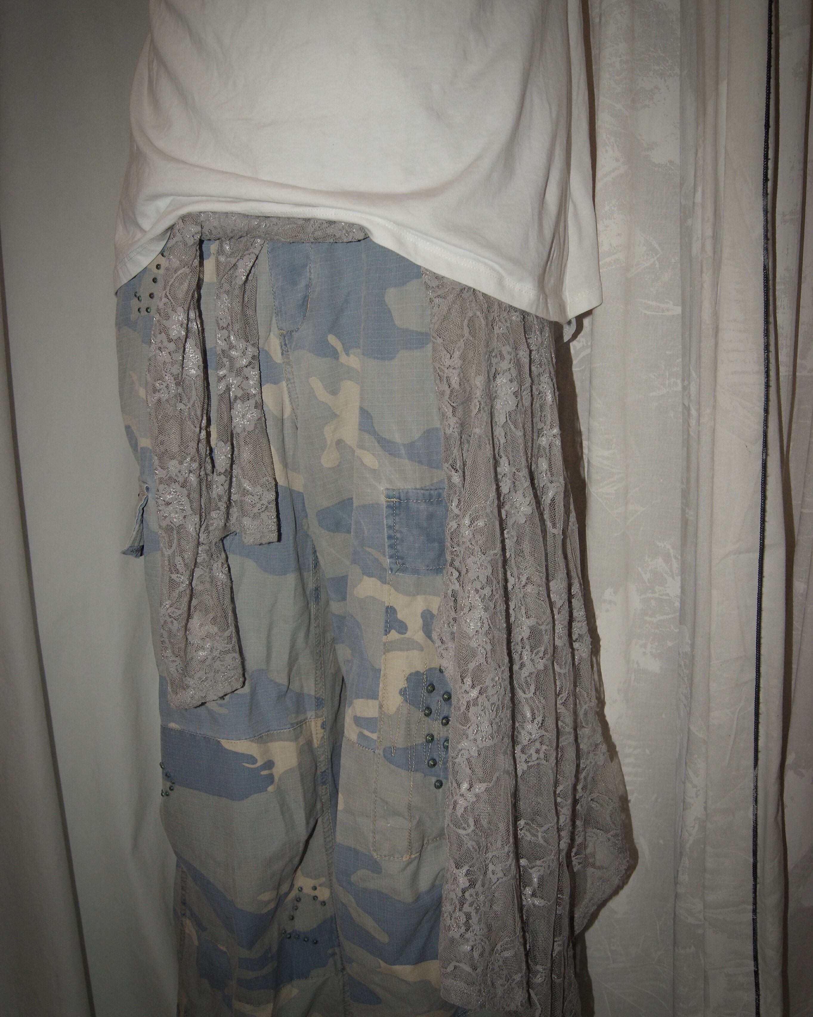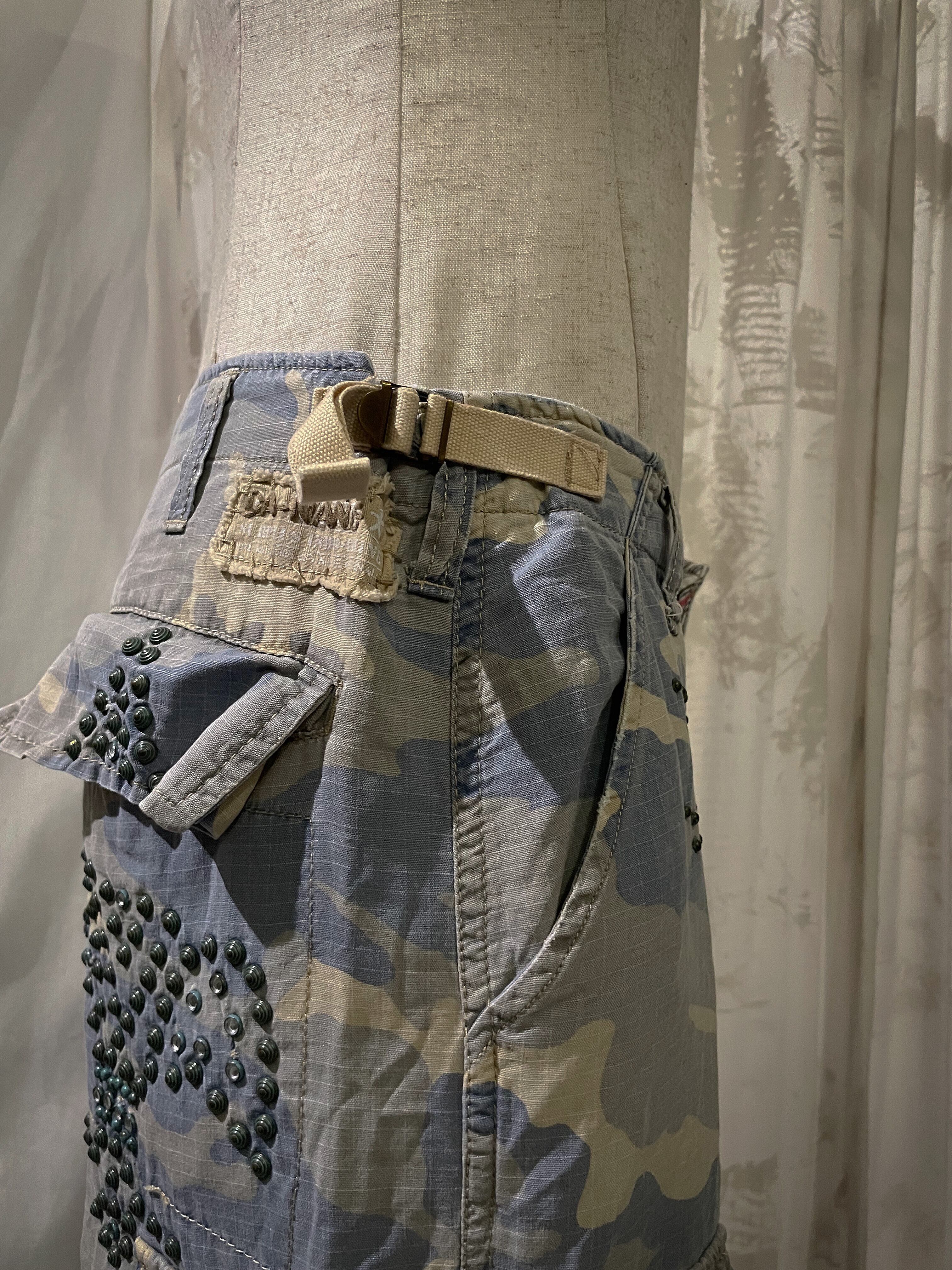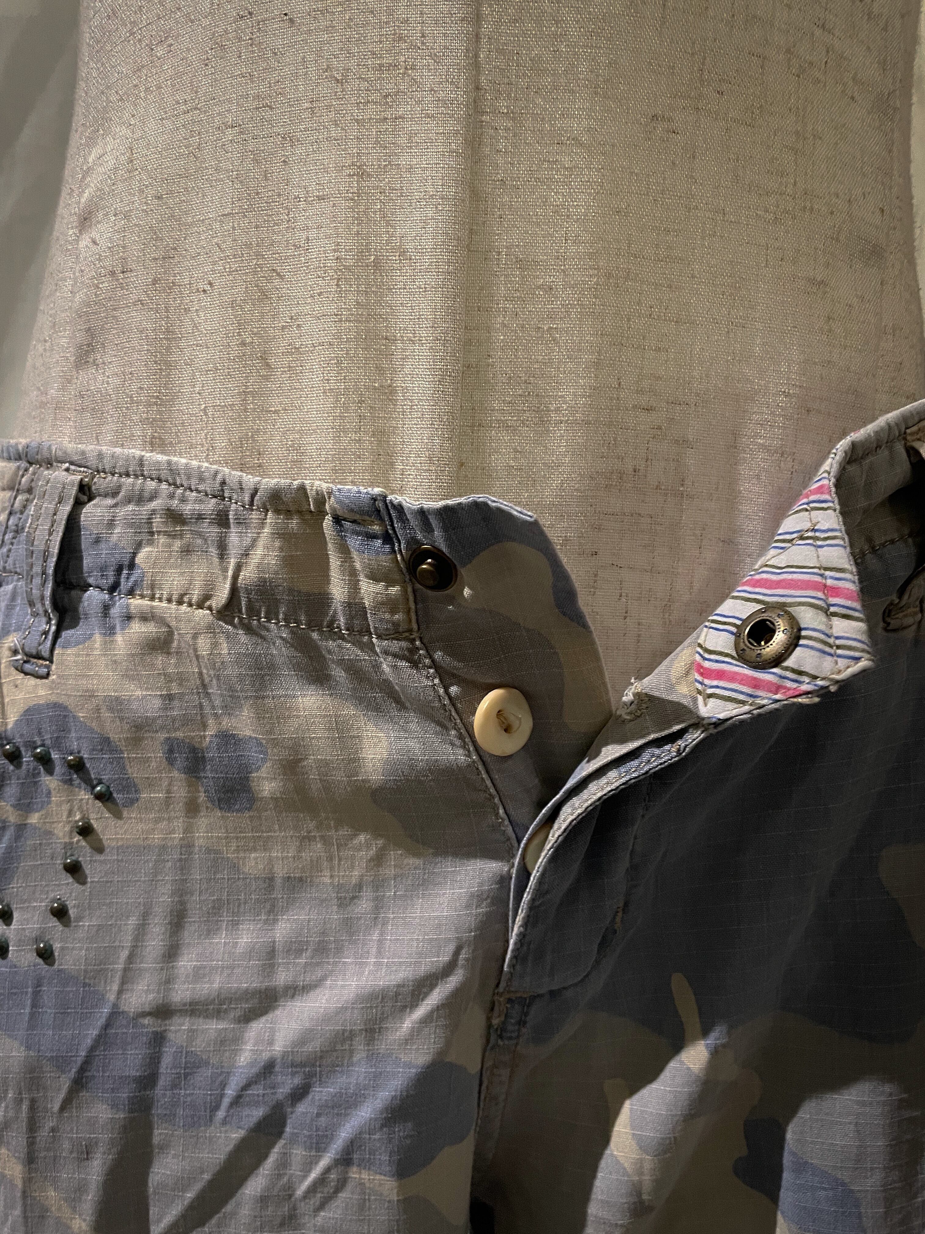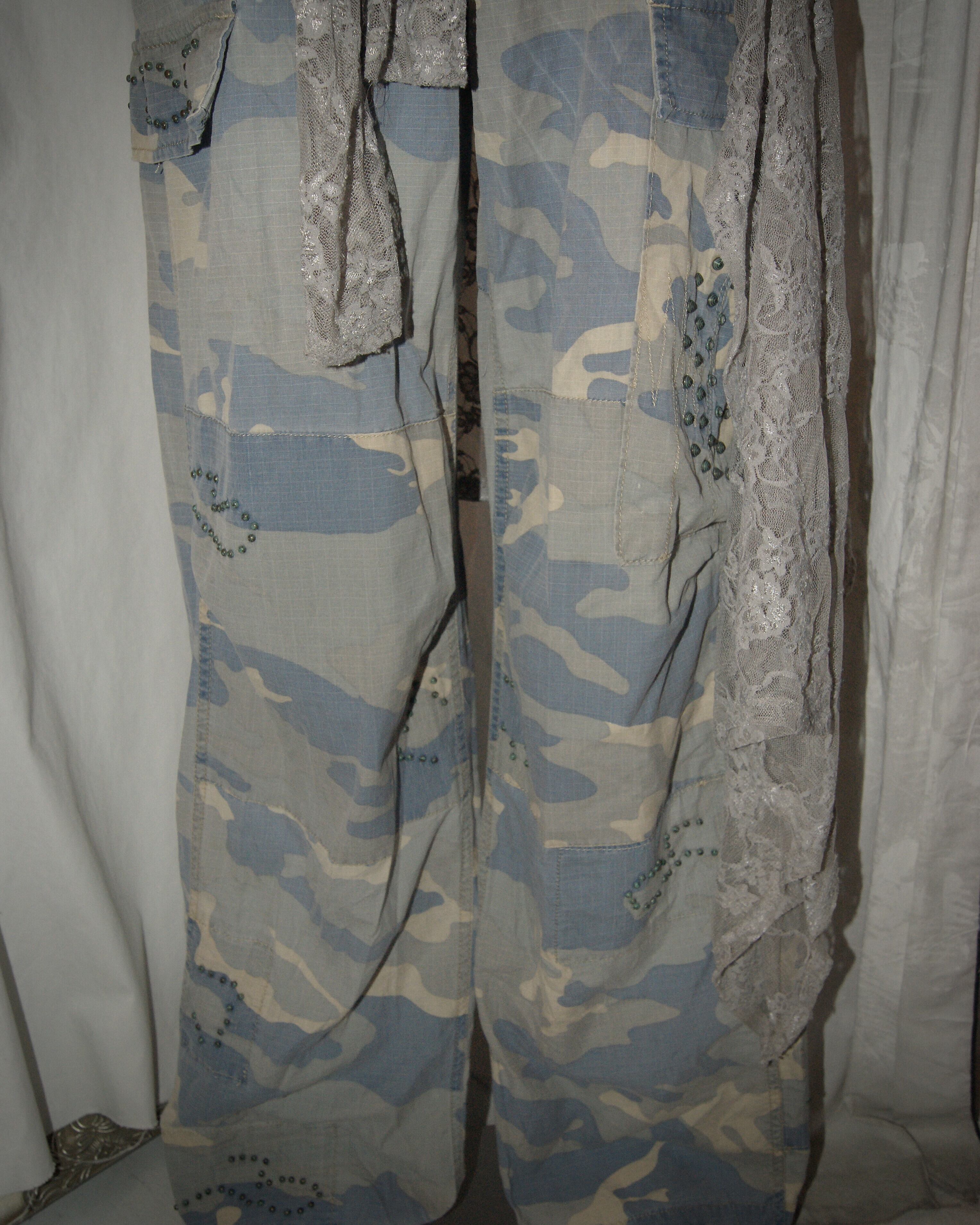 Camouflage Blue With Beads Cargo Pants