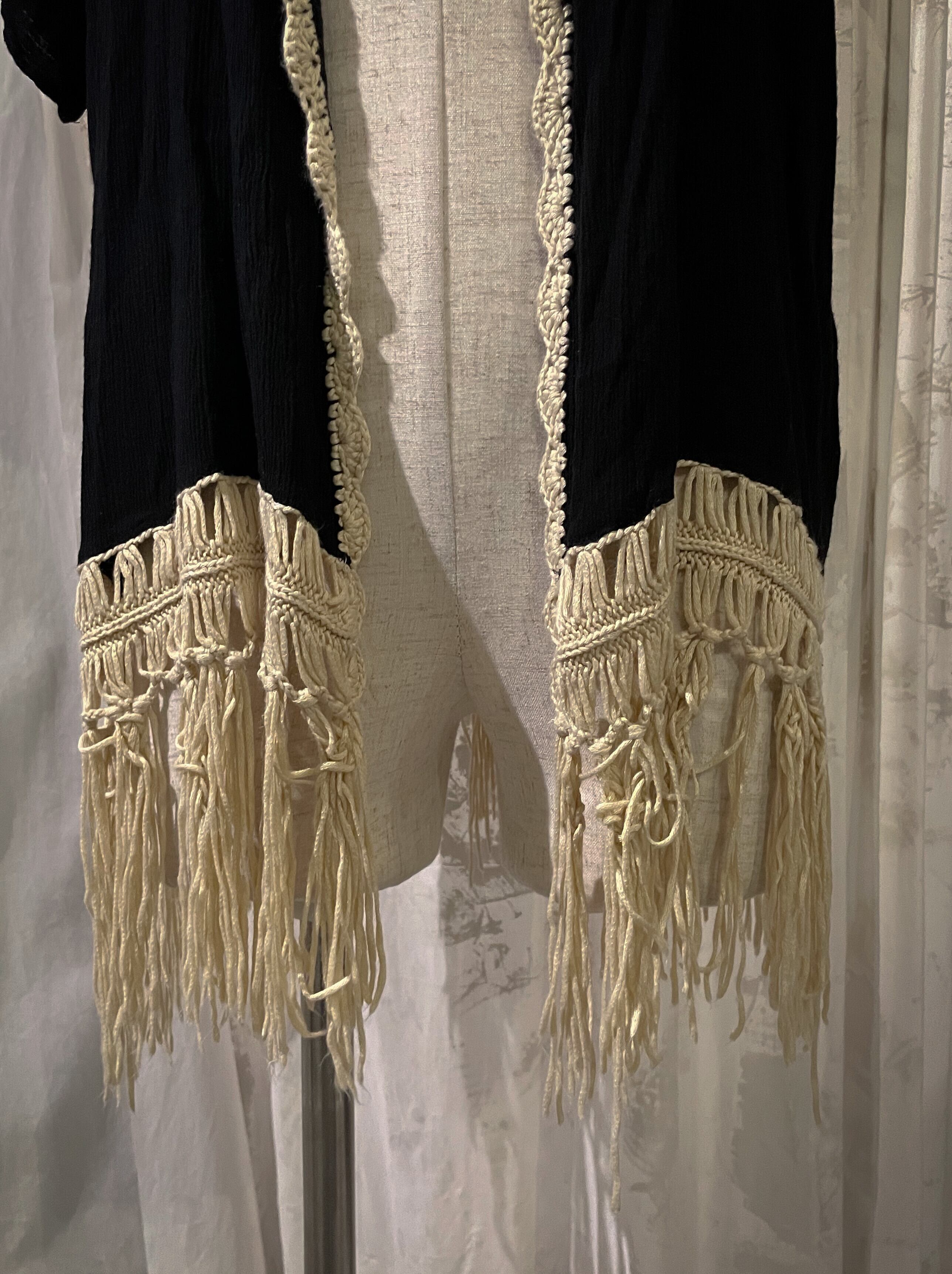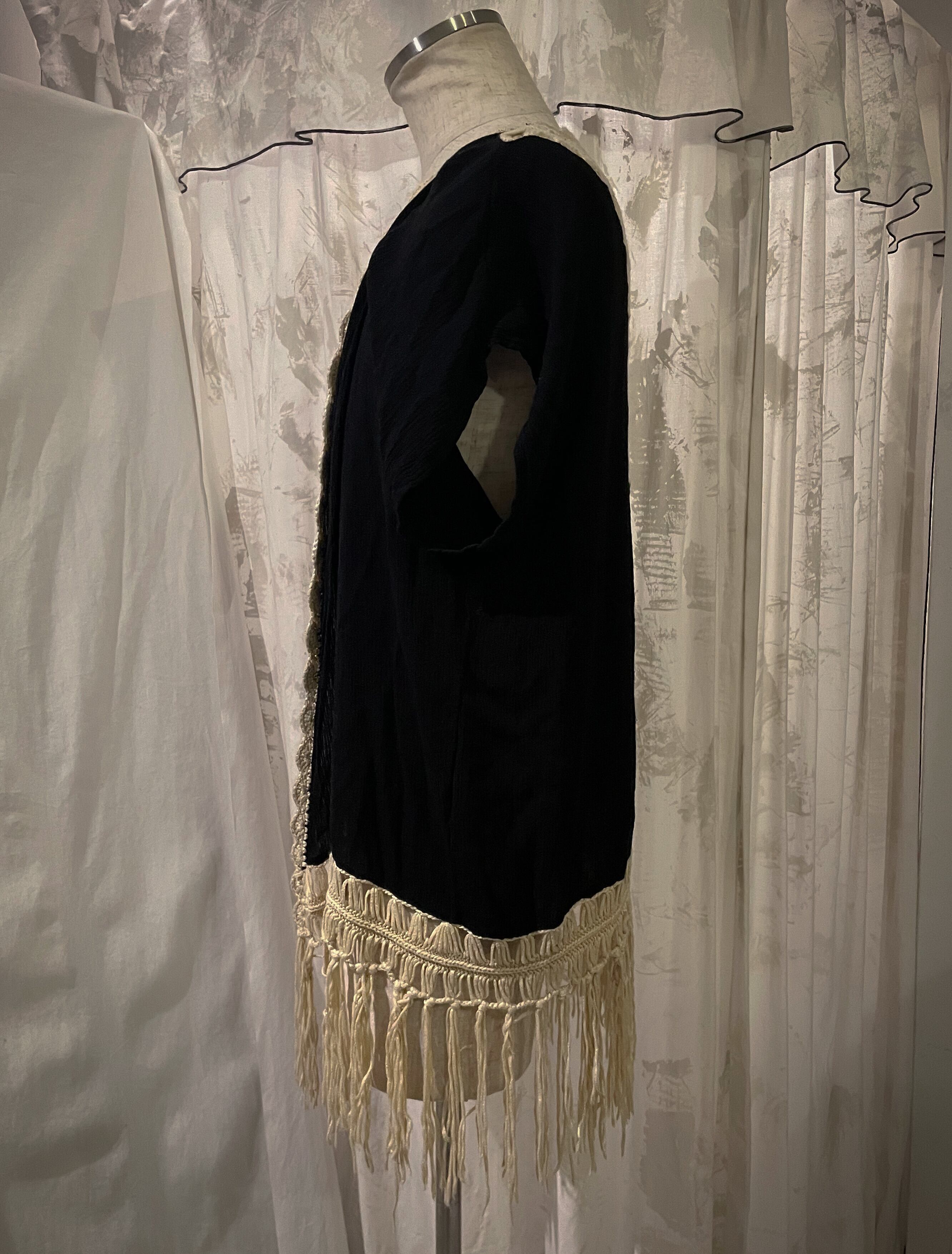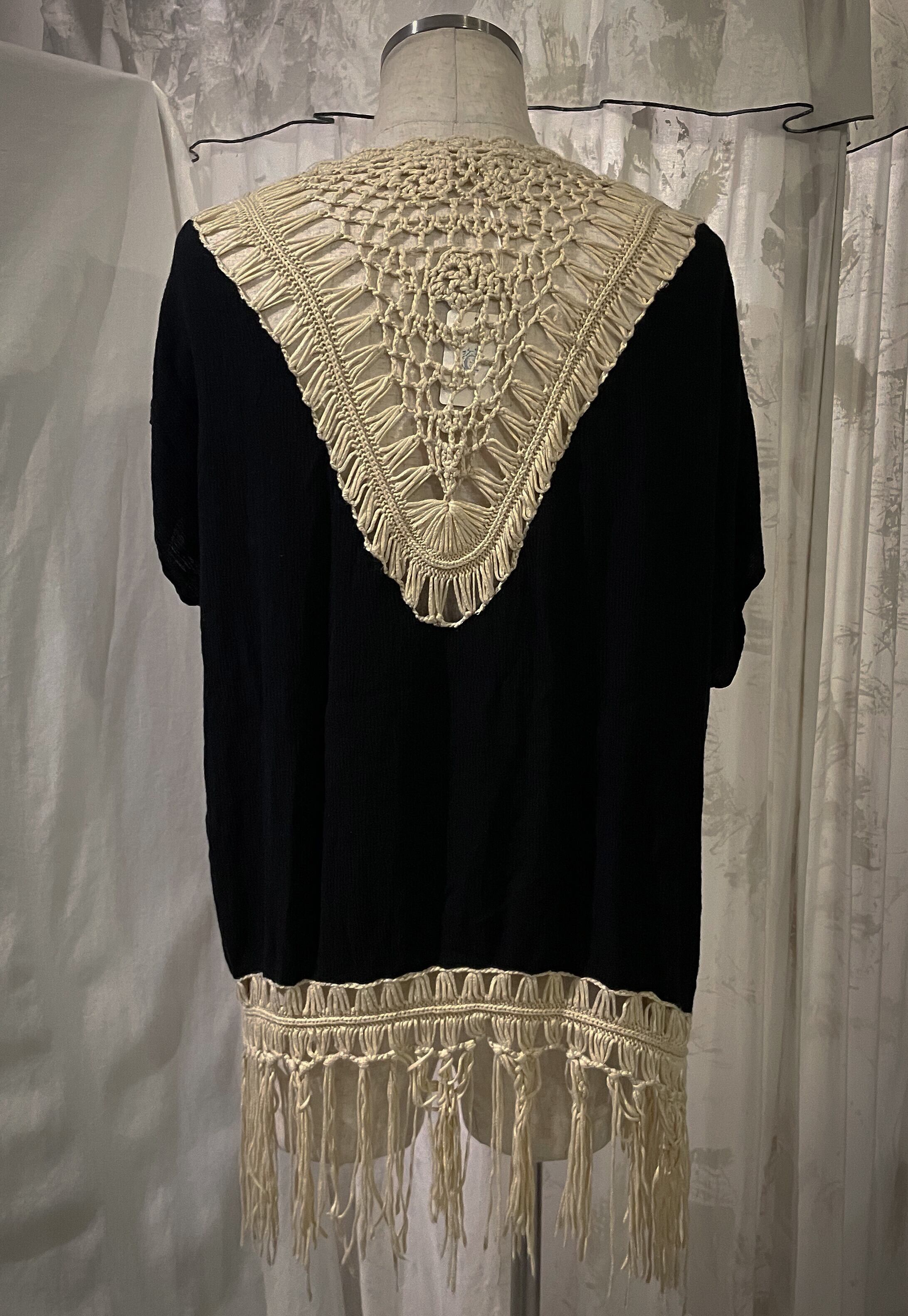 Ethnic Fringe Knit Short Sleeve Cardigan