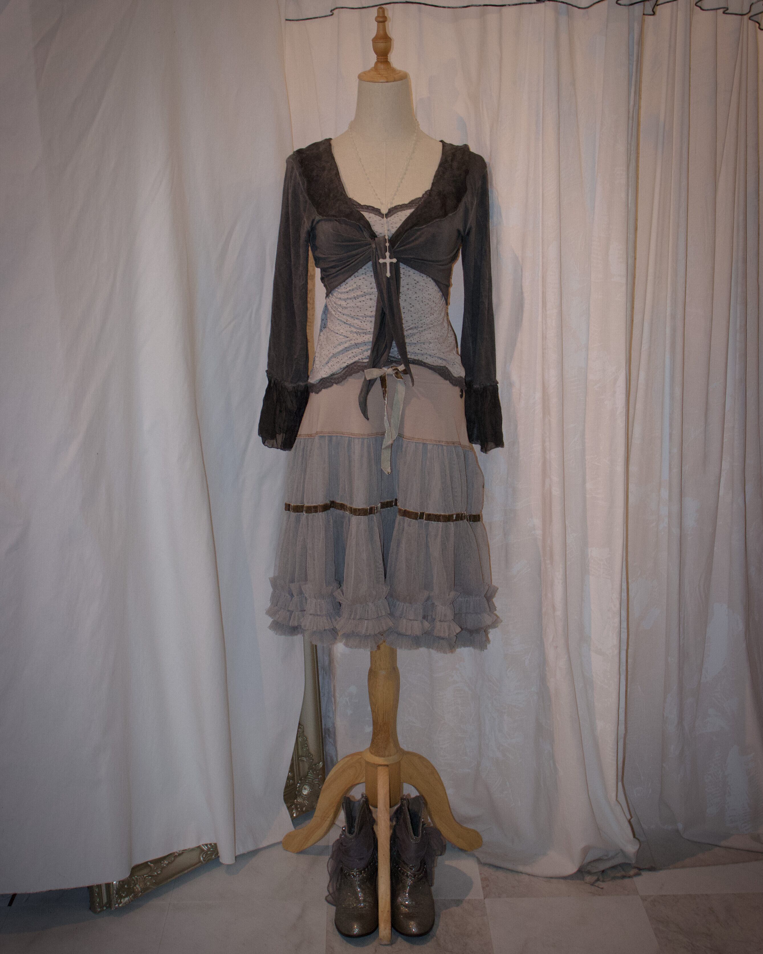 Tulle Ribbon Gray Skirt