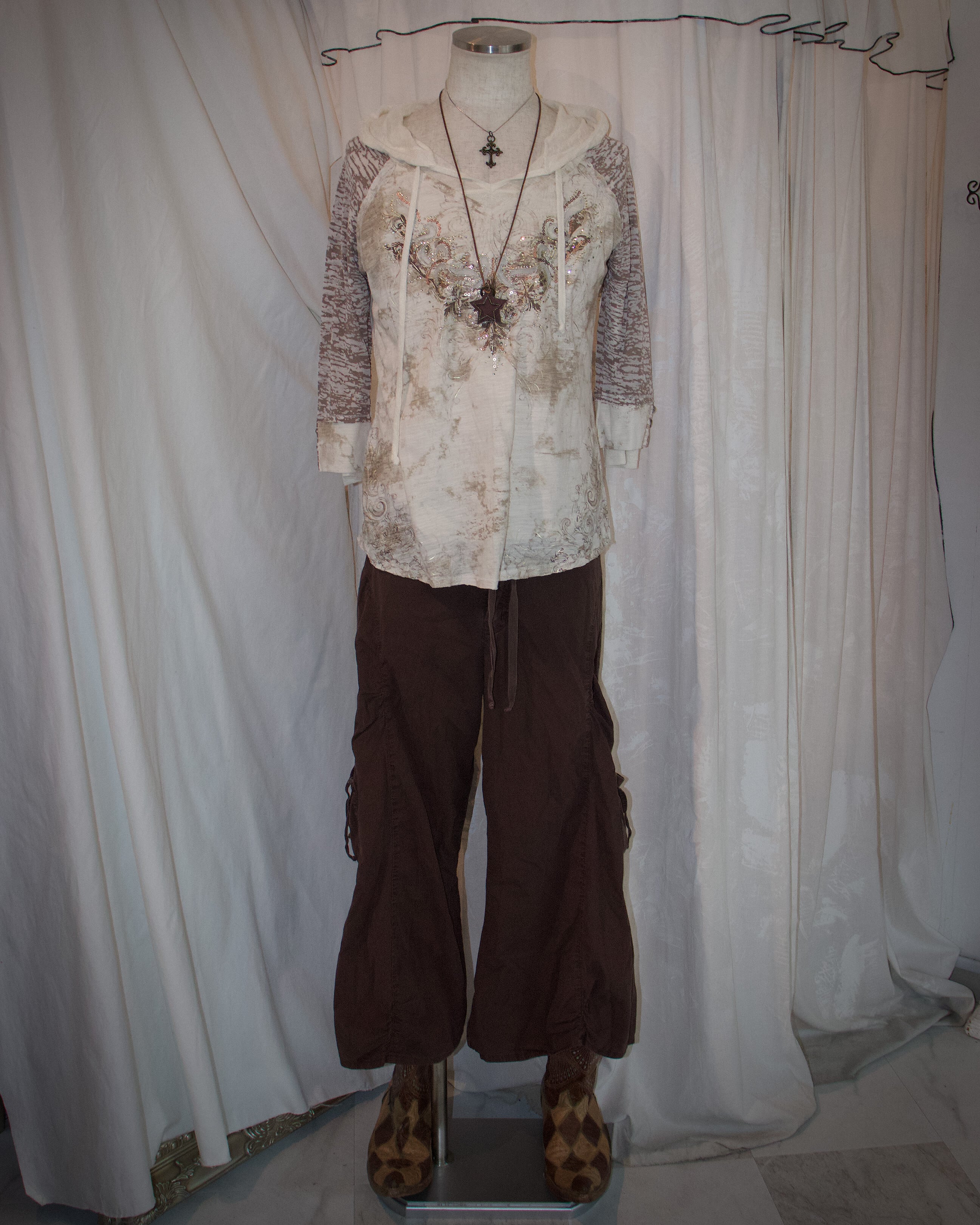 Side Slit Brown Half Cargo Pants