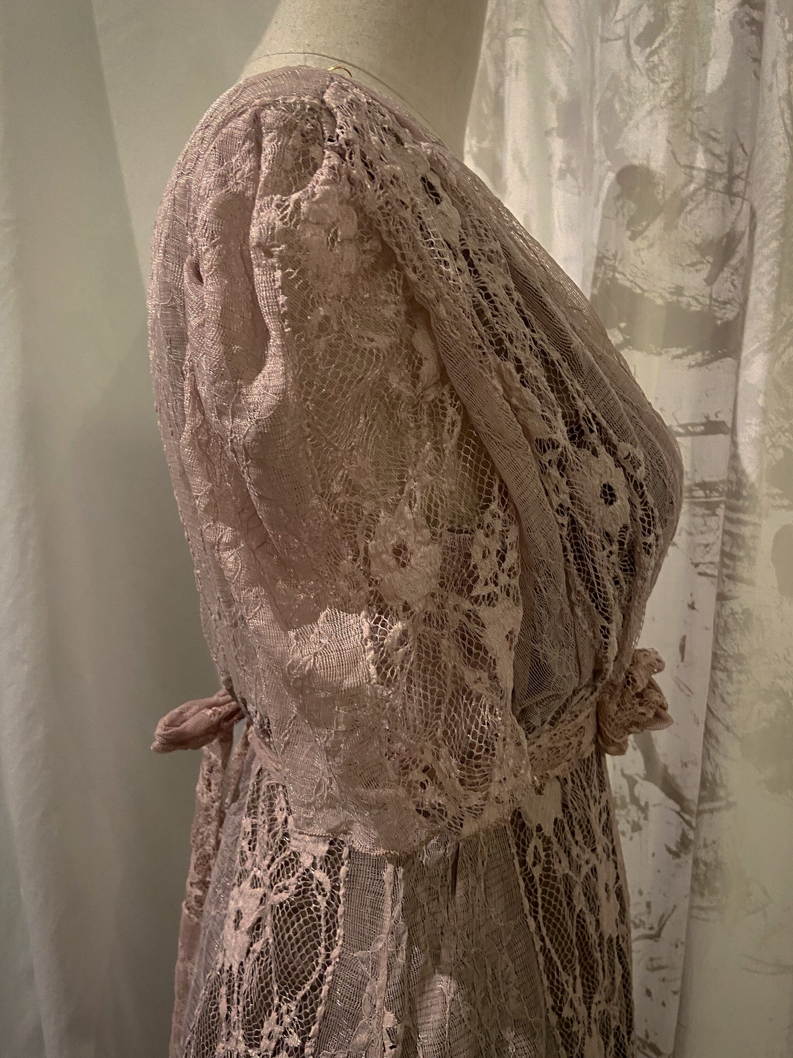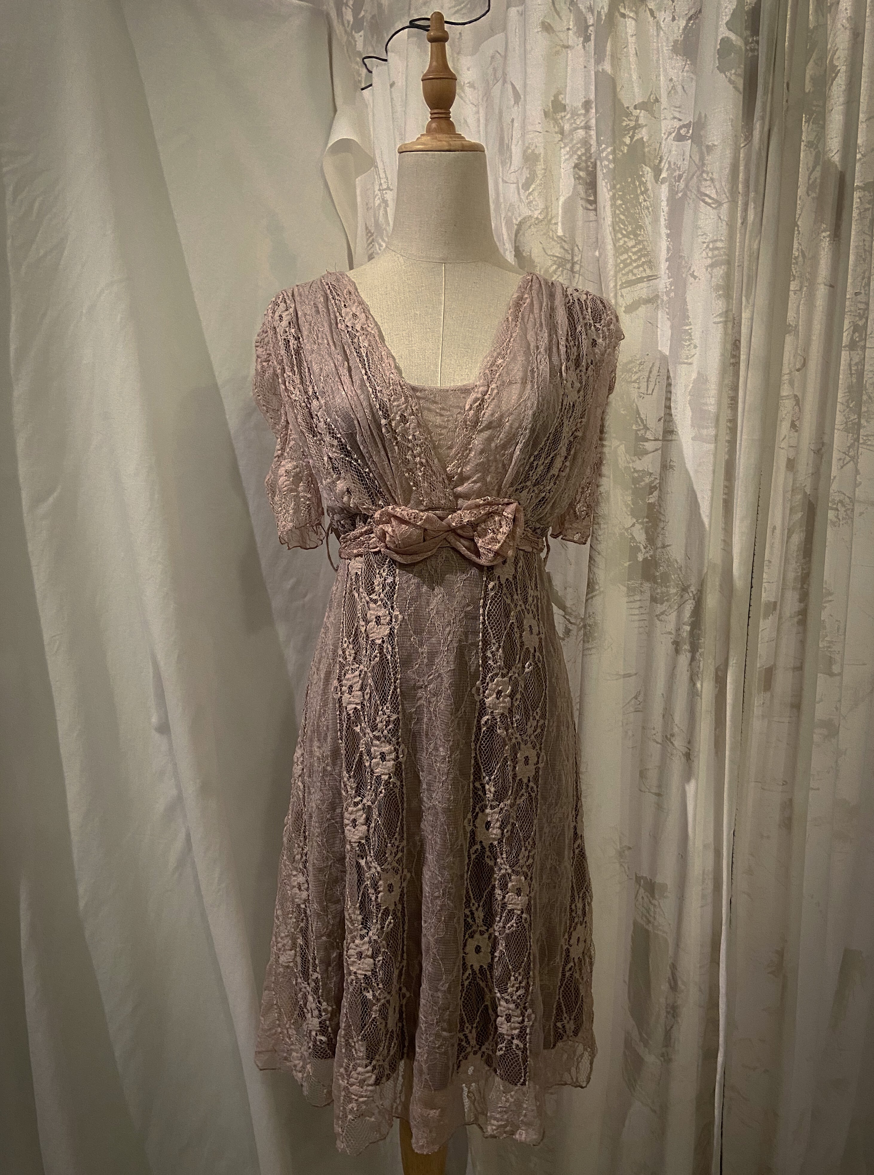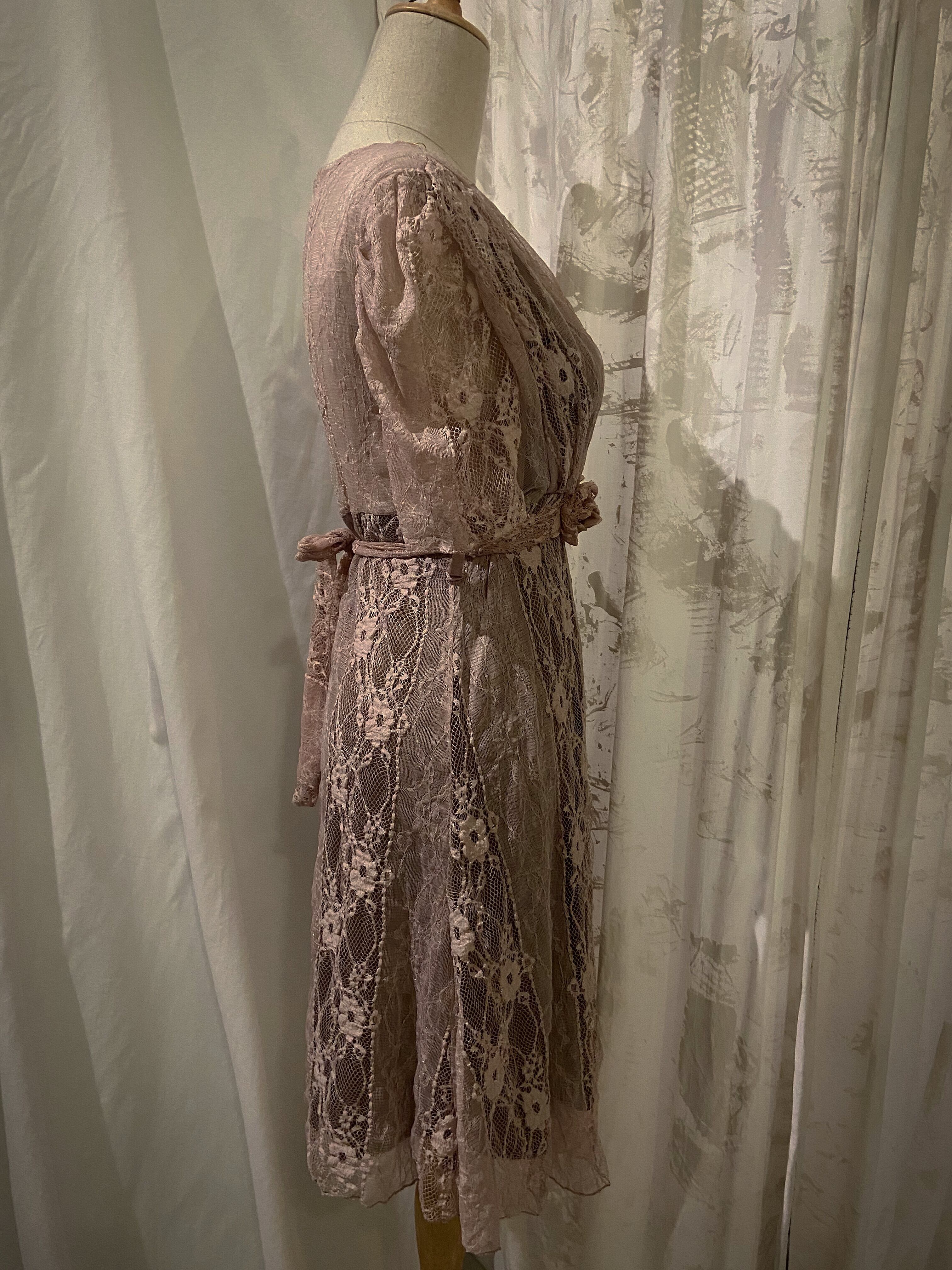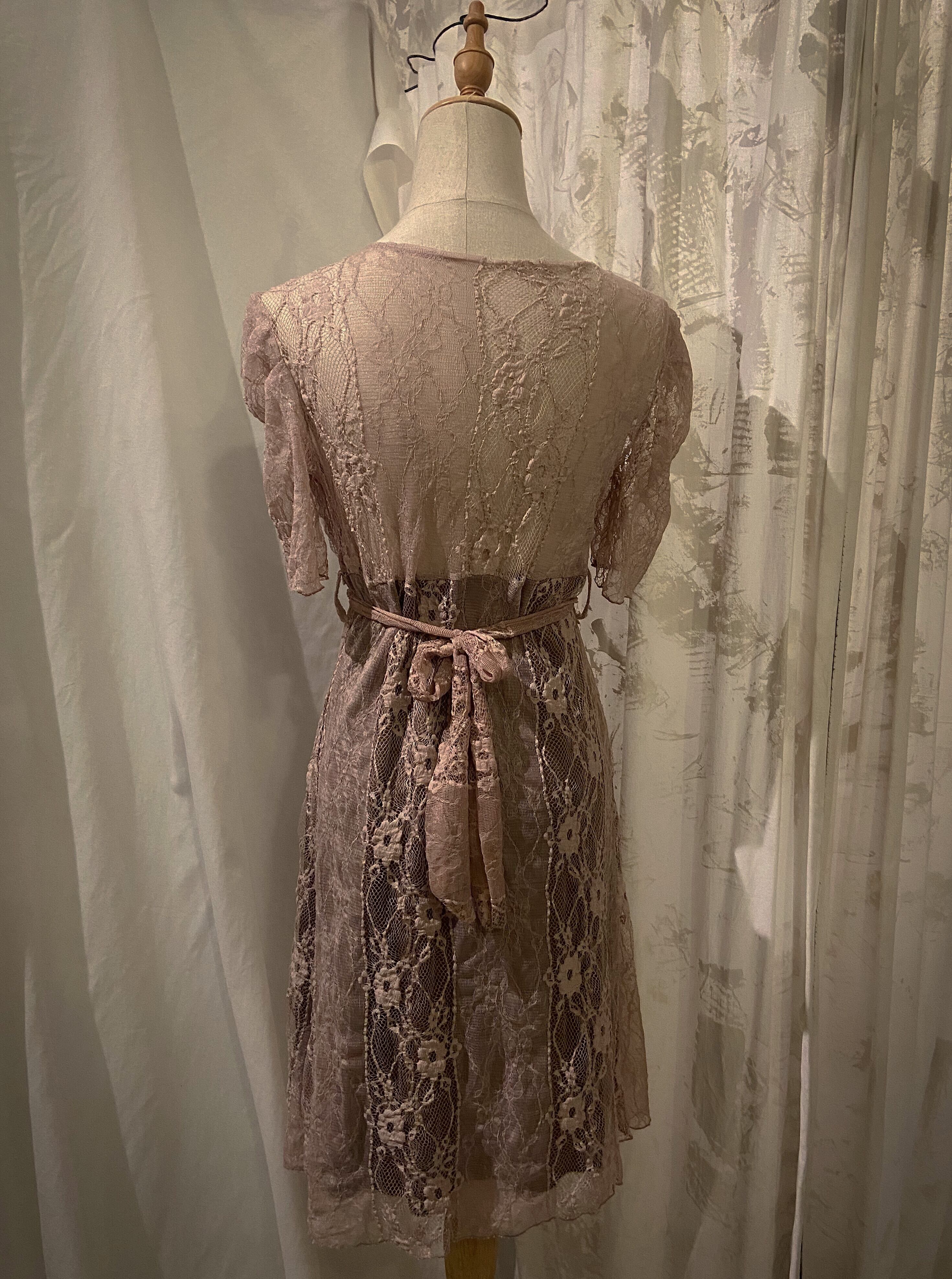 Chiffon Lace Pink Flower Mini Dress