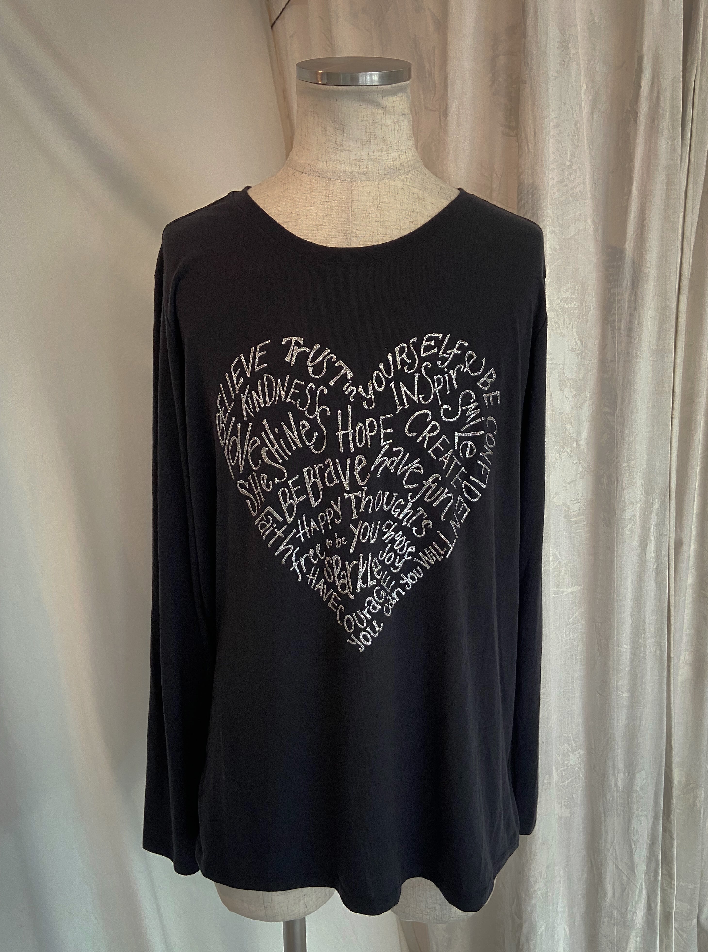 Graphic Silver Heart Long Tee Shirt