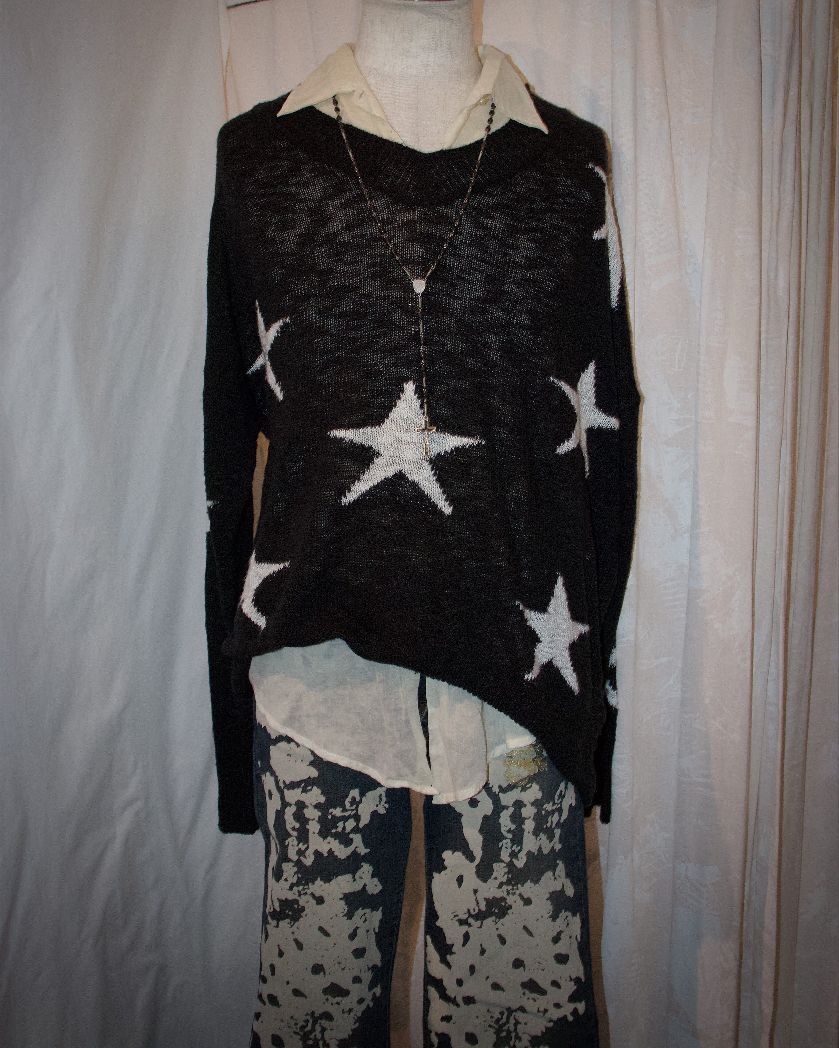Star Vneck Black Knit Long Tee