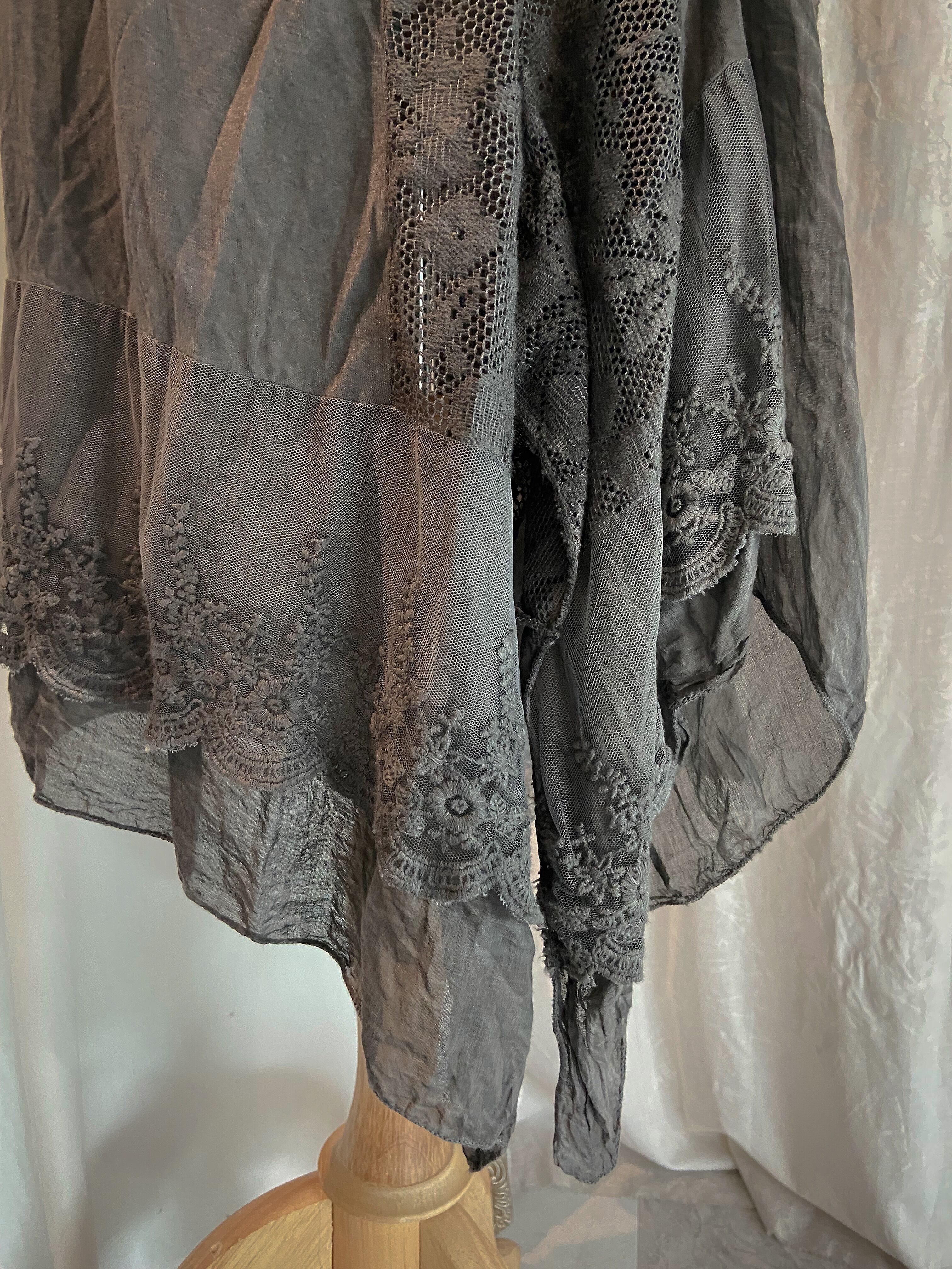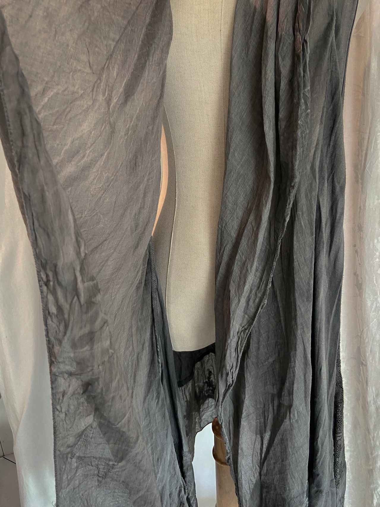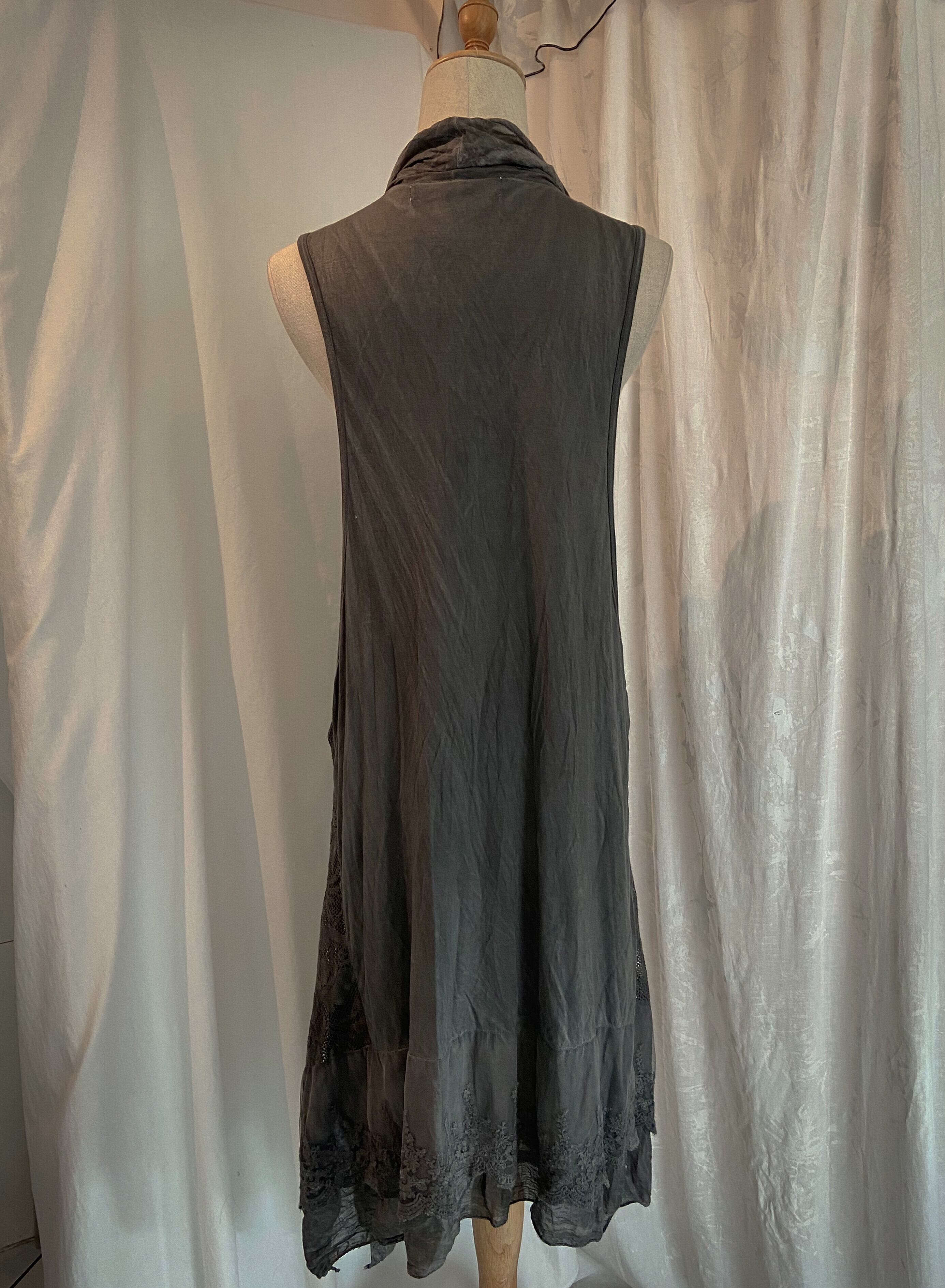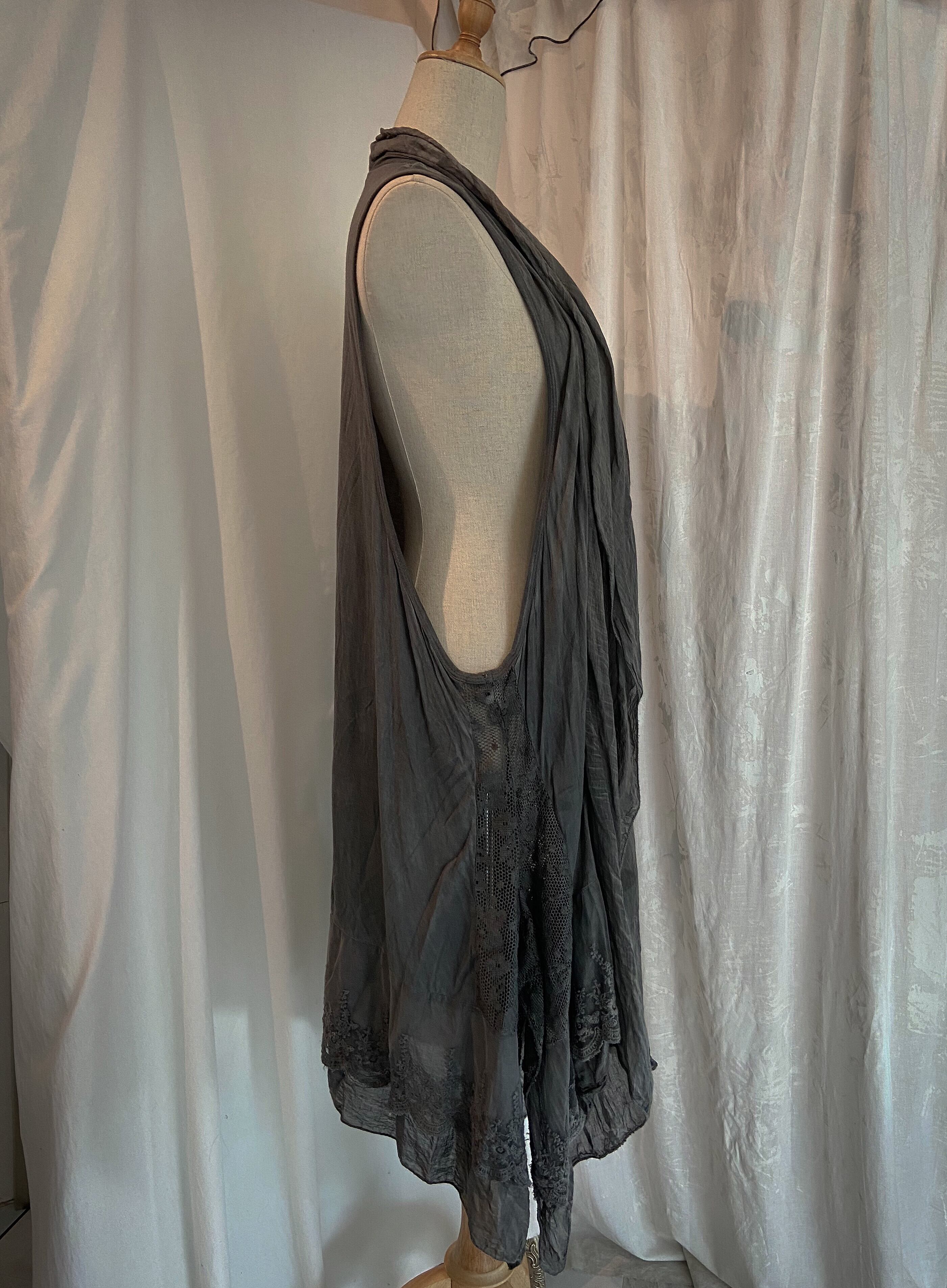 Long Gray Chiffon Lace Hem Vest [NYC]