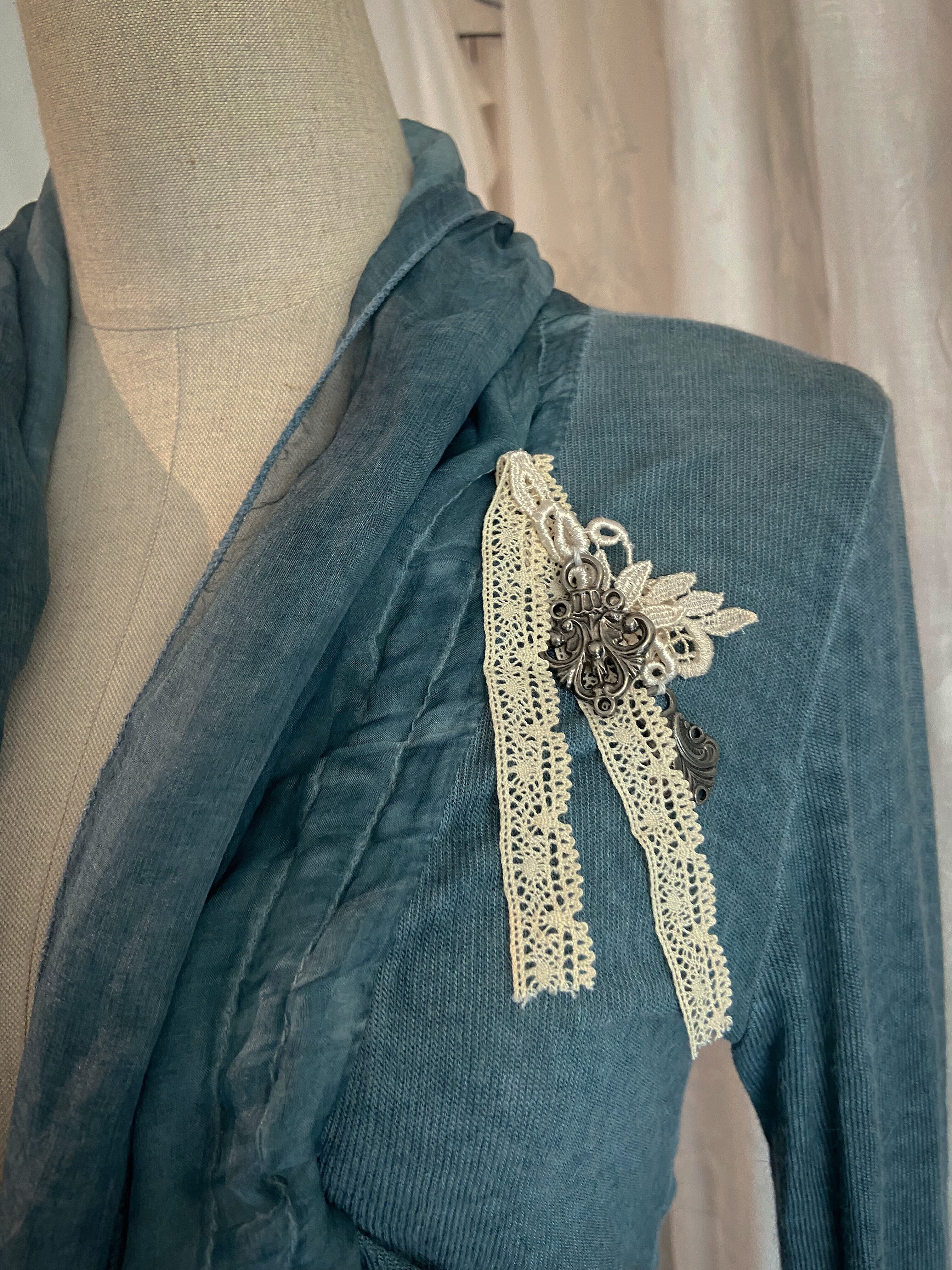 Lake Color Drowstring Corsage Cardigan [Italy]