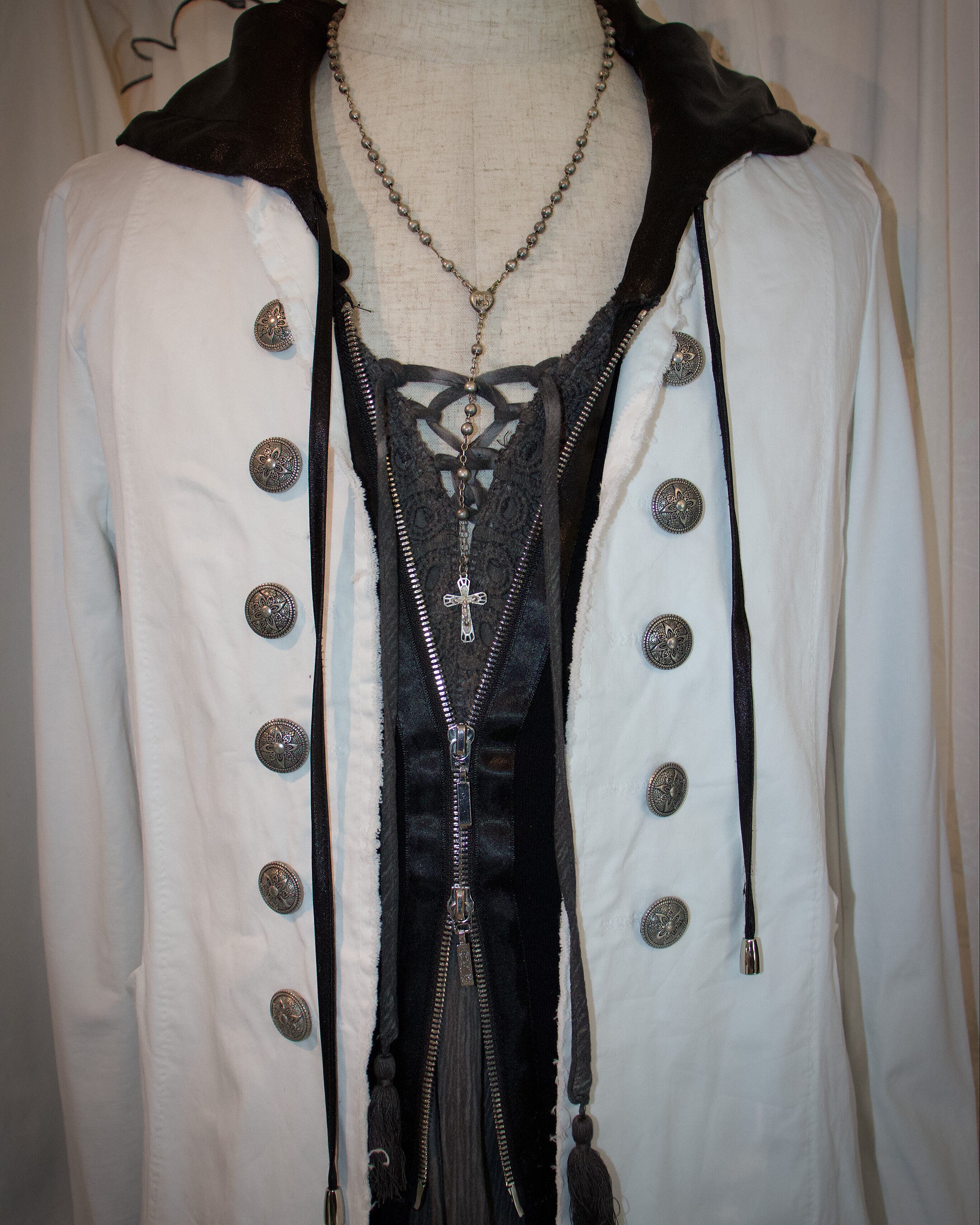 Hood Double Zip Black Long Jacket