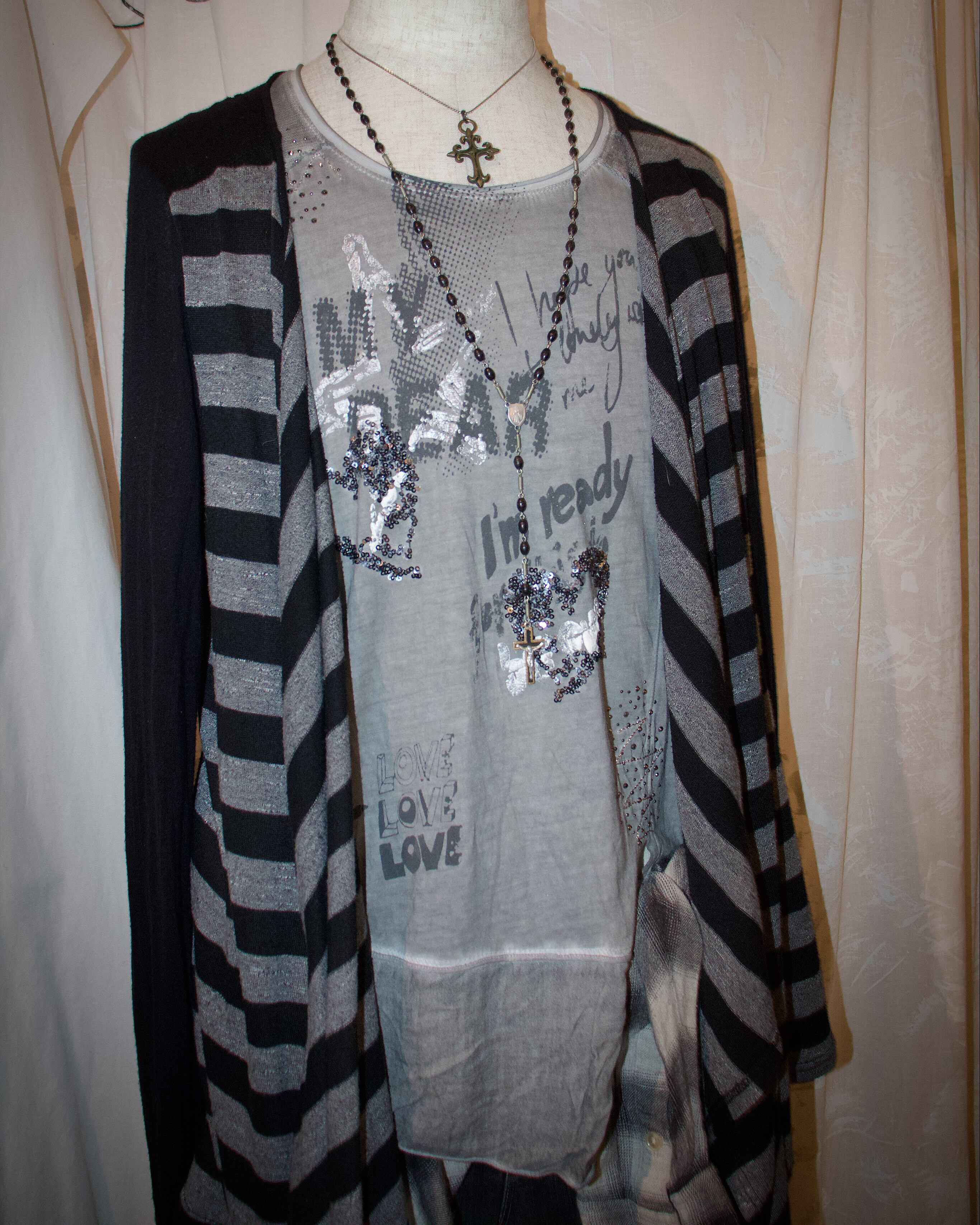 Stripe Drape Asymmetry Cardigan