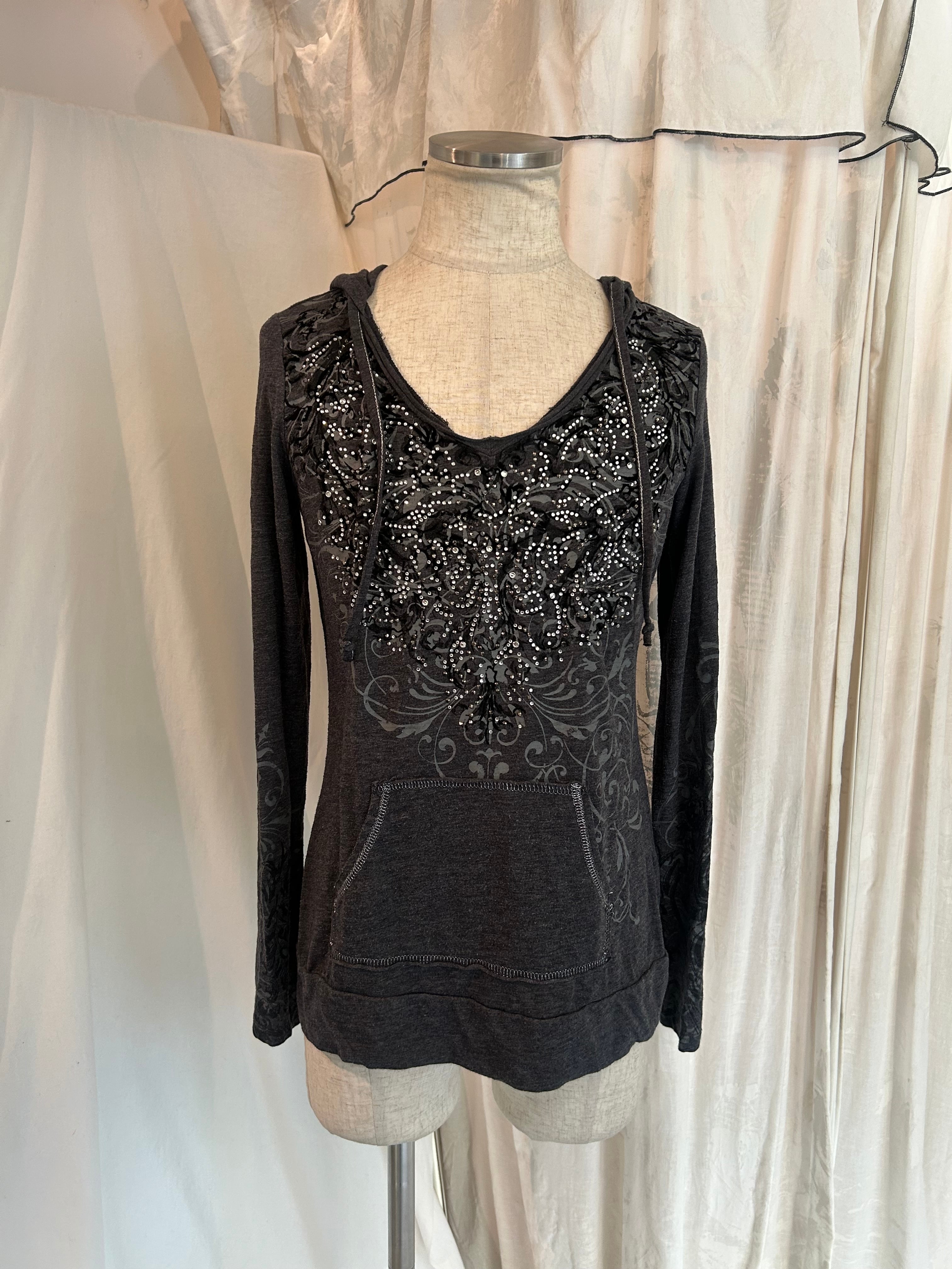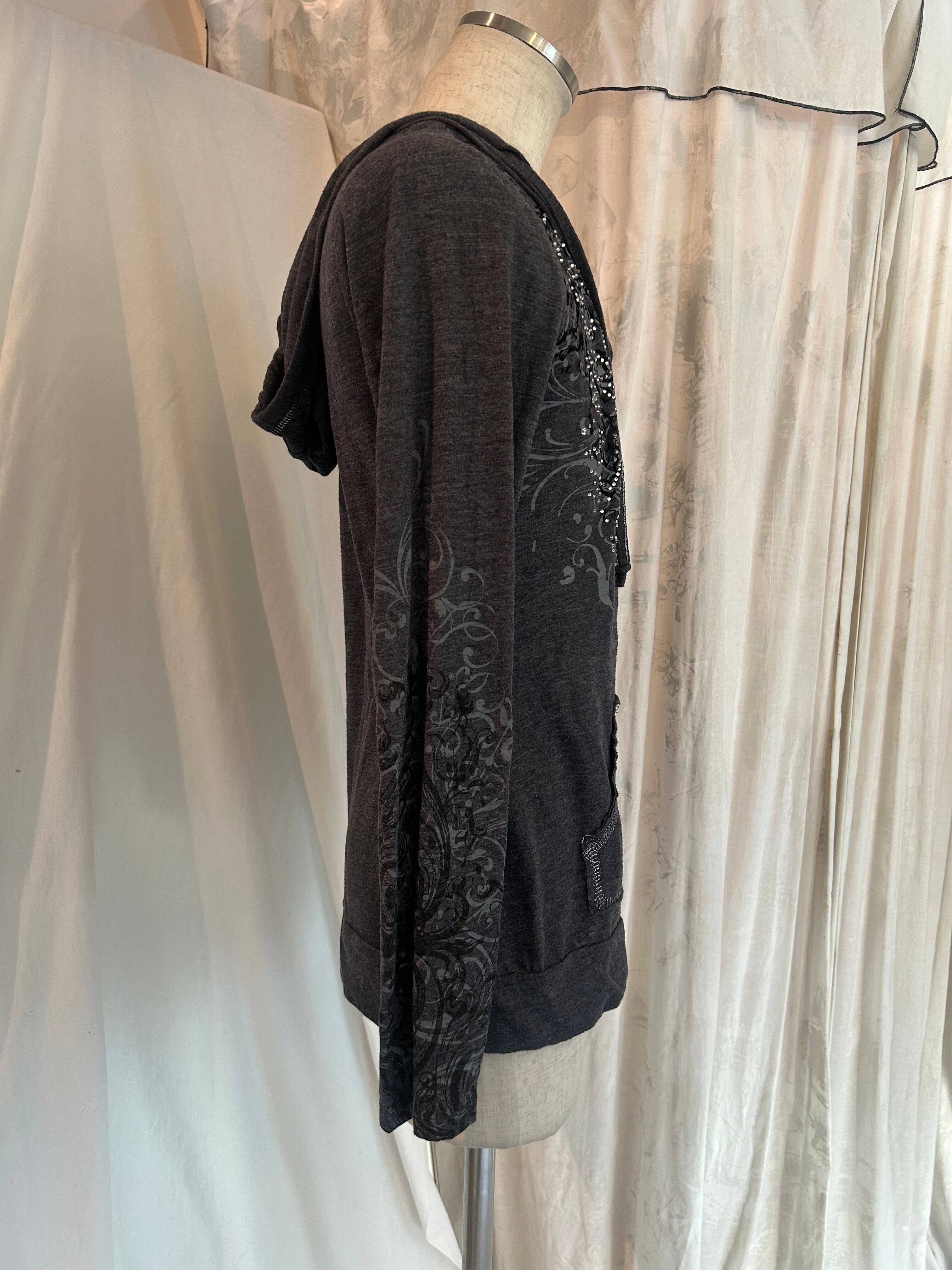 Grunge Design Gray Hood Long Tee