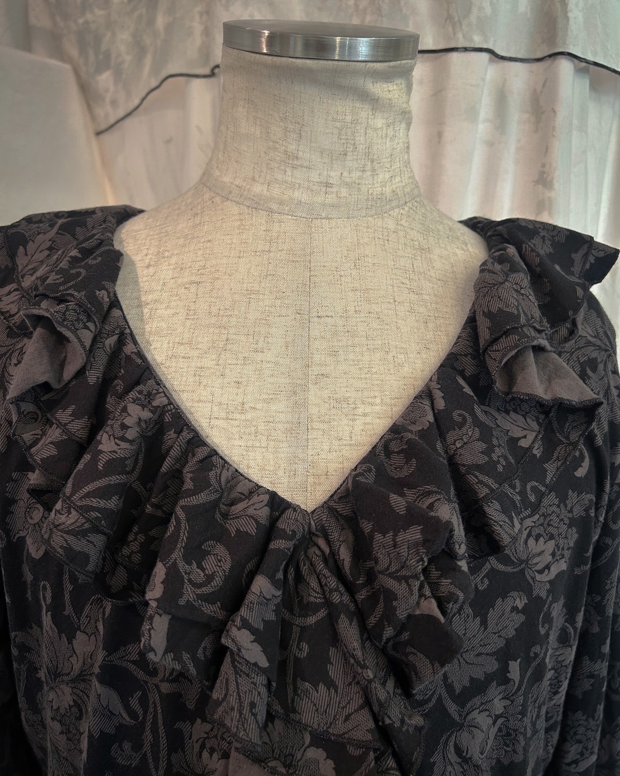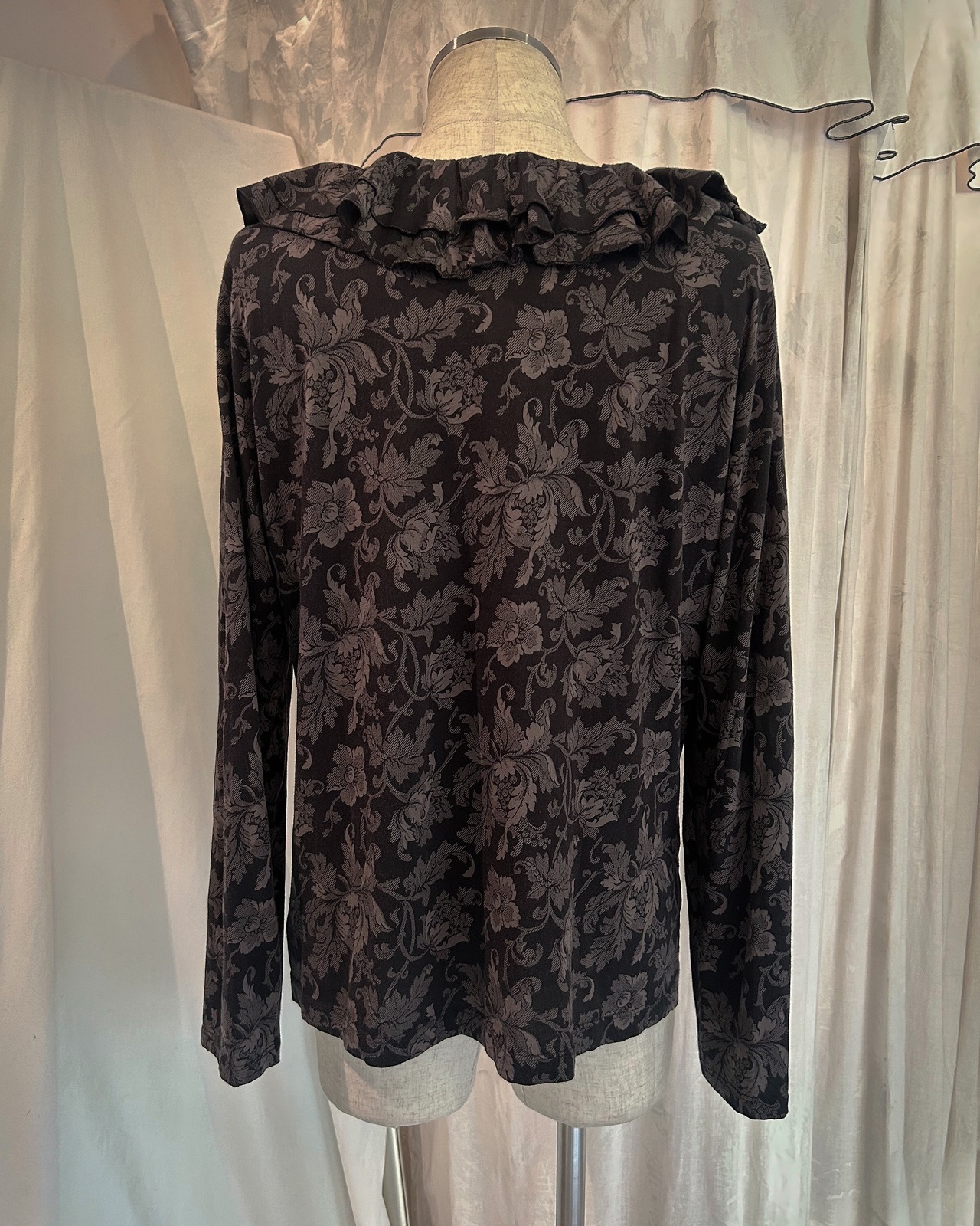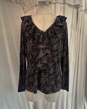Dark Brown Flower Frill Shirt