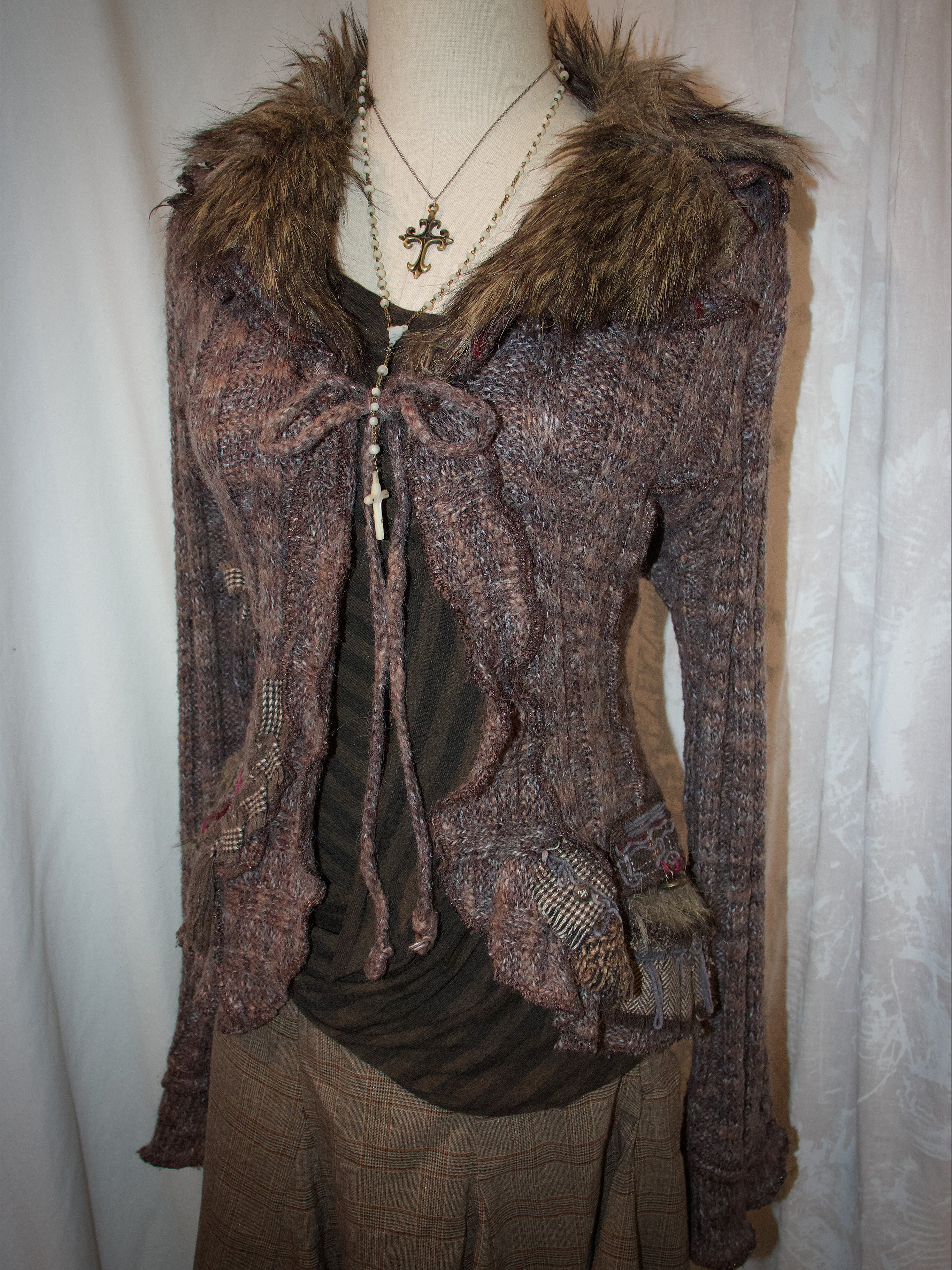LISSA Pink Brown Knit Cardigan