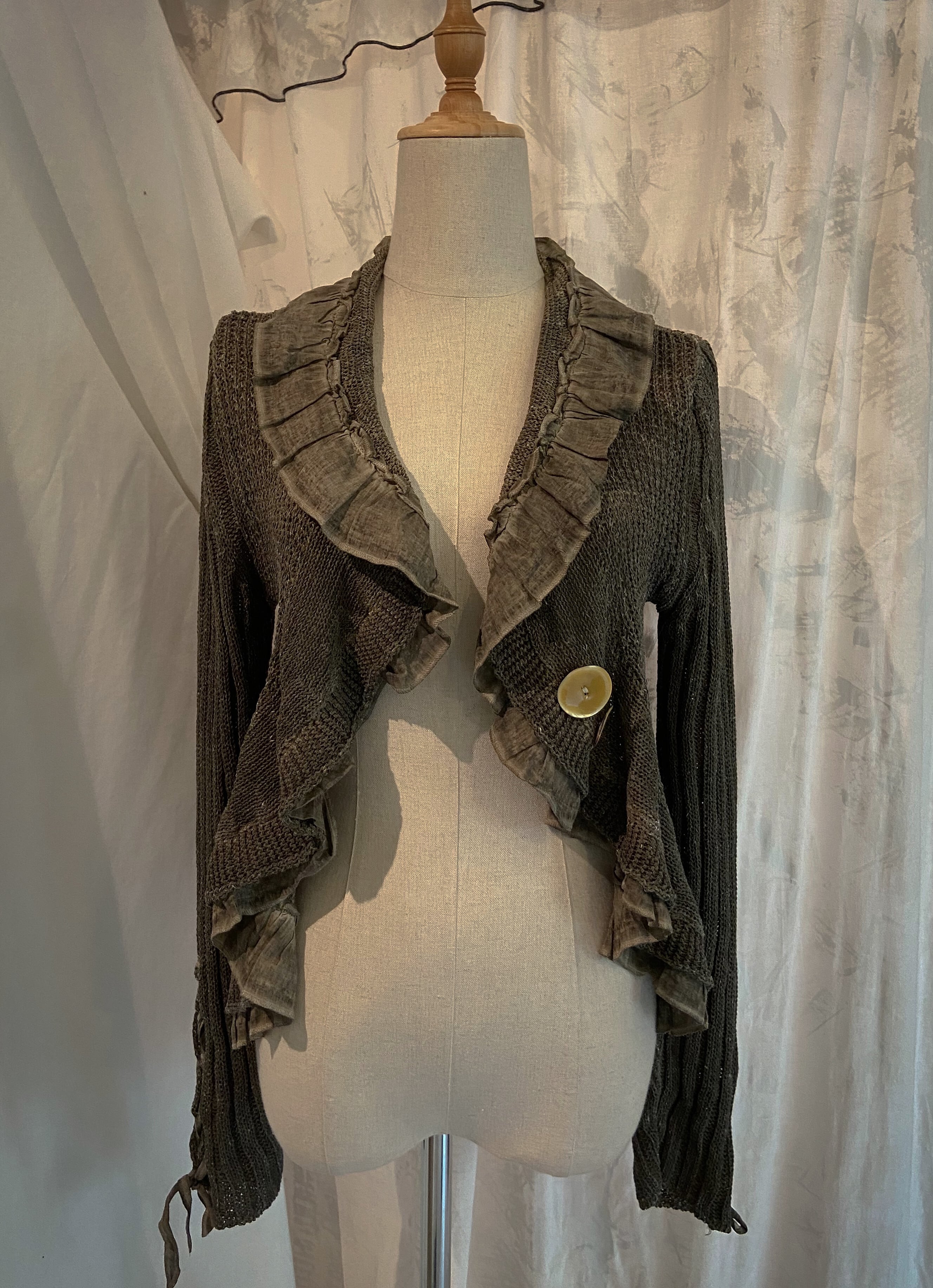 Elsa Cavaletti Khaki Short Knit Cardigan[Italy]