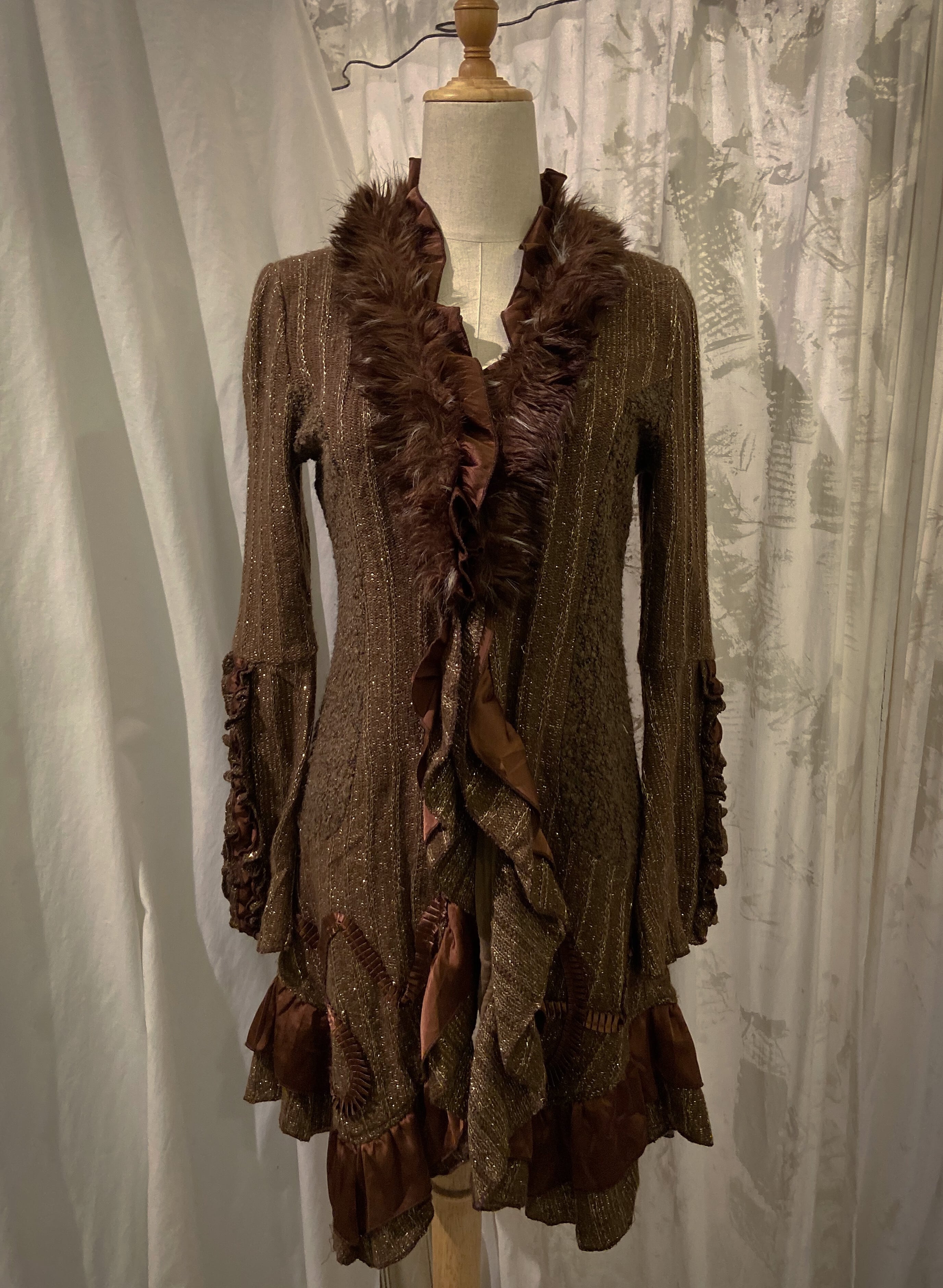 Gold&Brown Frill Knit Cardigan