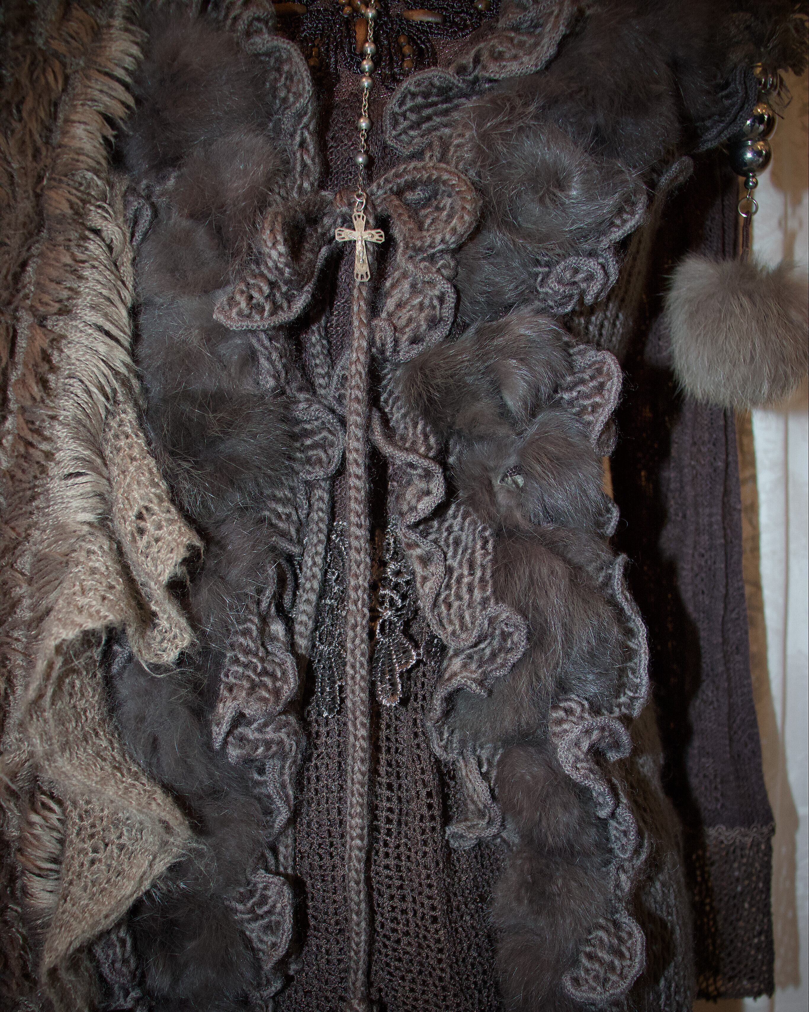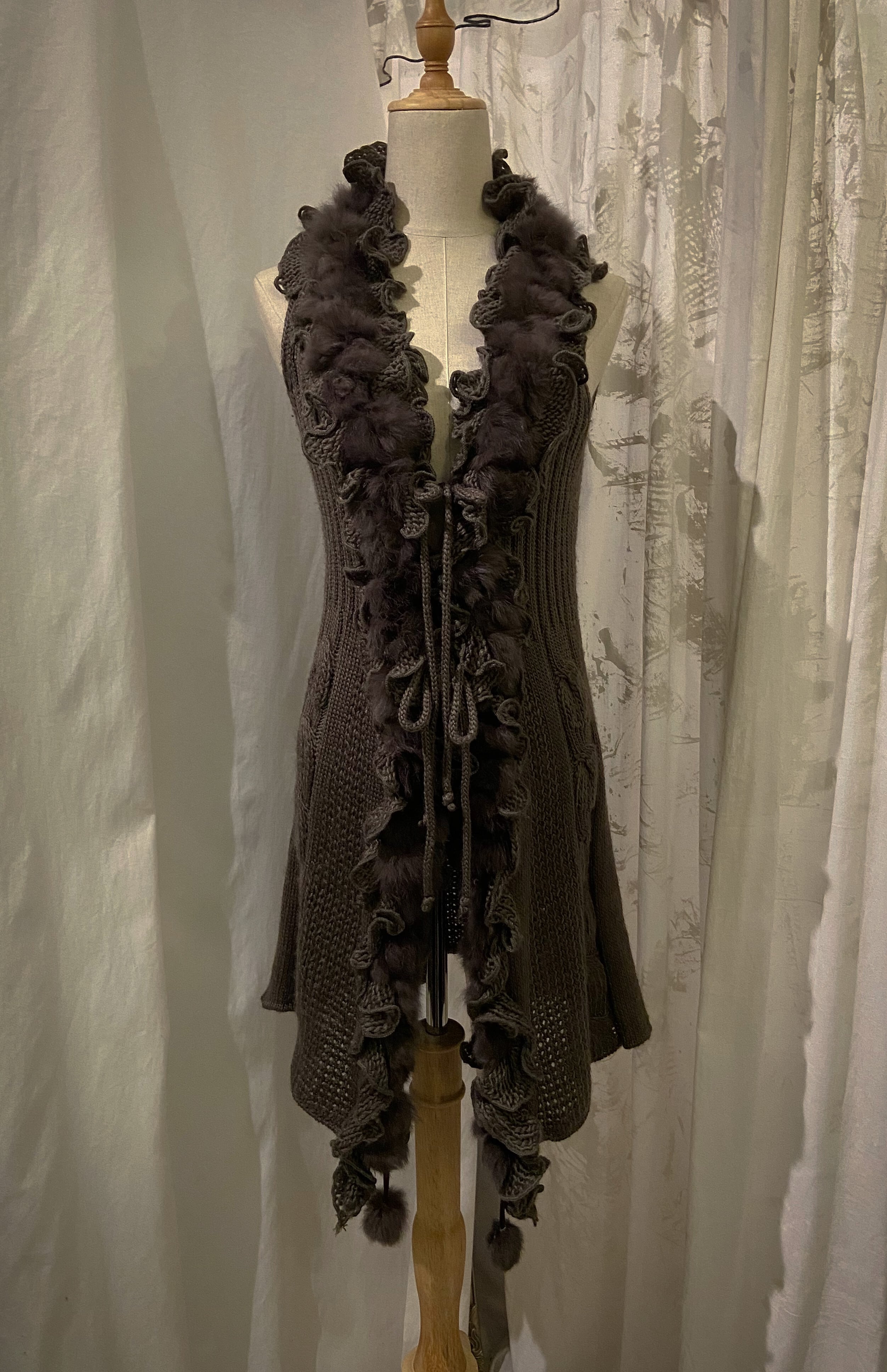Frill Drape Long Knit Vest