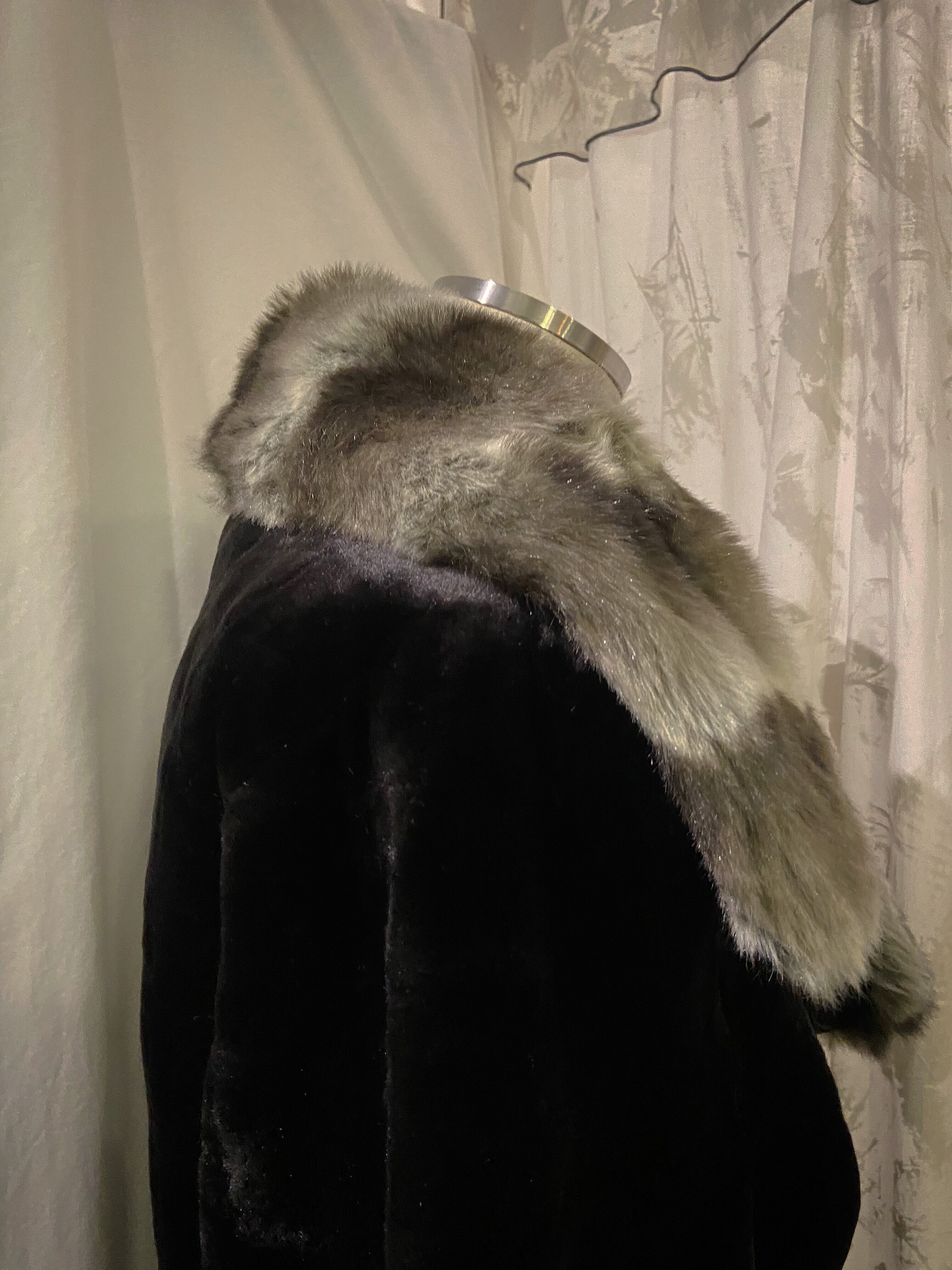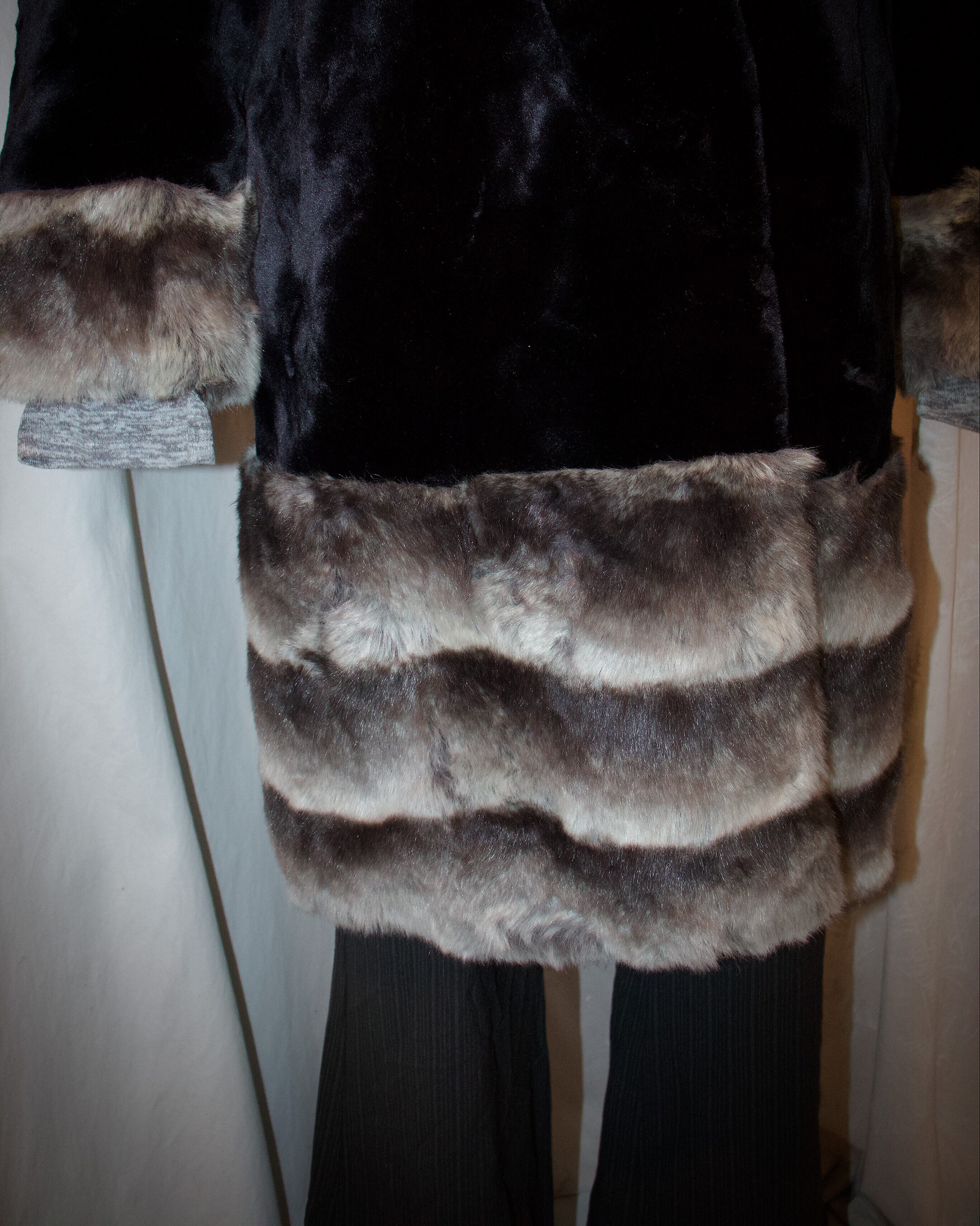Gray Stripe Design Fur Coat