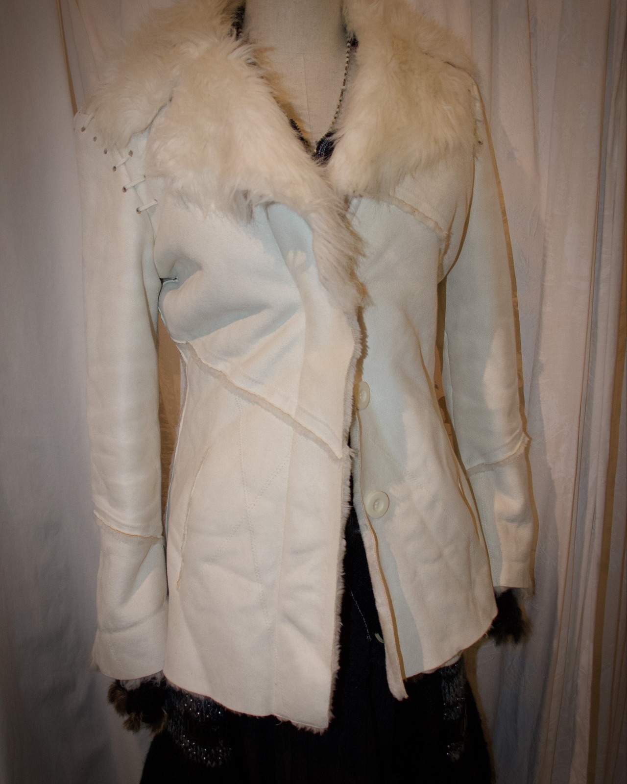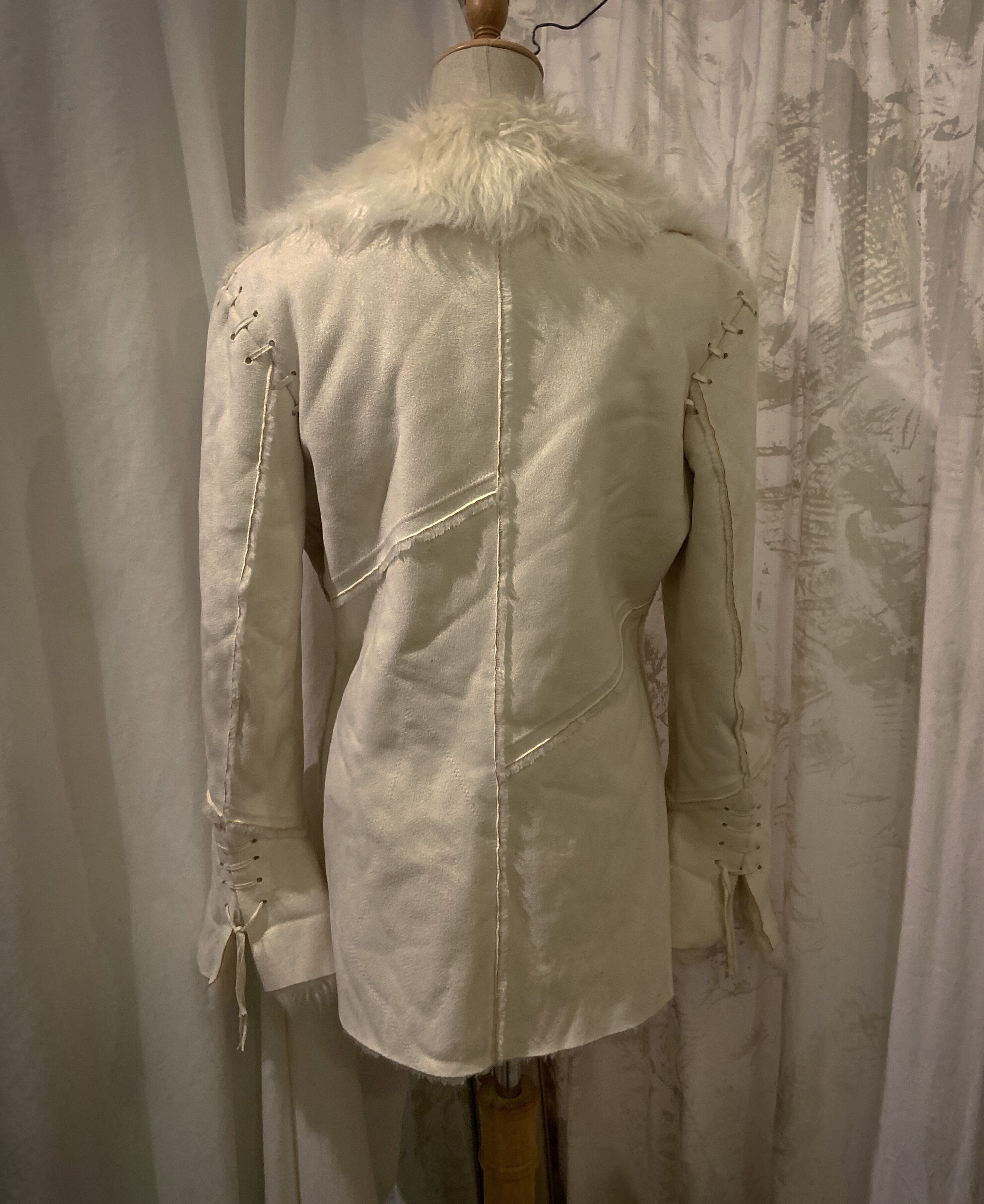 White Fur Lace Up Design Jacket