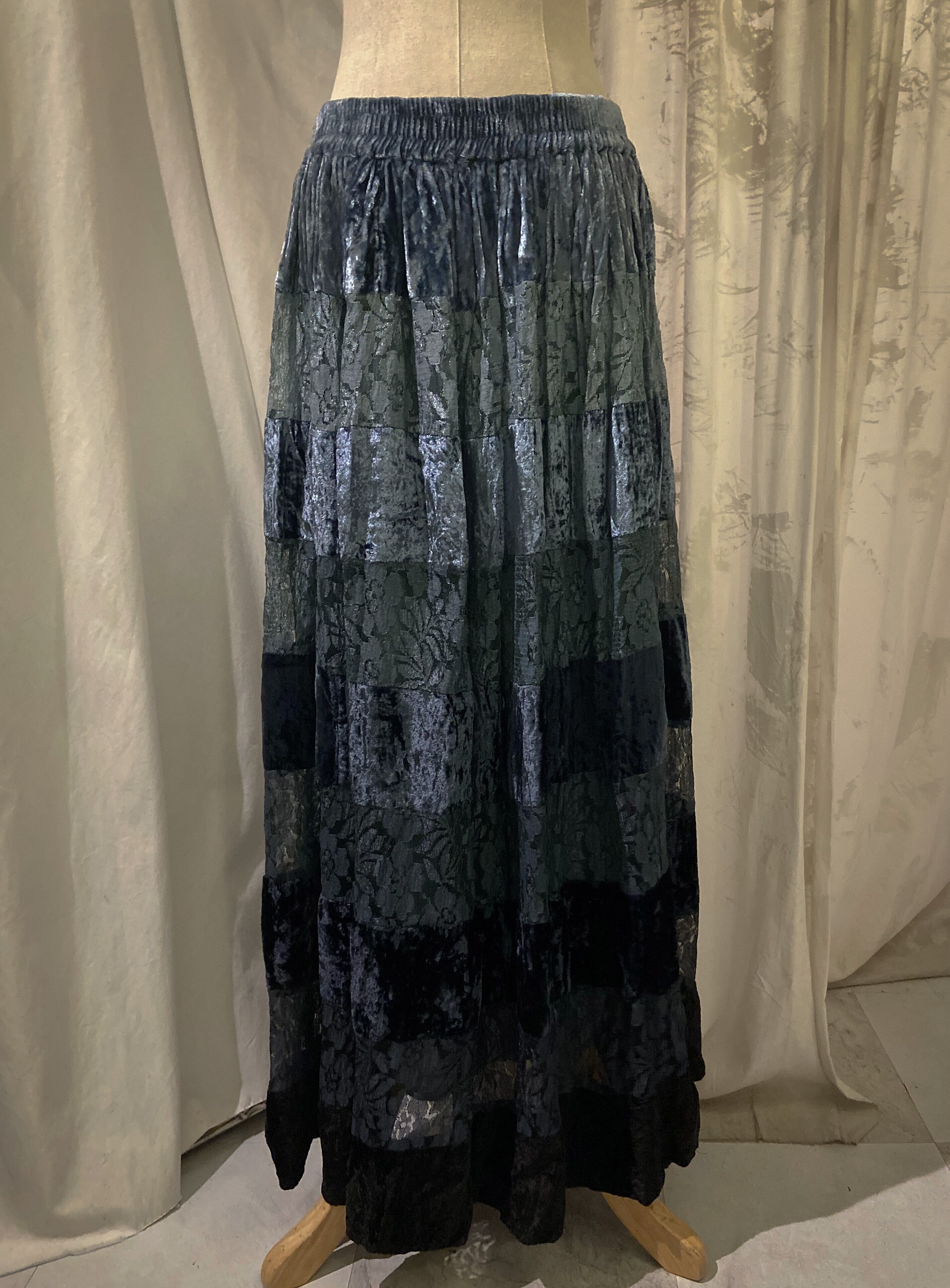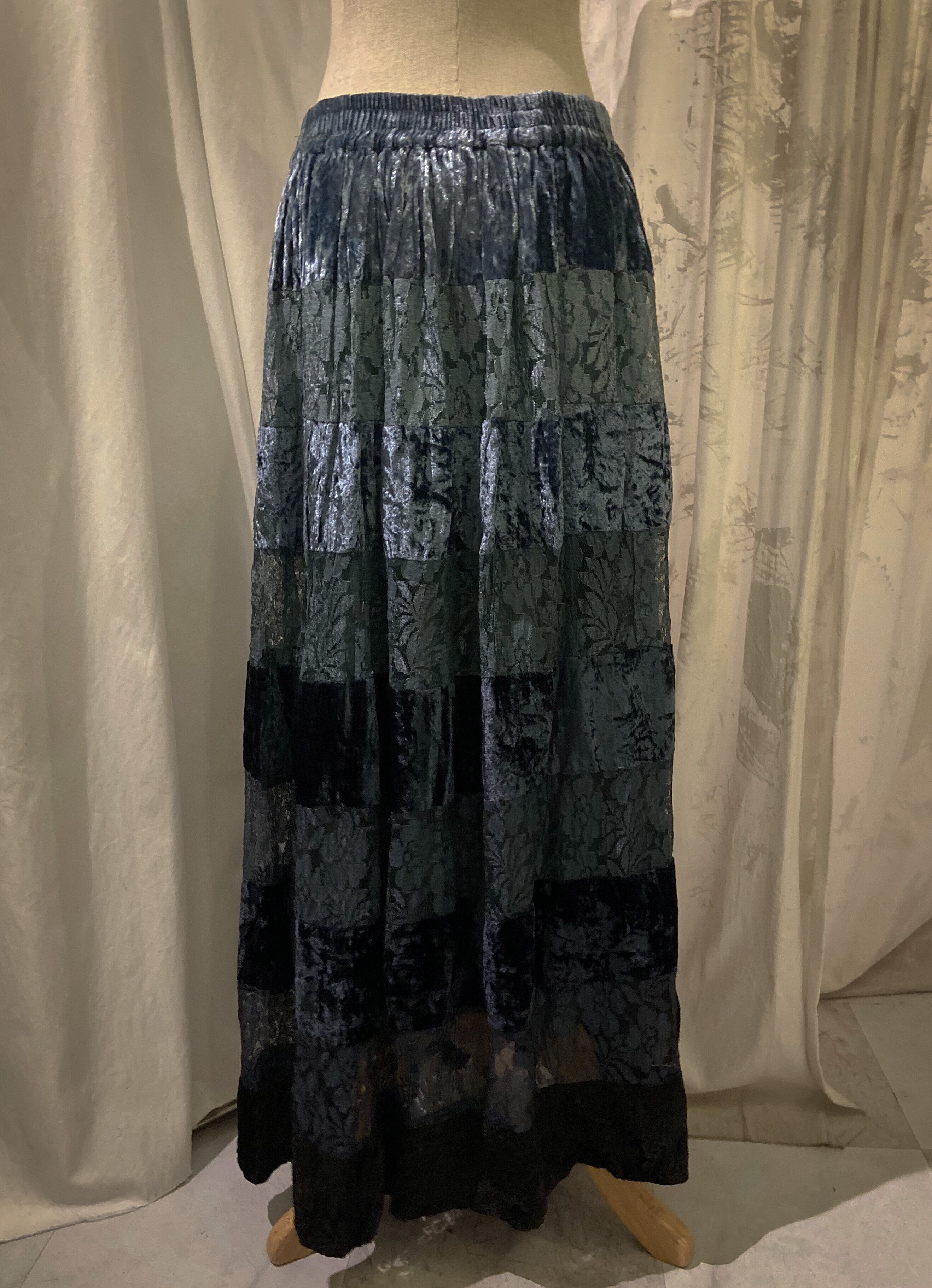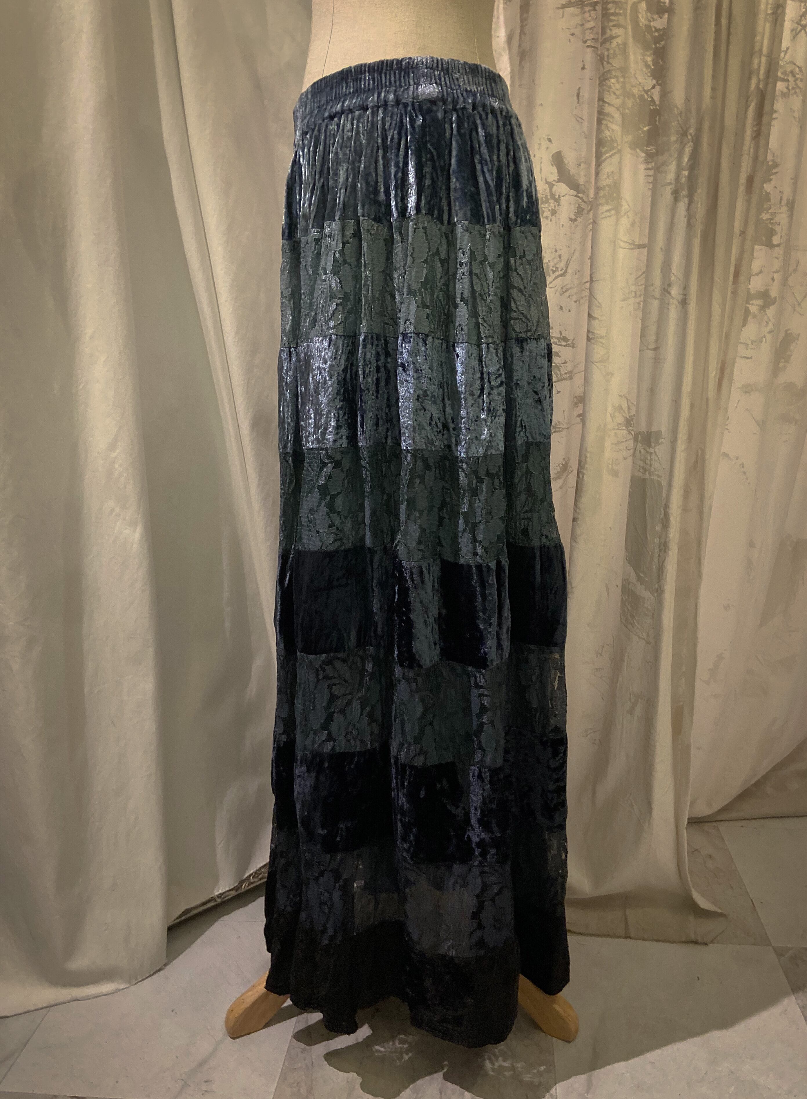 Gradation Ocean Blue Long Velour Skirt