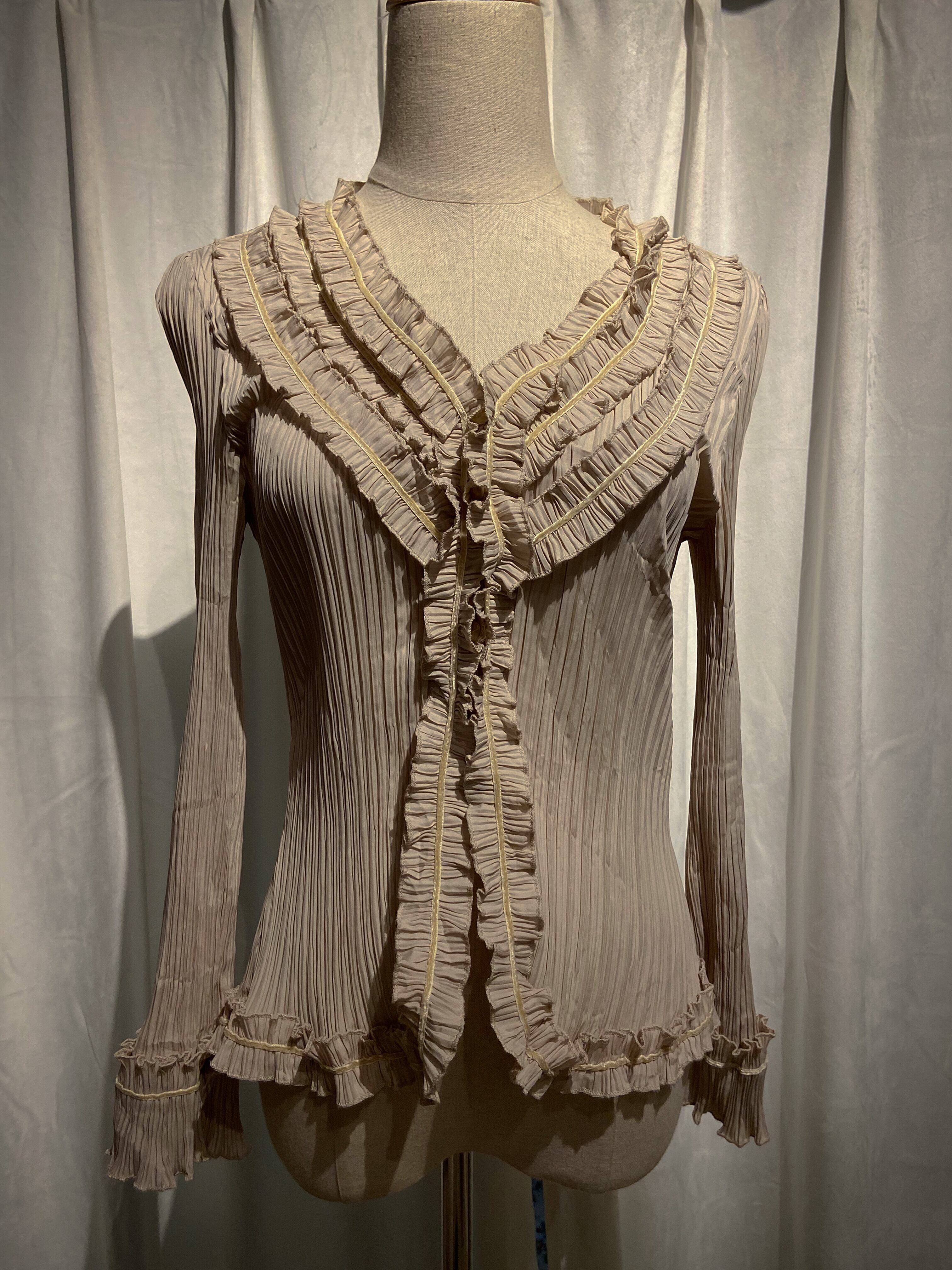 Beige Rippled Ruffle Blouse