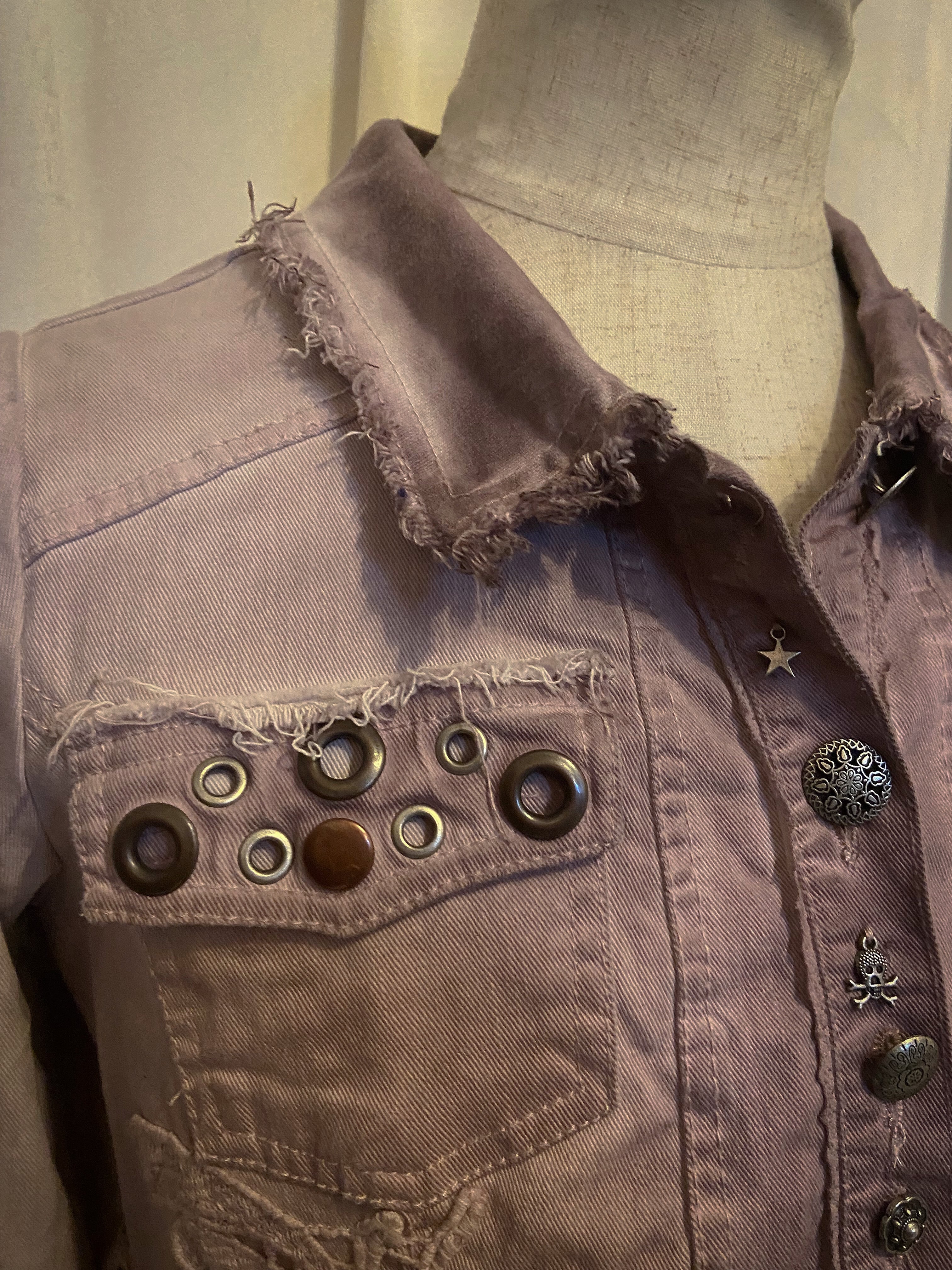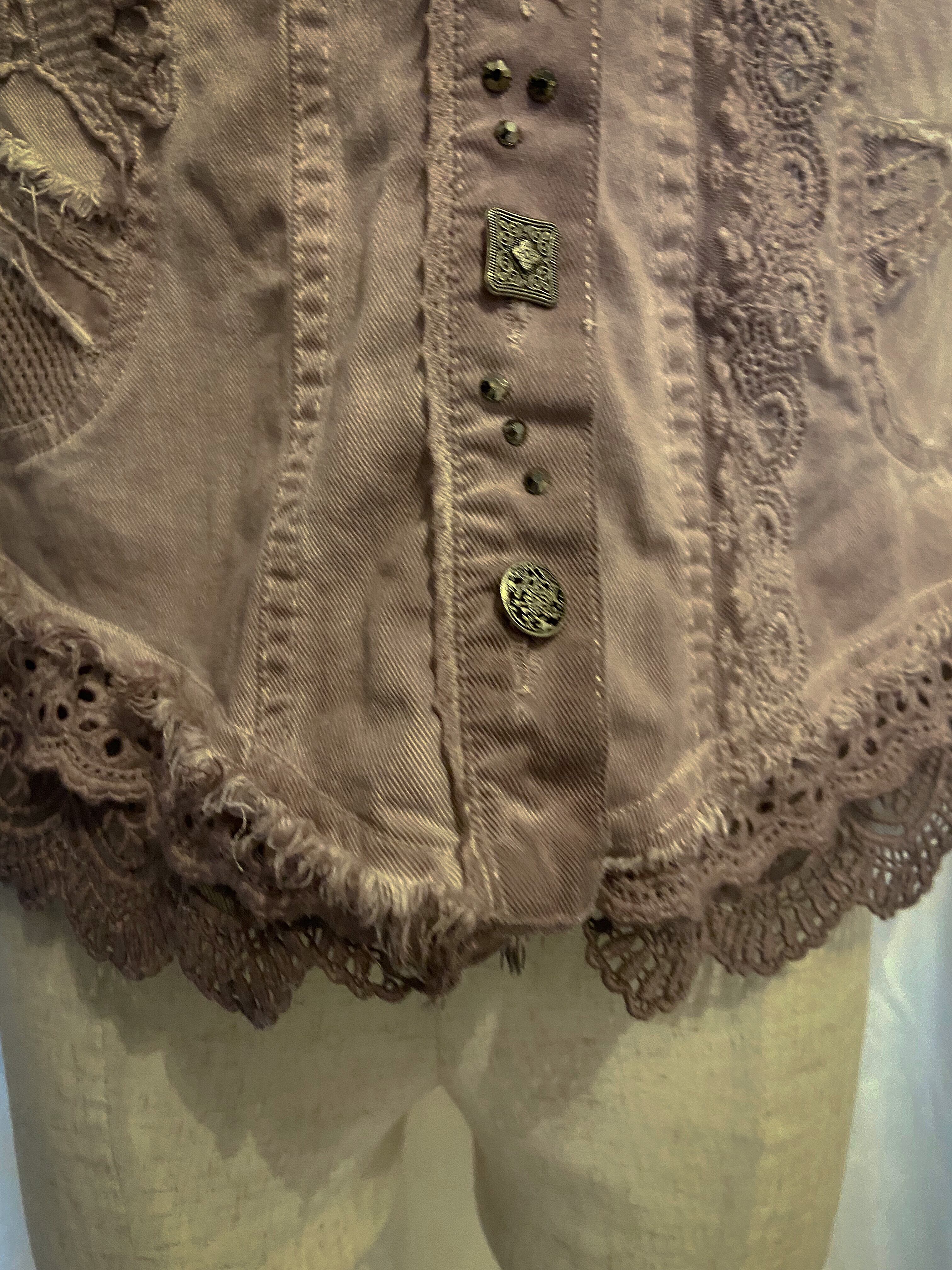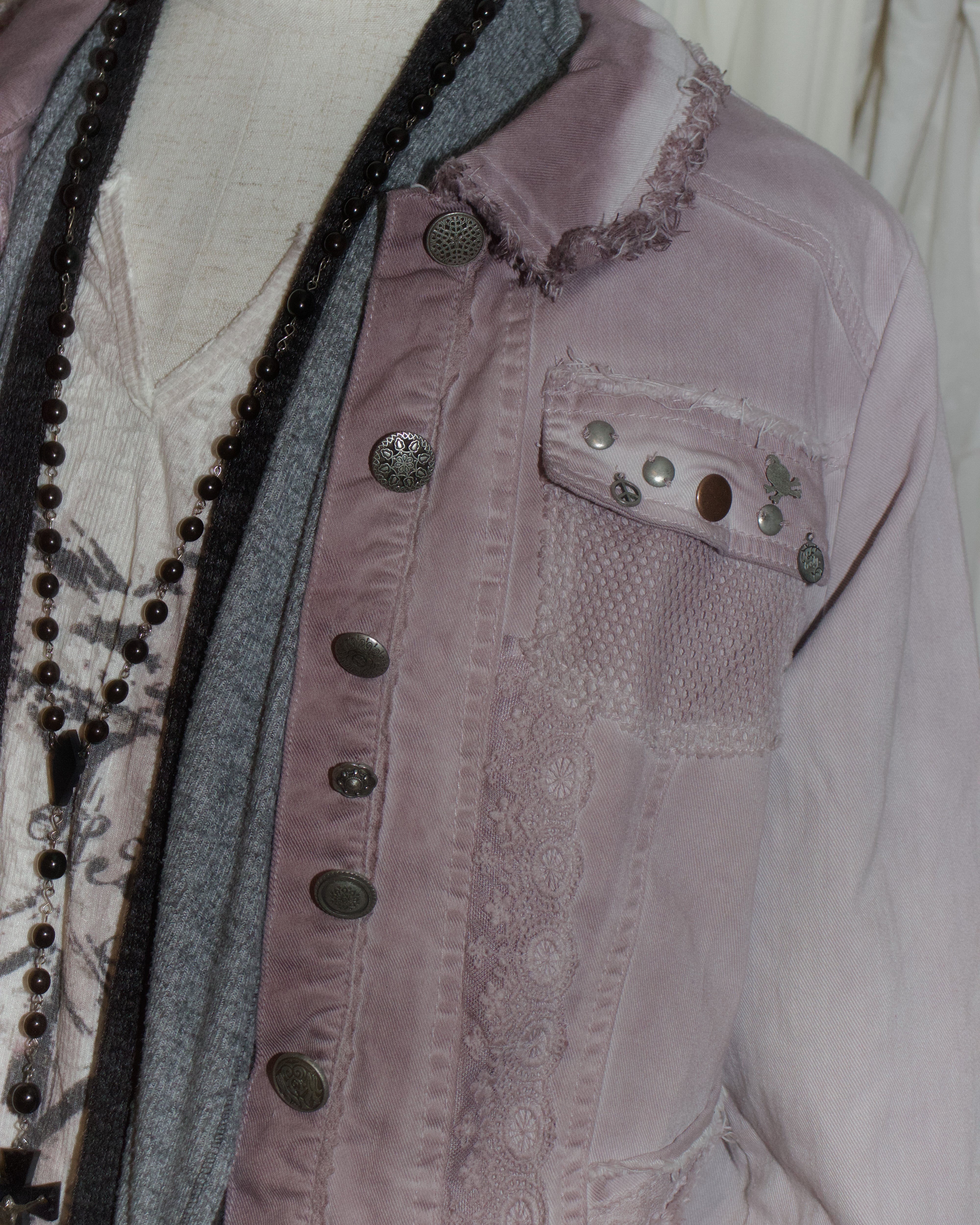 Pink Denim Different Buttons Flare Hem Jacket