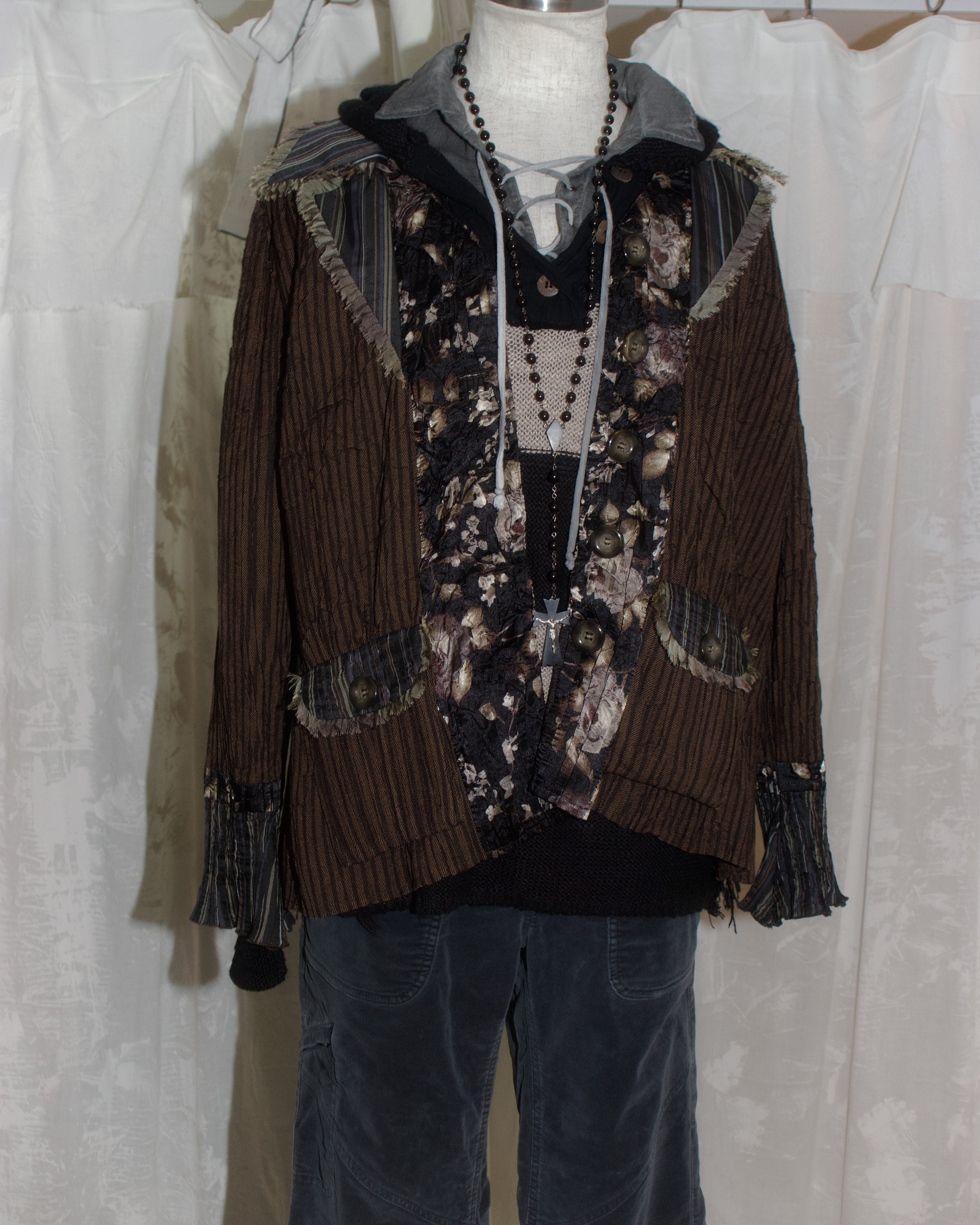 Alberto Makali Brown Flower Wrinkle Jacket