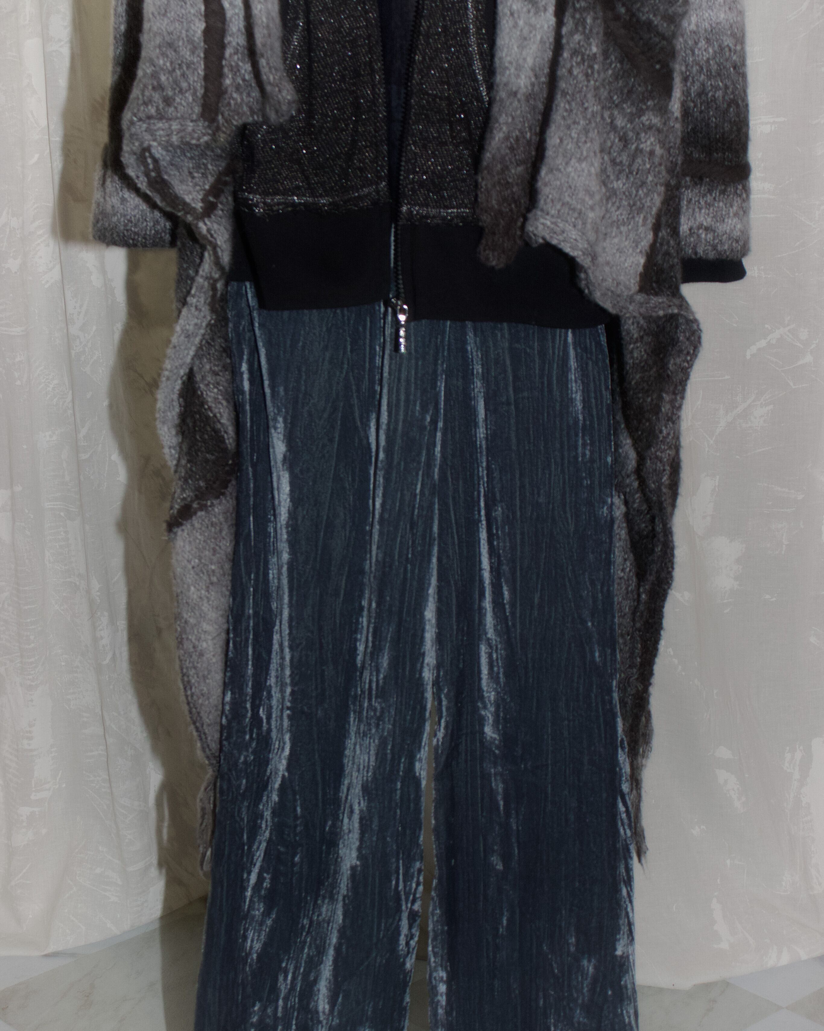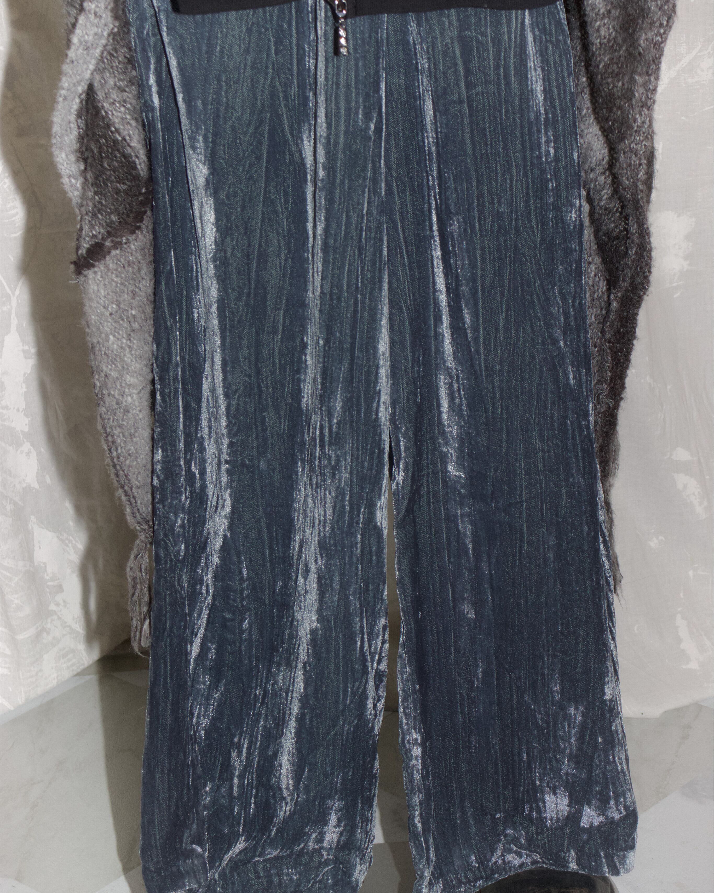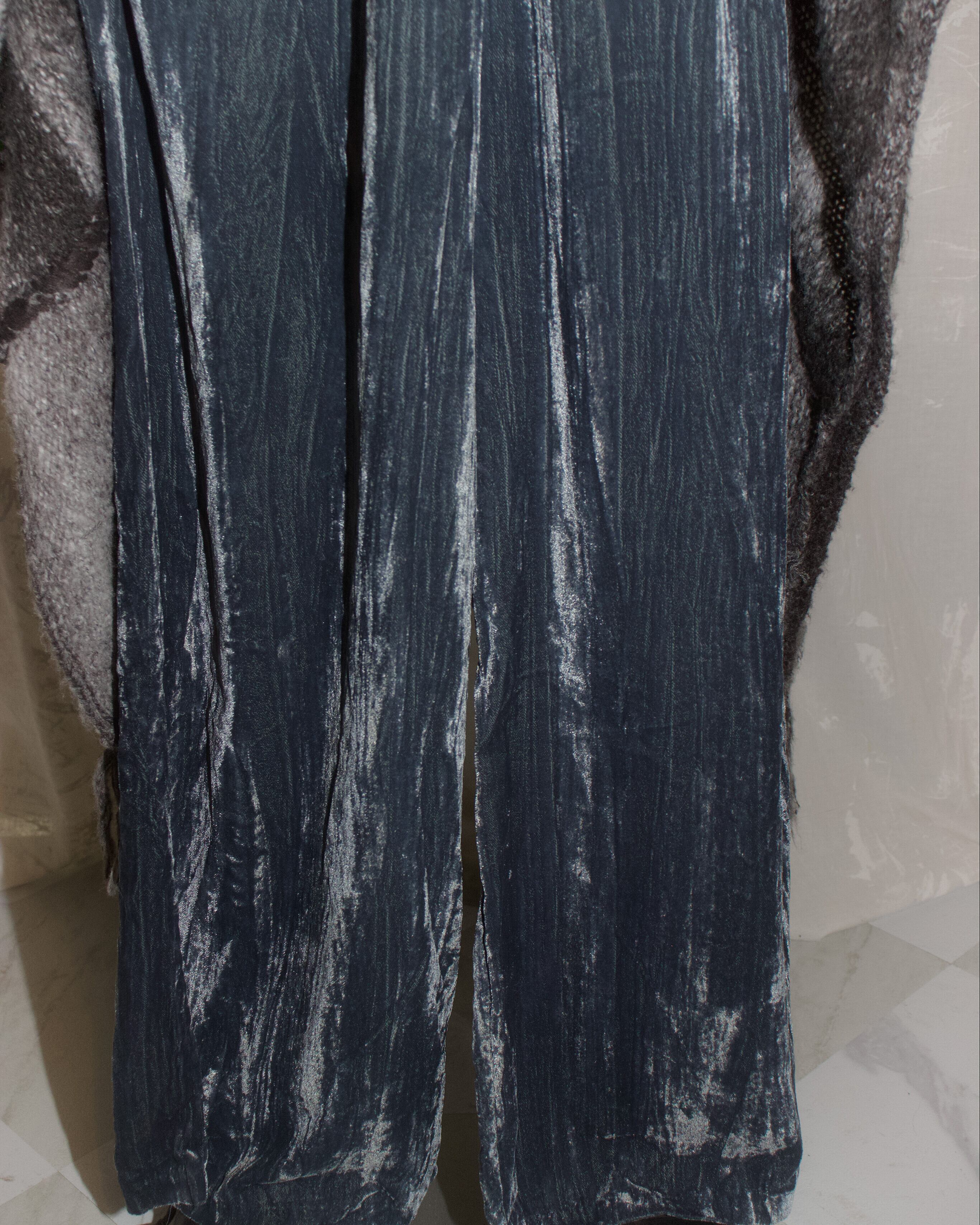 Blue Velour Loosely Long Pants