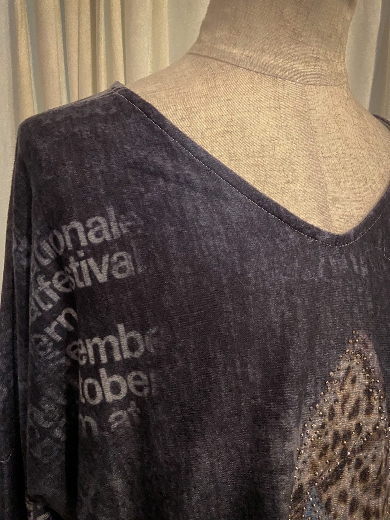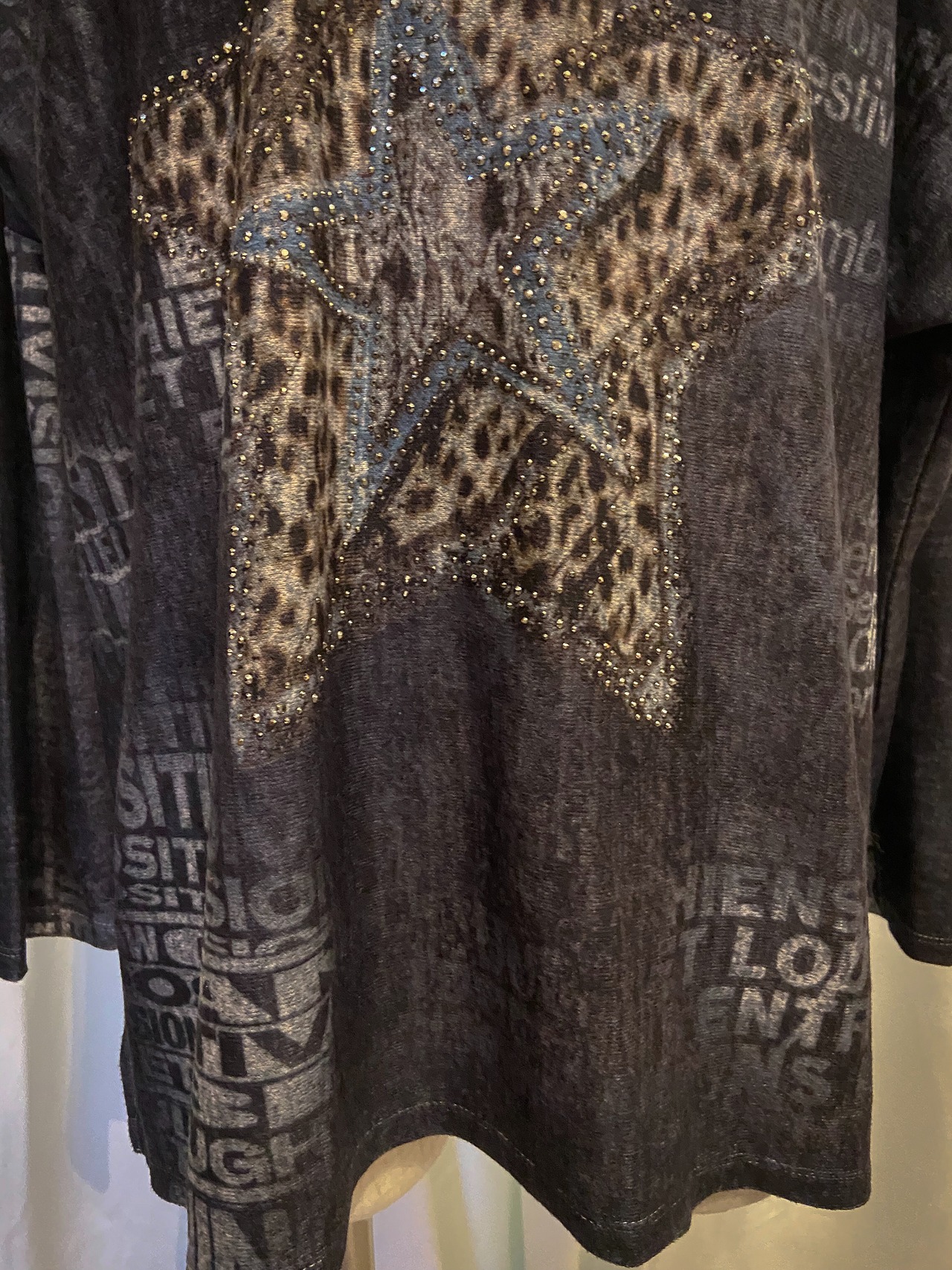 Star Leopard Blue Vneck Long Tee
