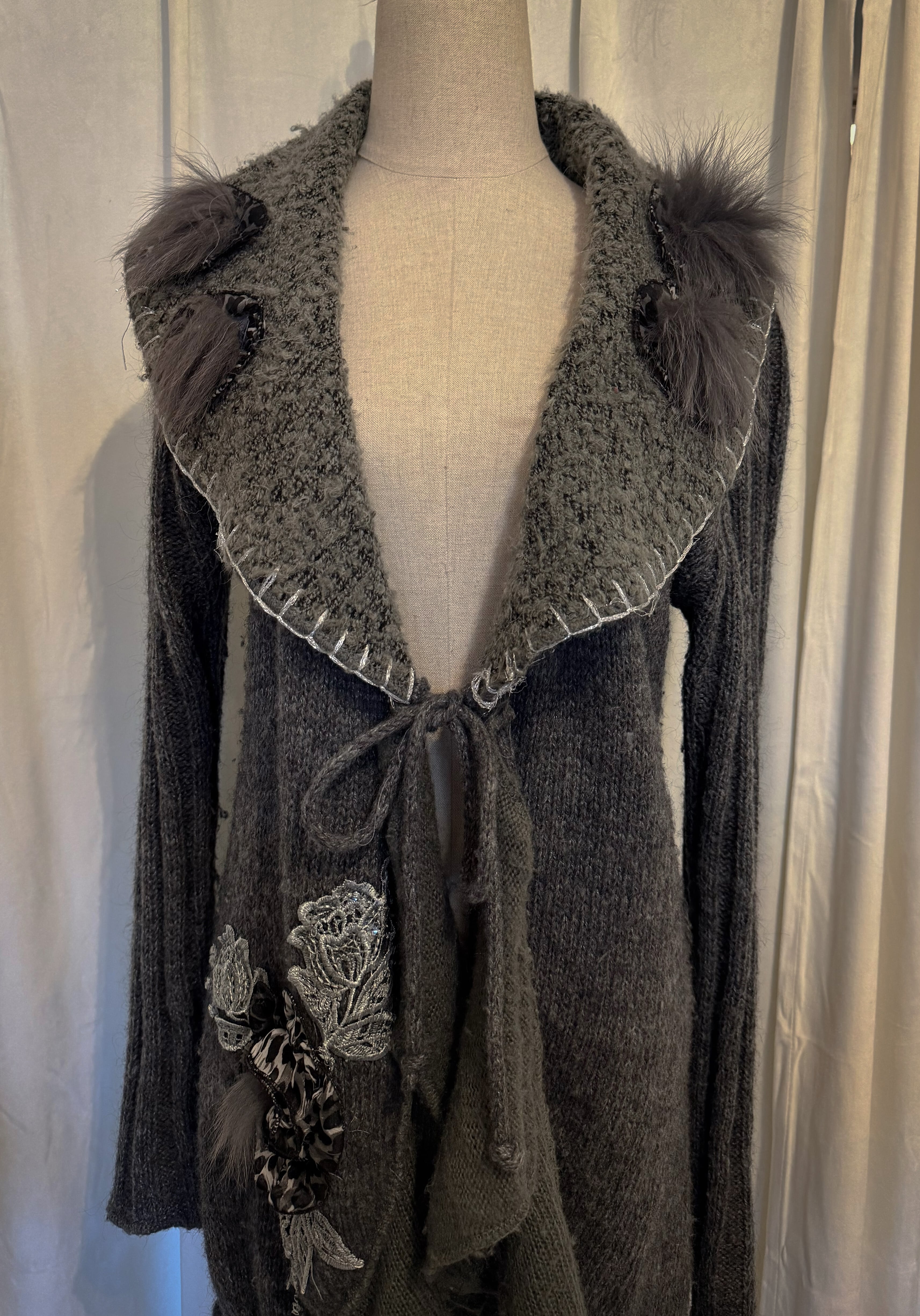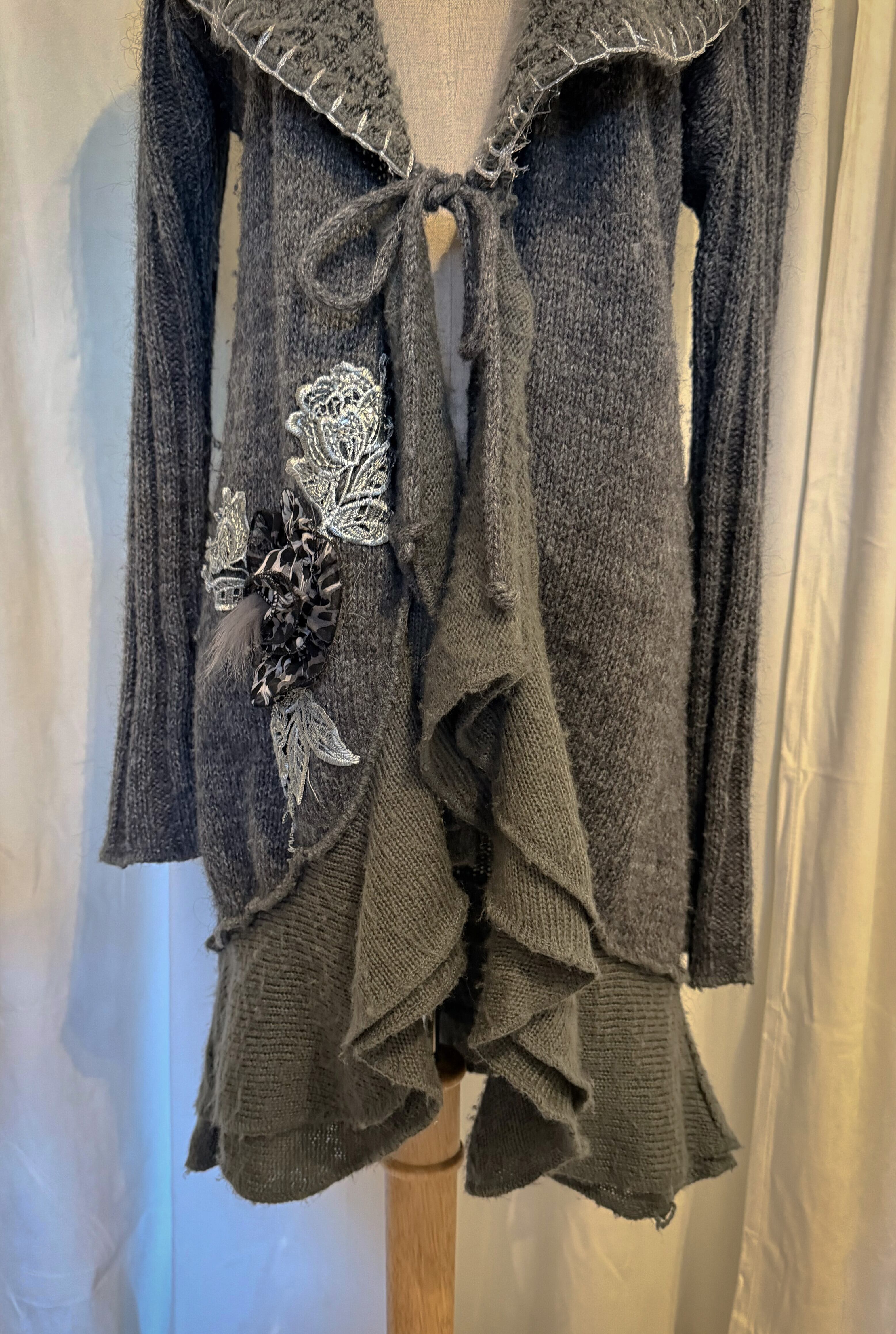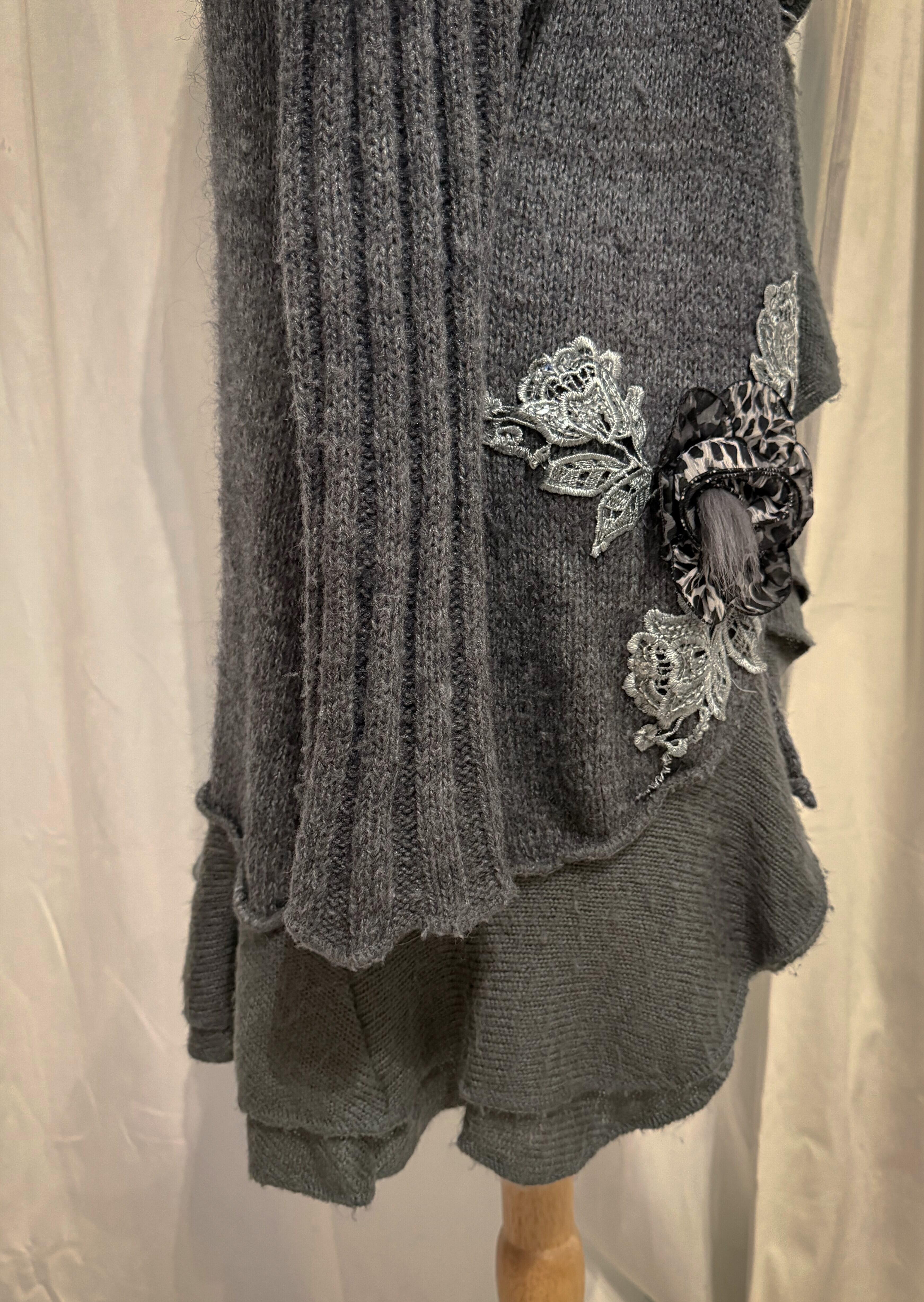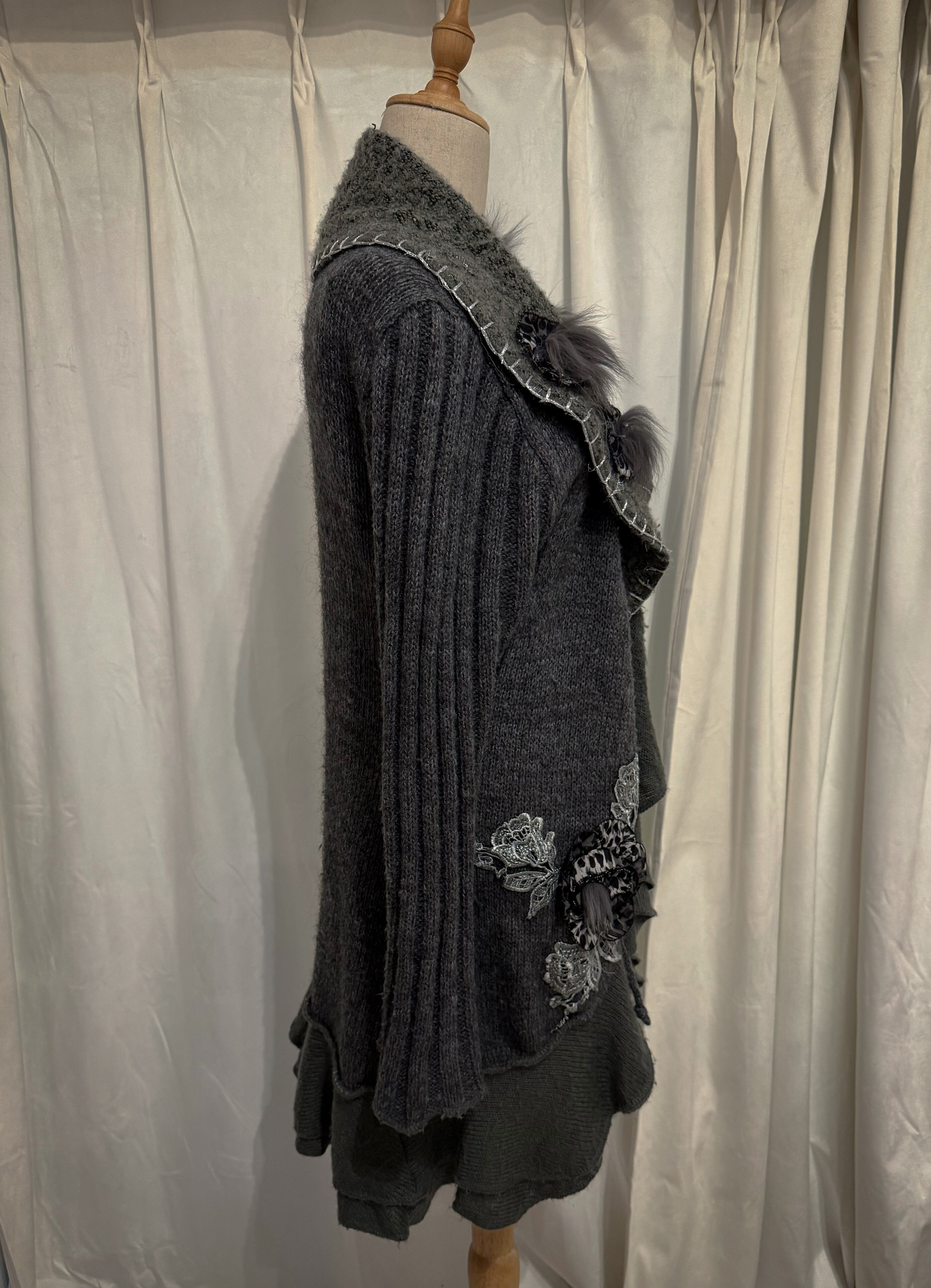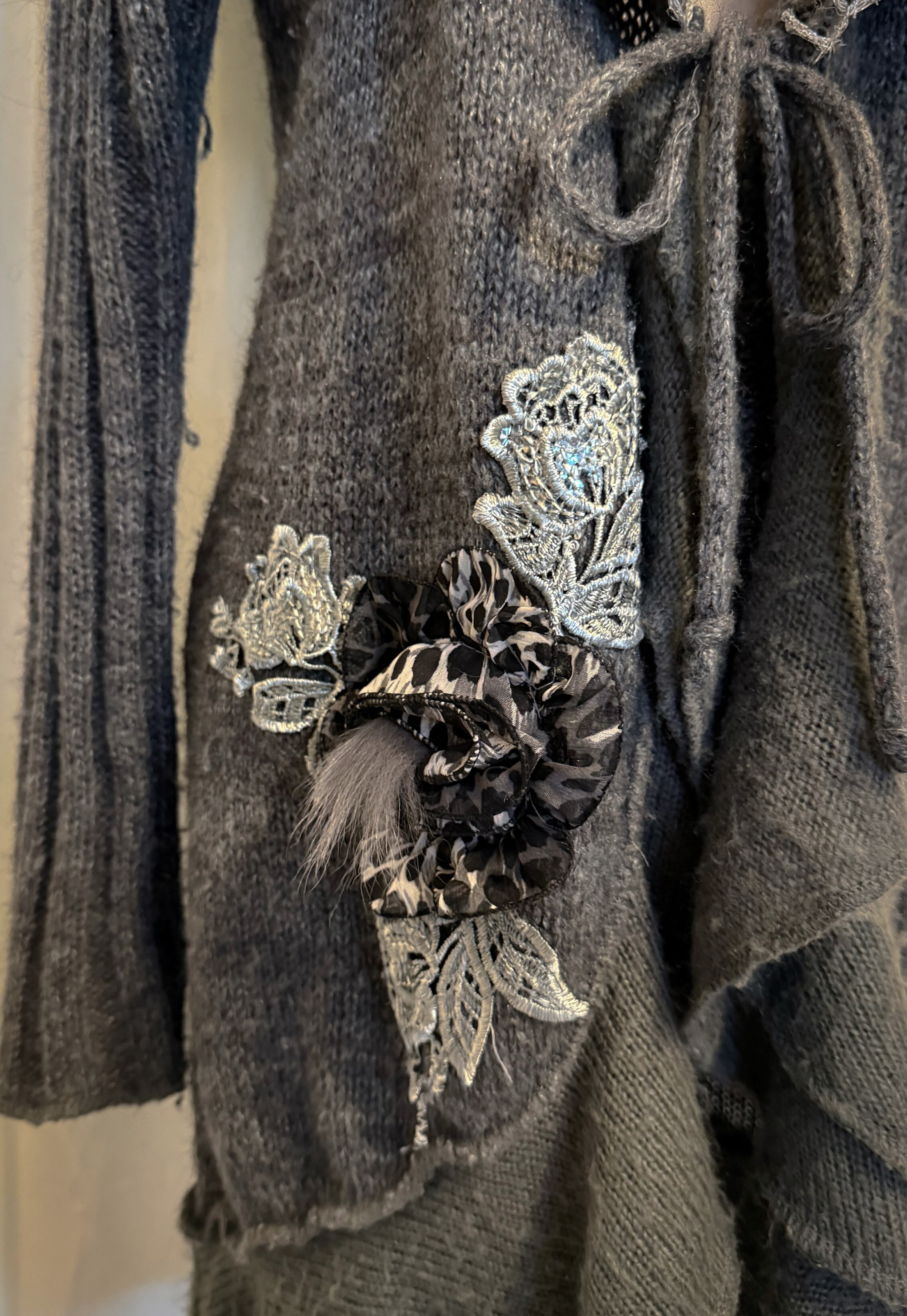 Fairy Taill Gray Knit Flower Corsage Cardigan