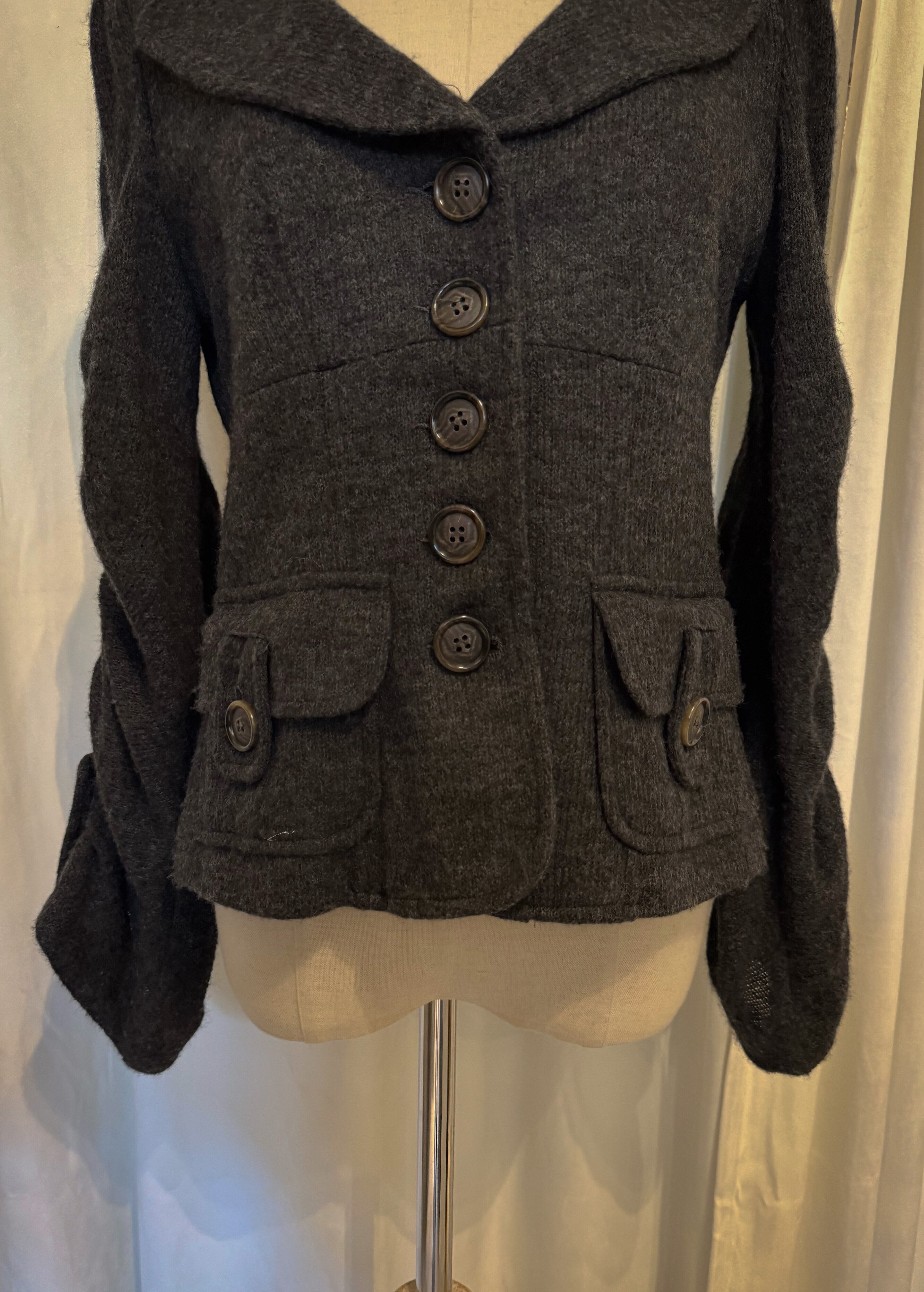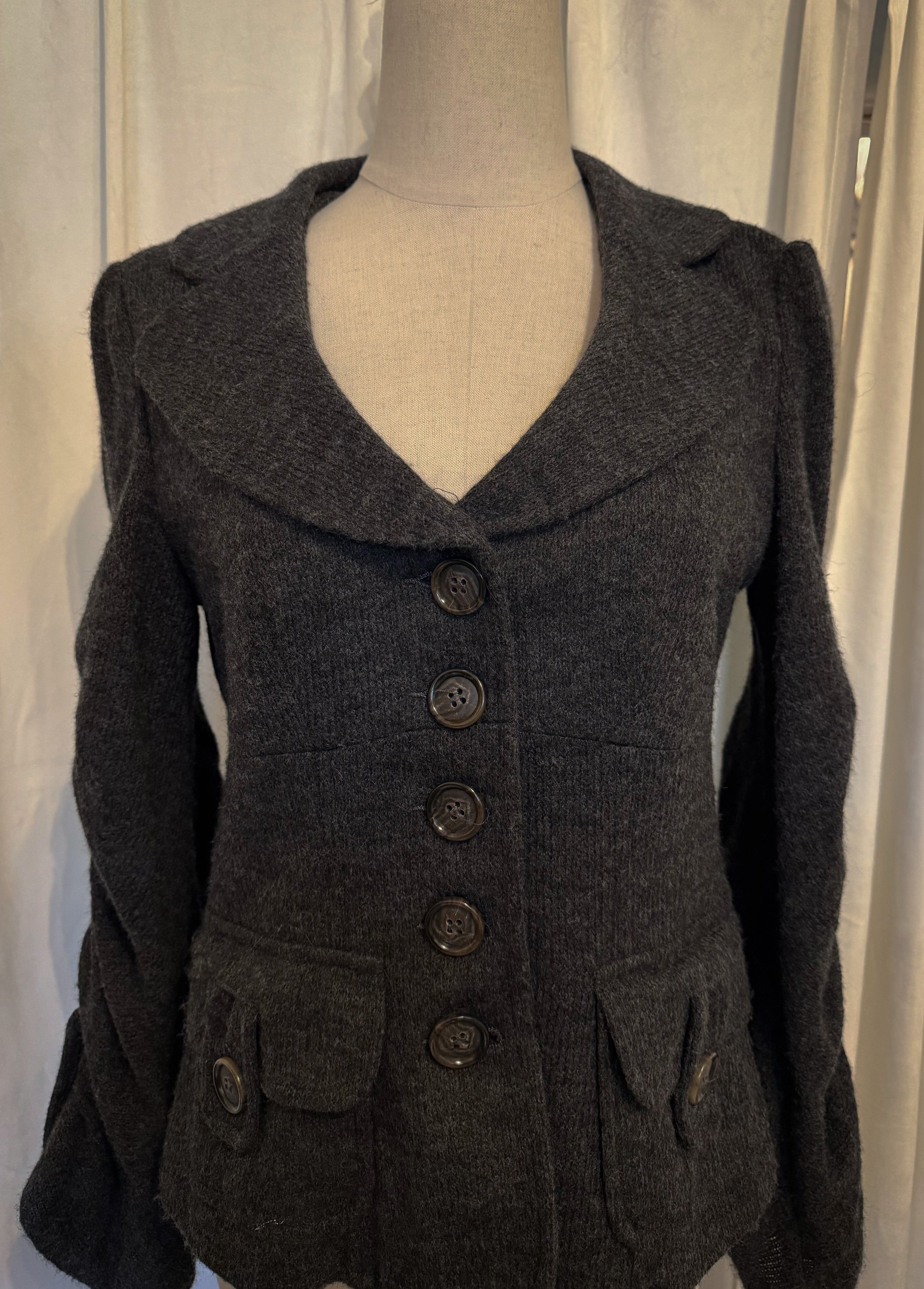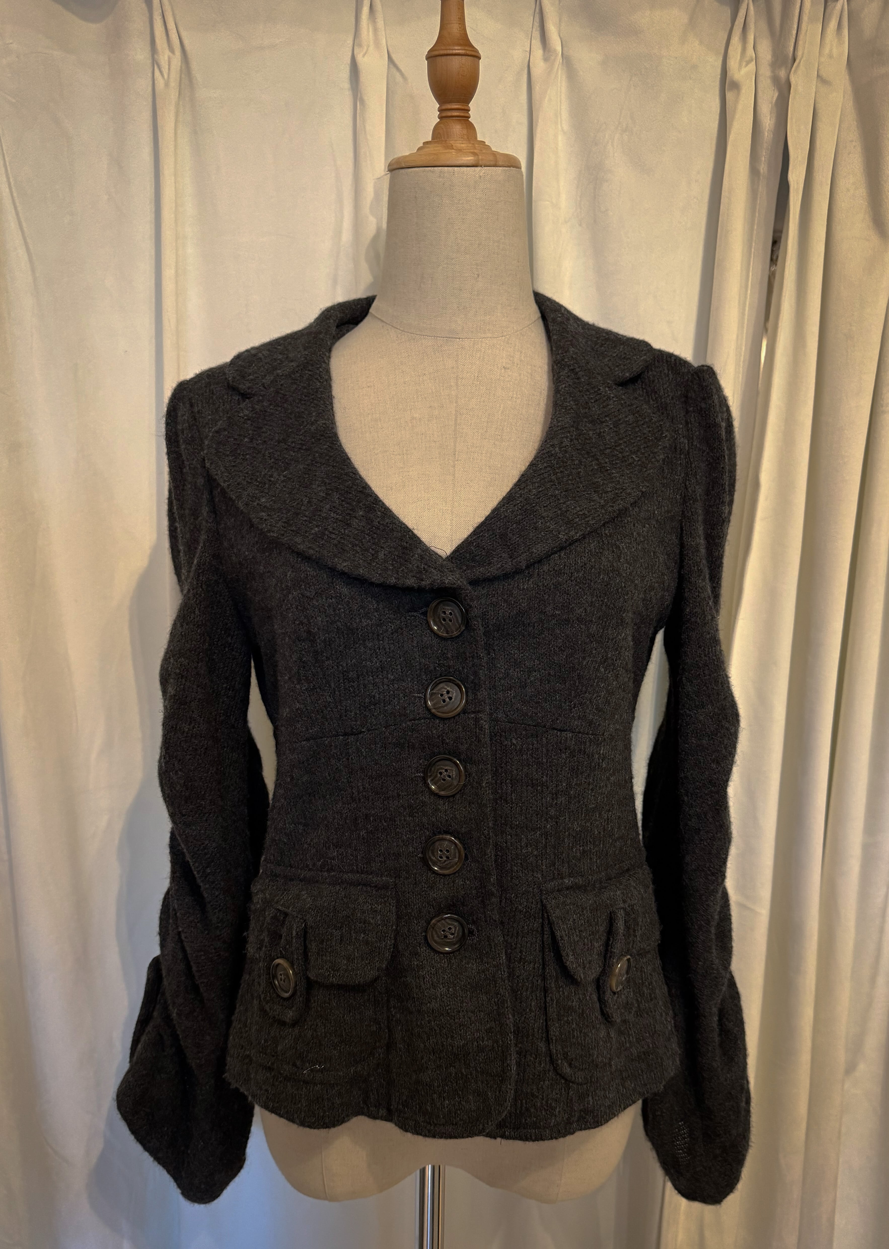Ruffled Sleeves Dark Gray Jacket