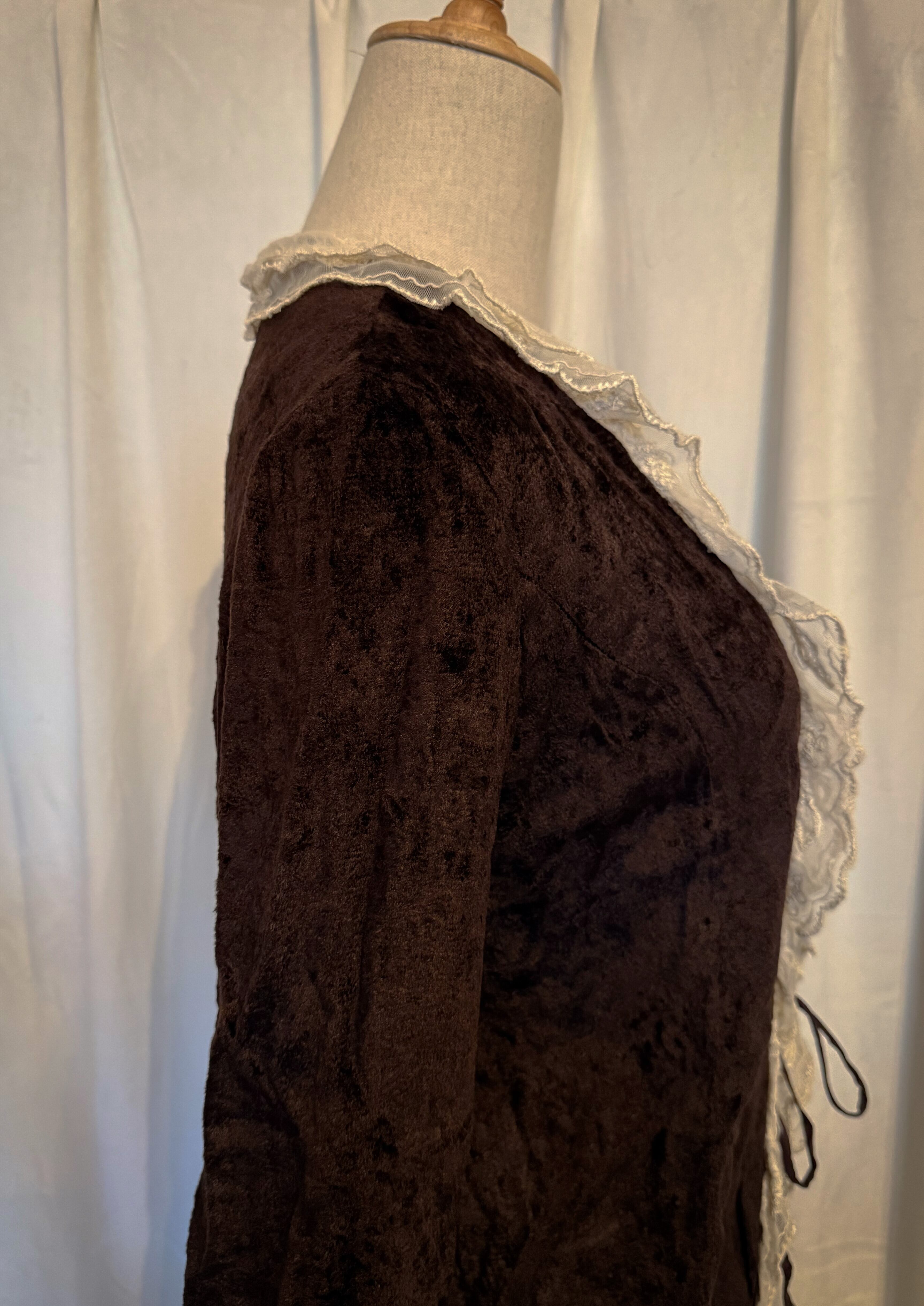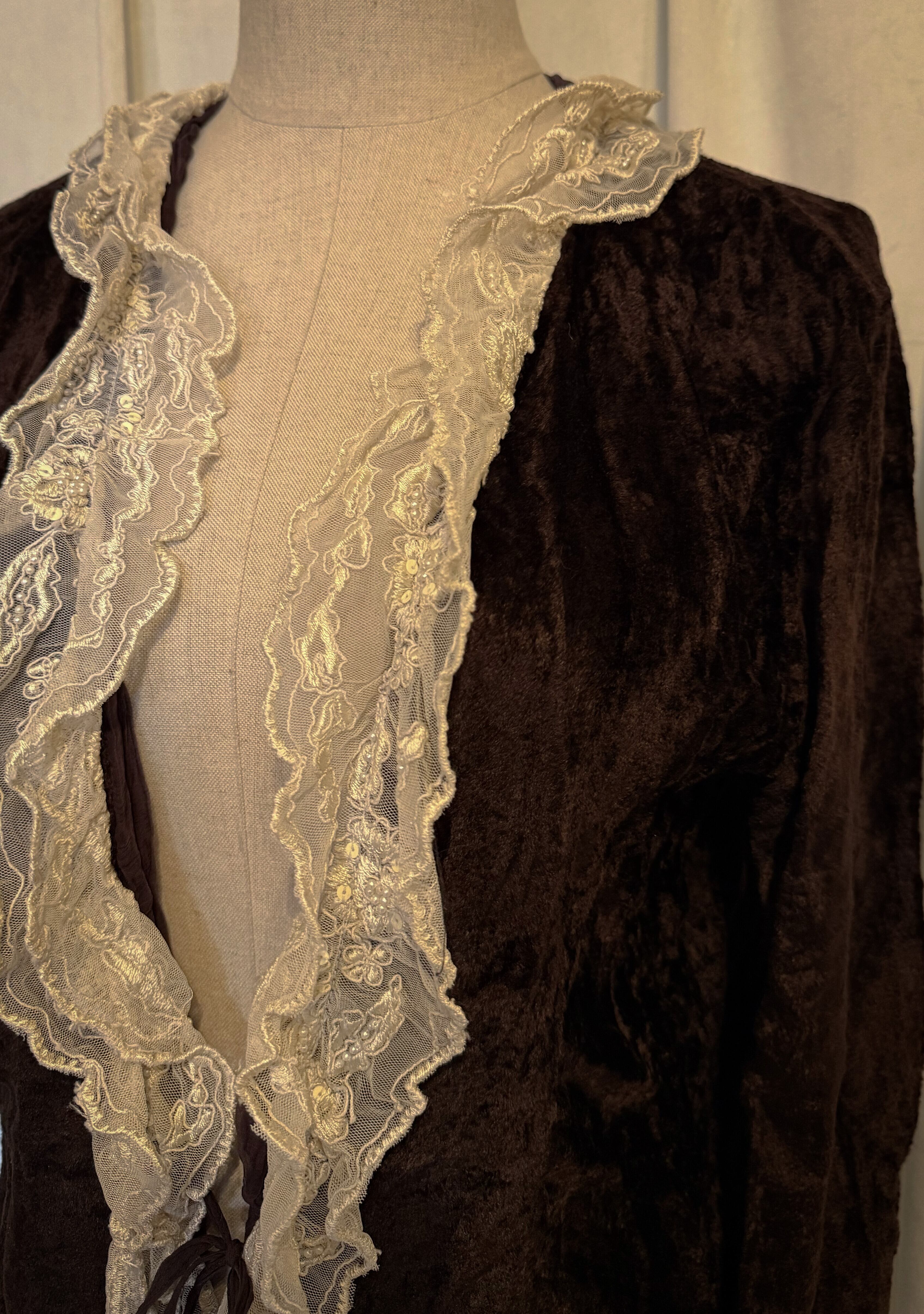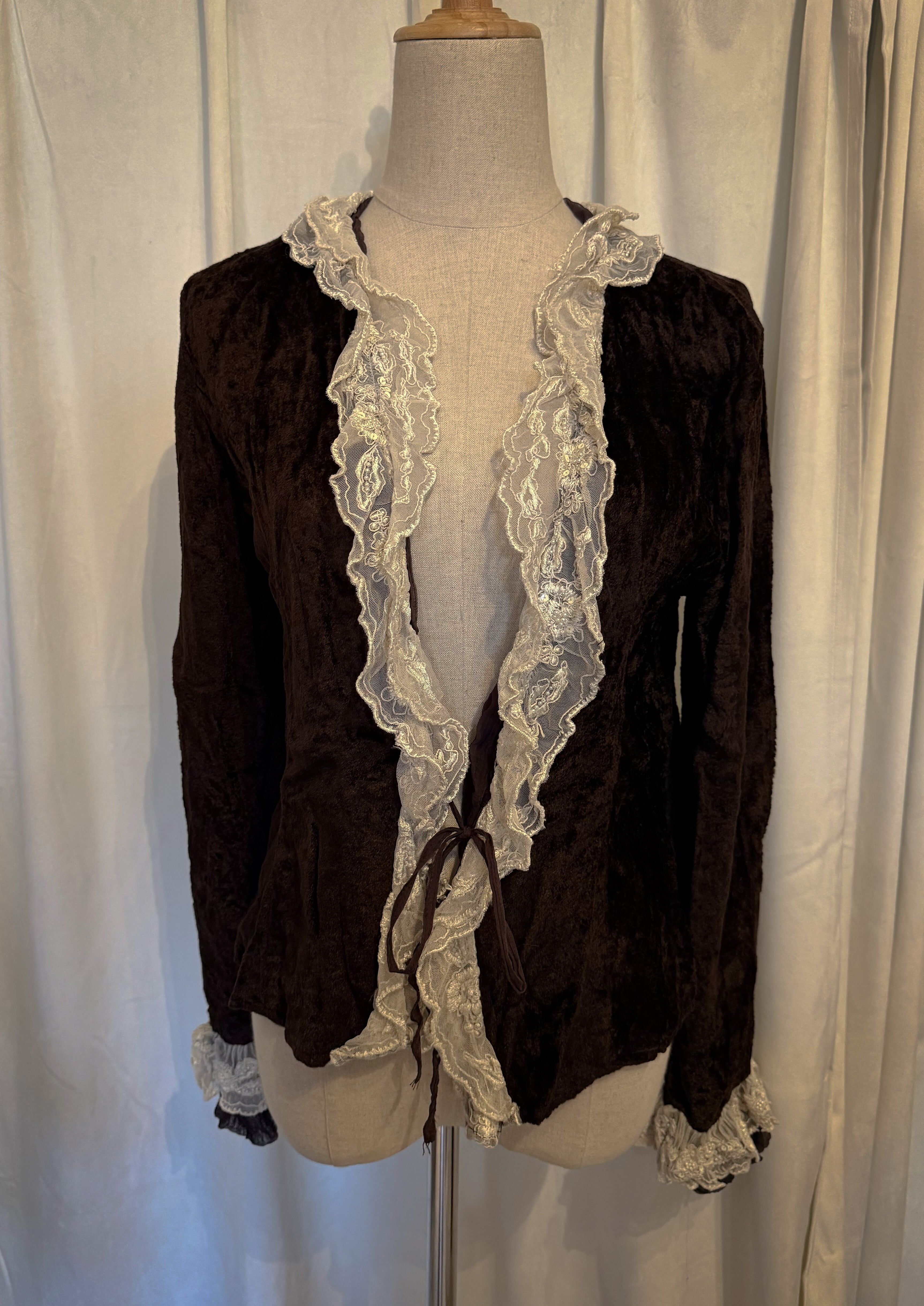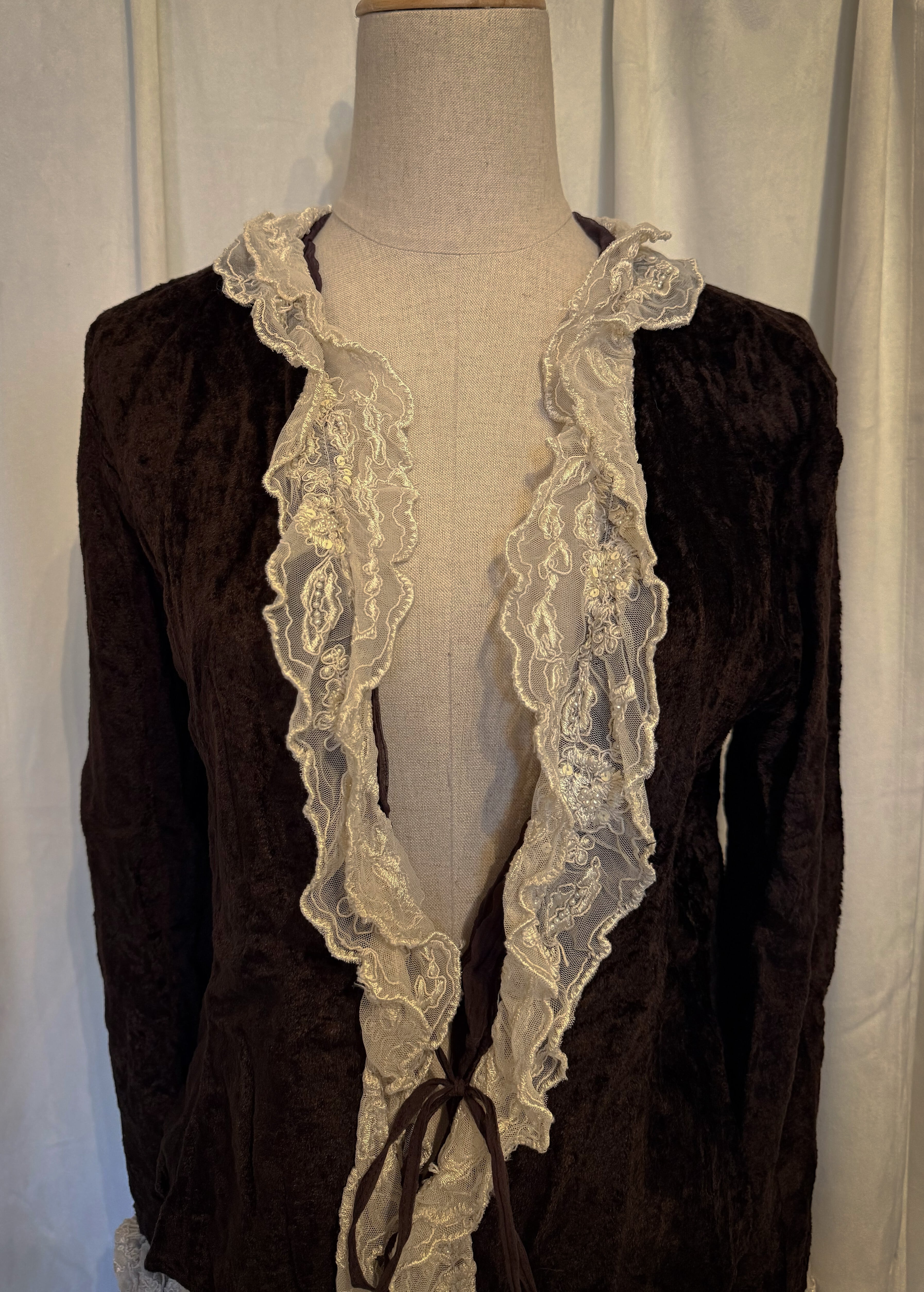Brown Velour Frill Lace Cardigan